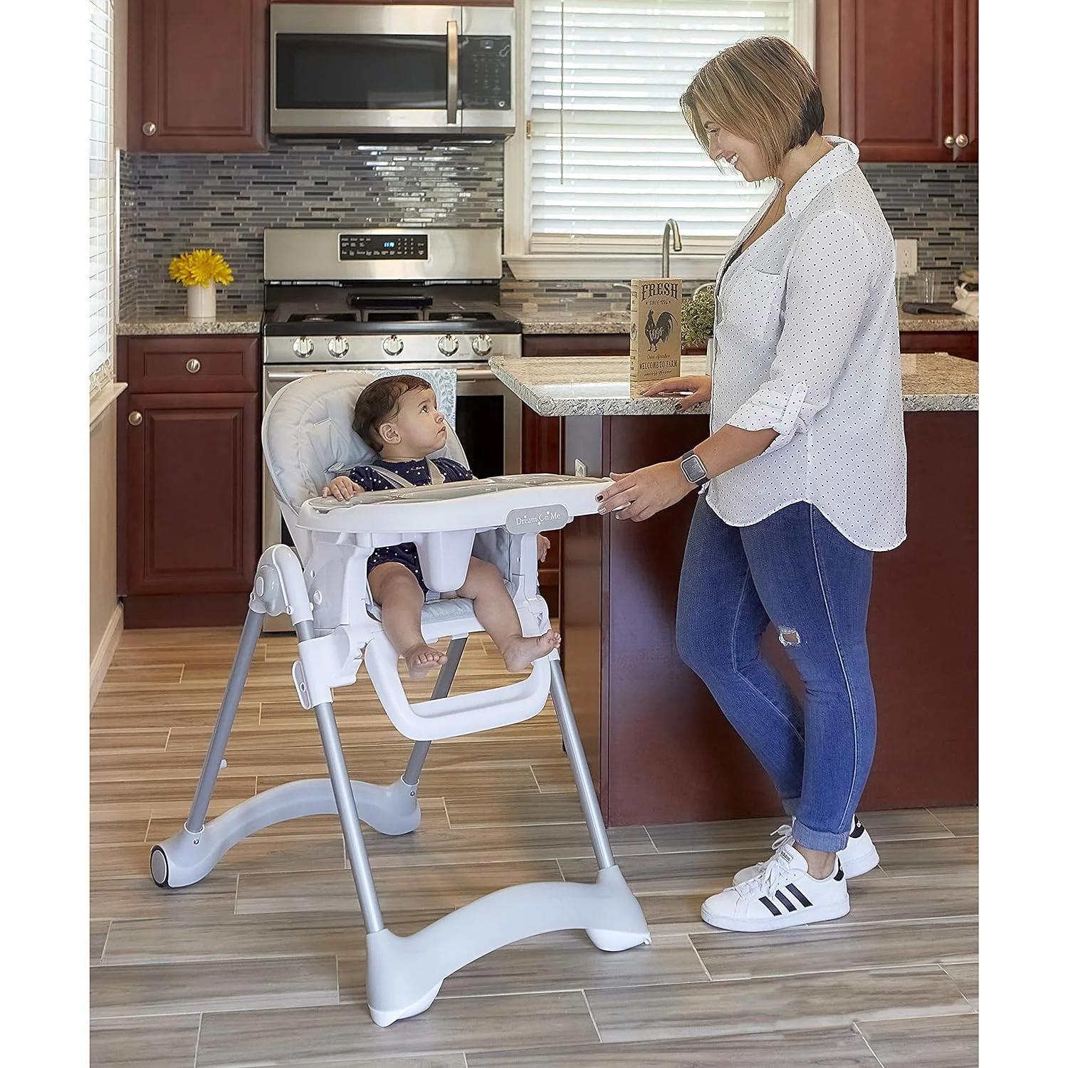 - The Solid Times Highchair has a 5-position adjustable height that fits any table height.