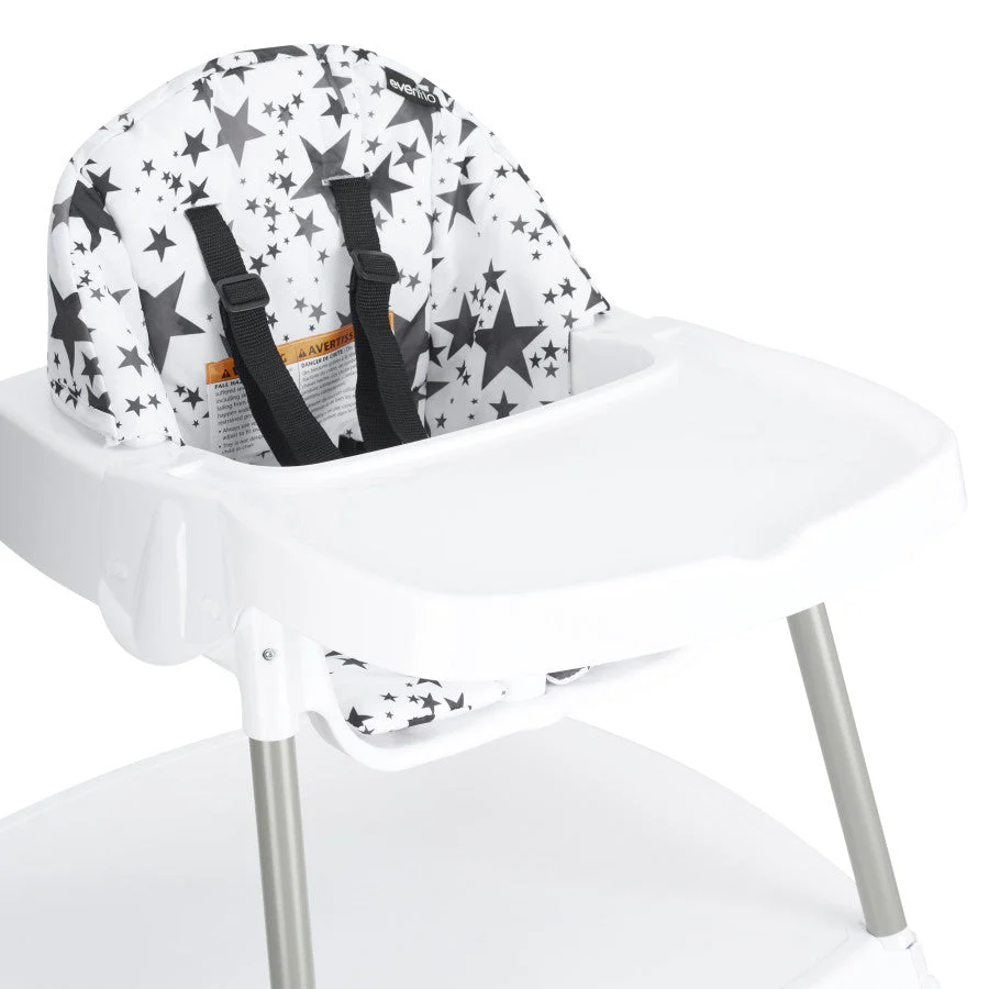 Get a taste for the highly rated high chair designed to serve you long past infancy: the versatile 4-in-1 Eat & Grow™ Convertible High Chair. Converting with ease through four modes that adapt to your growing and increasingly independent child, the sturdy Eat & Grow will take you from 6 months of age all the way up to 50 lb (22.6 kg) — from baby food feedings to spaghetti on their own to coloring sessions and beyond! More than just a high chair, the Eat & Grow converts easily as your child grows. Mode 1 - Infant High Chair: A full-size, small-space-friendly high chair that puts you and your child at the right height while providing secure seating for infant feedings; for babies at least 6 months of age and weighing up to 40 lb (18 kg). Mode 2 - Toddler Dining Chair and Tray: A meal-time chair that lowers to the floor for when your child is more independent and wants their feet on the ground; for children weighing up to 50 lb (22.6 kg). Mode 3 - Standalone Toddler Chair: A comfy toddler chair (with the tray removed) that allows your big kid to sit comfortably for reading or play; for kids weighing up to 50 lb (22.6 kg). Mode 4 - Big Kid Table and Chair: Converts to a playtime table and chair for your independent kiddo — ready for snacks, crafts and playdates; for kids weighing up to 50 lb (22.6 kg). The multi-use Eat & Grow offers the convenience of a removable and washable tray, a colorful, easy-to-clean seat pad, a secure 5-point harness (removable in modes 3 and 4), and sturdy legs. Ready to grow from food to fun? The 4-in-1 Eat & Grow Convertible High Chair is the right choice!