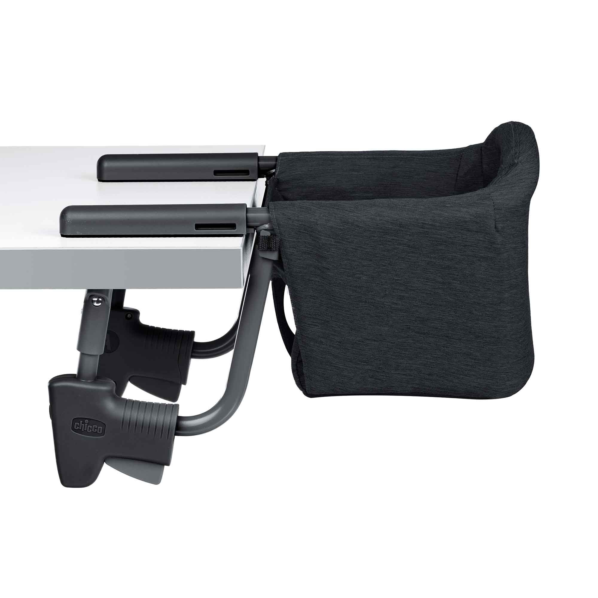 - INNOVATIVE FASTLOCK CLAMPS – Hook-on chair attaches securely in seconds with rubberized feet to enhance the grip and protect the table from scratches. Fastens to surfaces .75” – 1.5” thick and navigates a table skirt up to 5.25” thick.