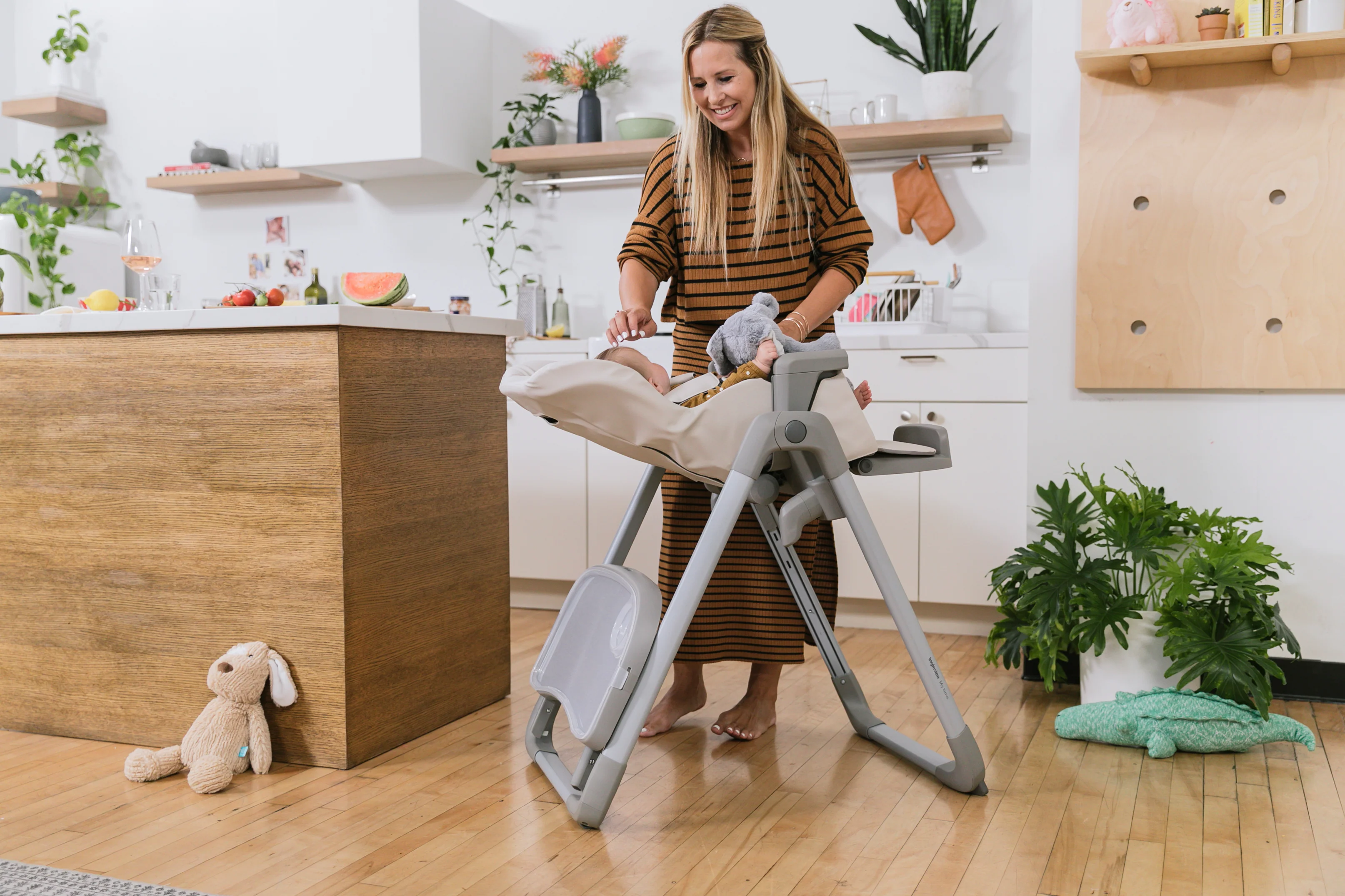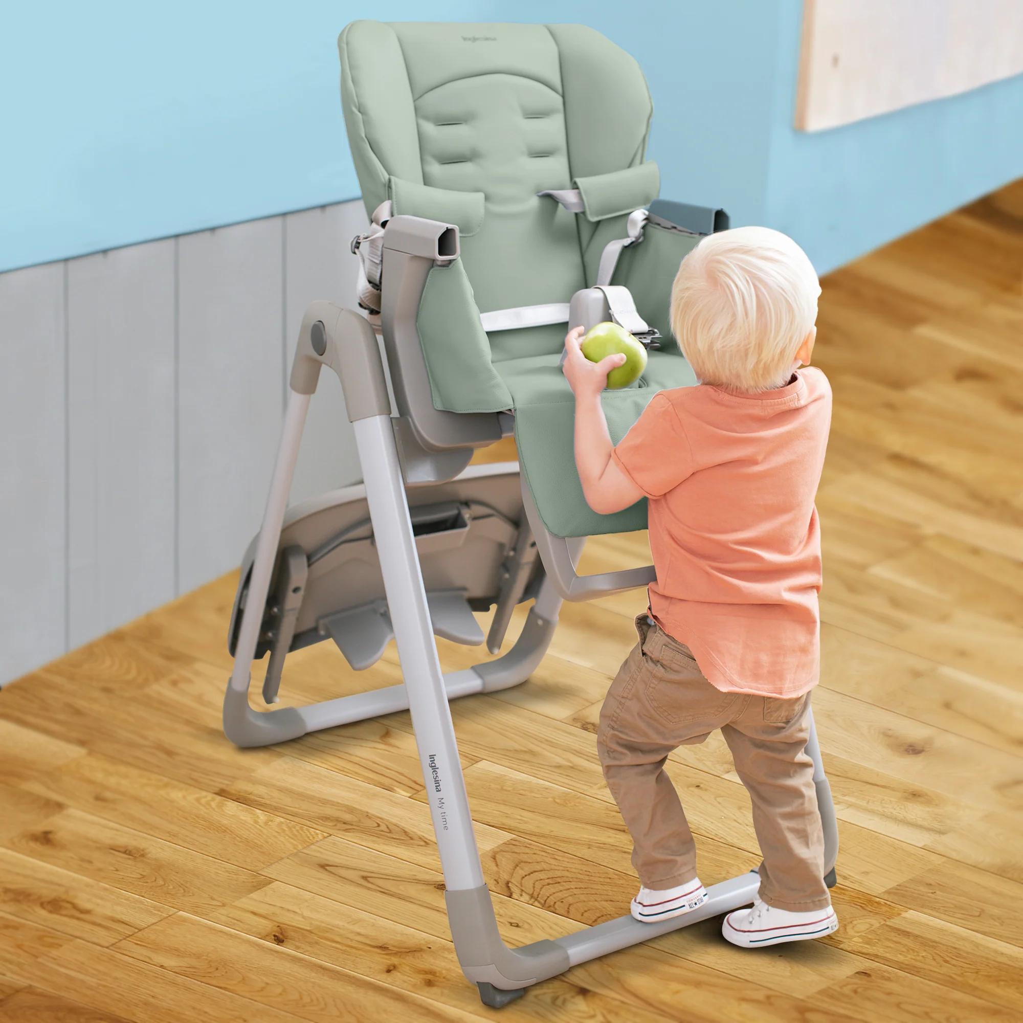 For use from 0 up to 36 months, My Time features a height adjustable to 4 positions, a reclining seat adjustable to 3 positions, and a footrest adjustable to 3 positions. Easy to clean and compact fold, it includes a dishwasher-safe serving tray.