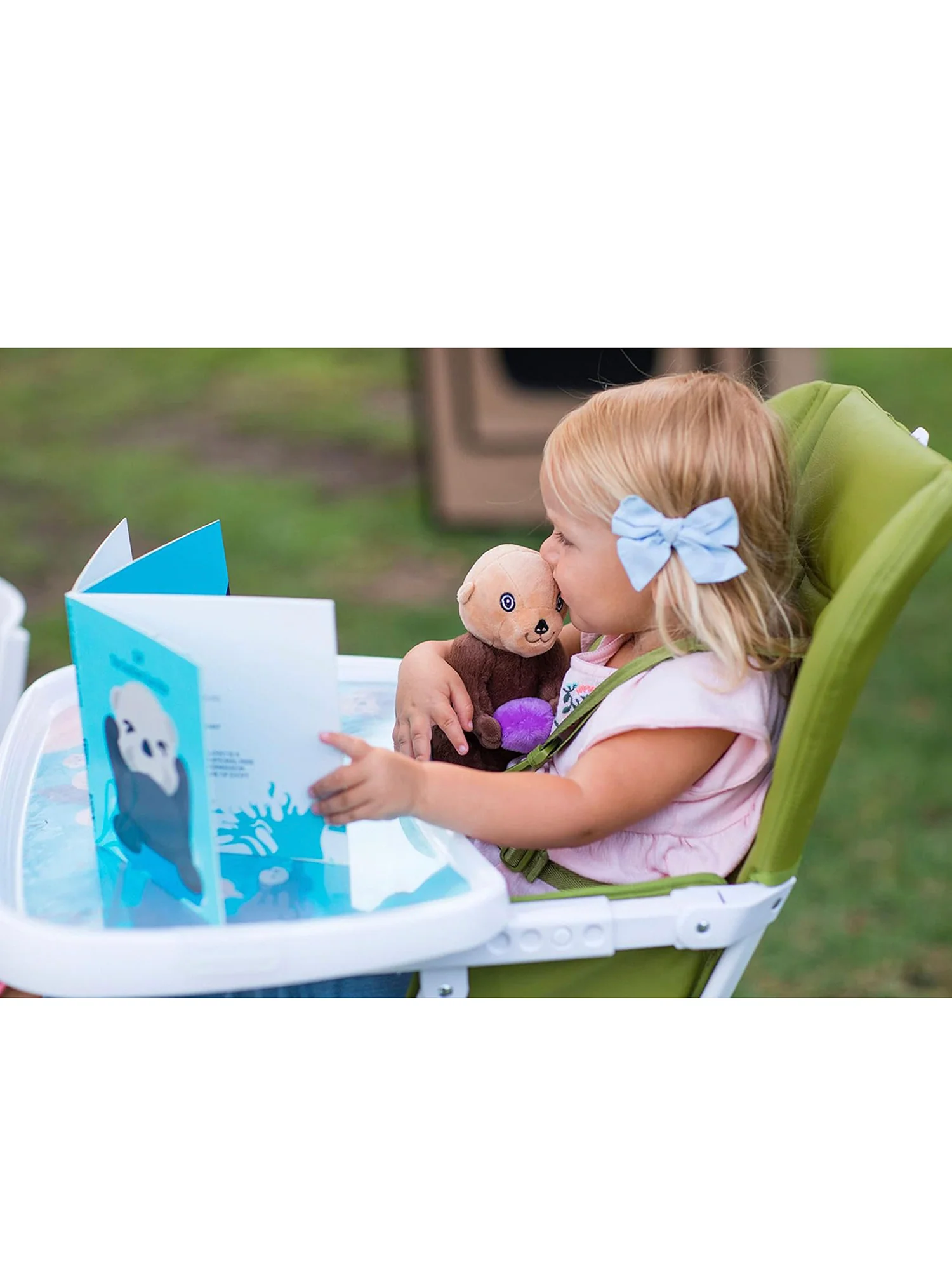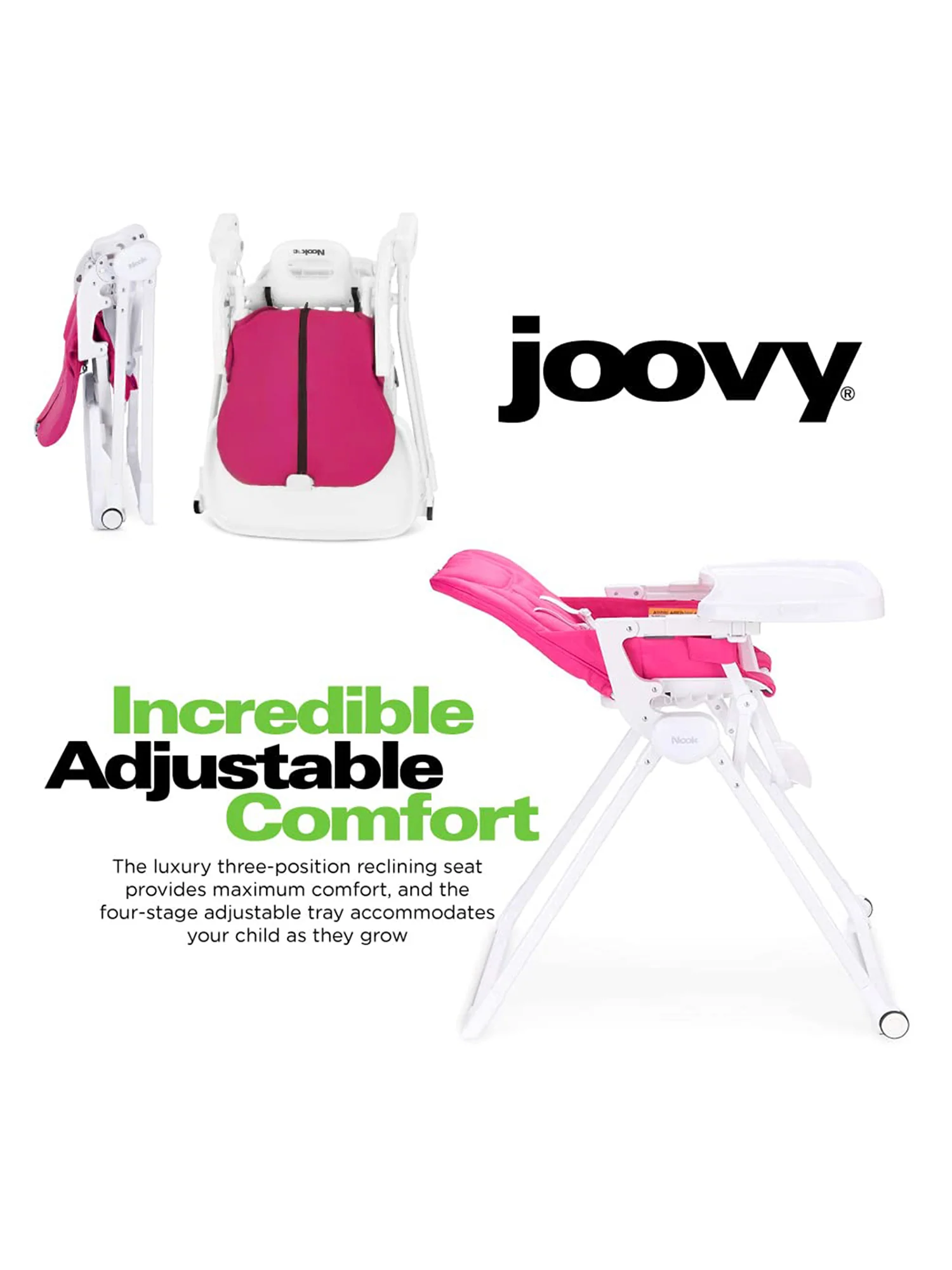 - Four-stage adjustable tray moves as your child grows