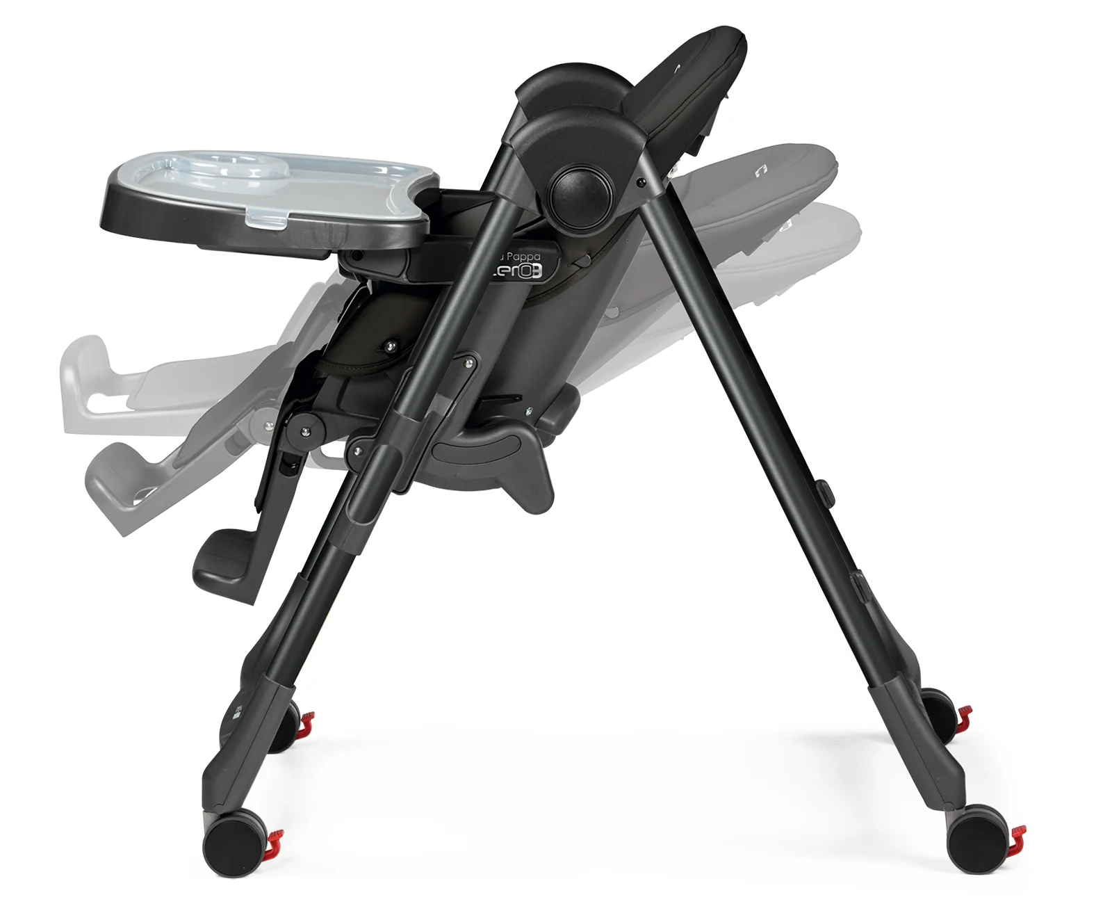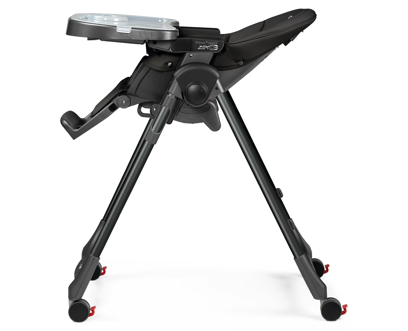 Made In Italy. The Prima Pappa Zero 3 offers convenience and functionality in the form of an ultra-compact high chair. Weighing under 17 pounds and with four enclosed caster wheels, the Prima Pappa Zero 3 can be maneuvered around the kitchen with ease. When dinner time is over, the high chair folds compactly and with little effort. It's folded dimensions of 11.75" x 37.16" allow it to be stored in small spaces, making it perfect for apartment living. The Prima Pappa Zero 3 is one of the only high chairs that can be used from birth because of its full recline. Seven height positions enable the high chair to grow with child, and a removable double tray makes it possible for little one to join the rest of the family at the dinner table. Playful colors and characters adorn the tailored upholstery of the Prima Pappa Zero 3. Color accented tray liners add to the fun and are dishwasher-safe. Finishing off the design are the hidden caster wheels, which give the Prima Pappa Zero 3 a streamlined and modern look.