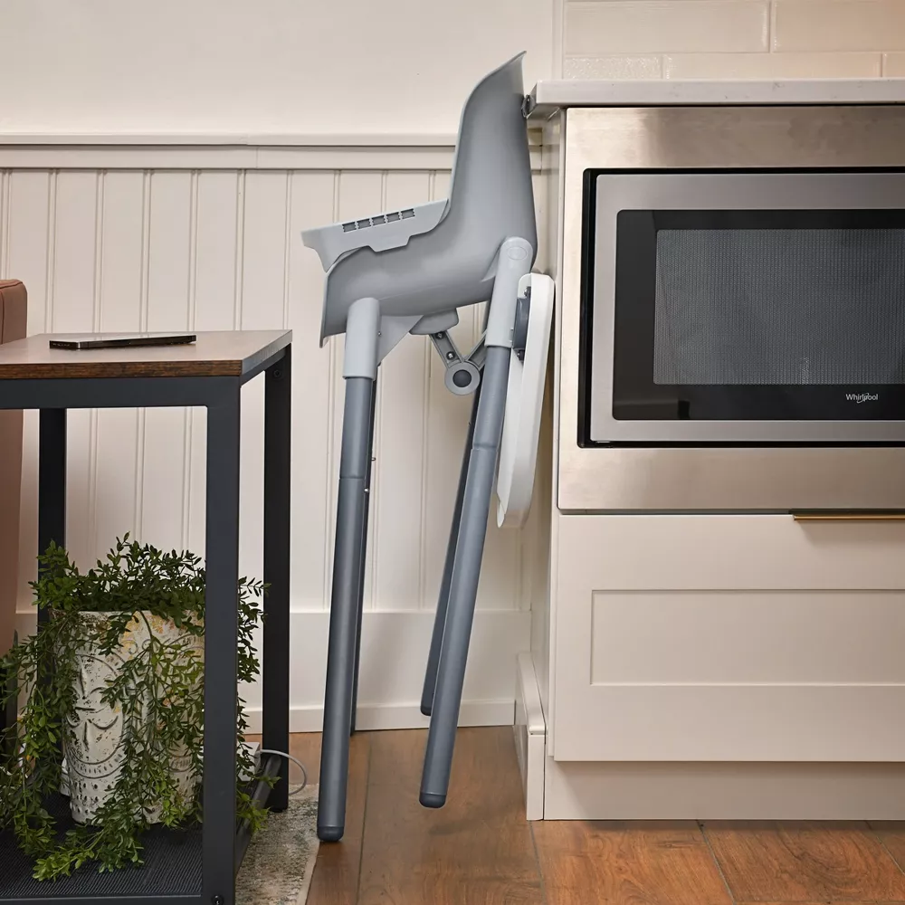 Weighing under 10 pounds, its lightweight design and small footprint make Zest™ easy to move around the kitchen or different parts of the house. When not in use, the high chair folds compactly and features space-saving tray storage on the rear legs.