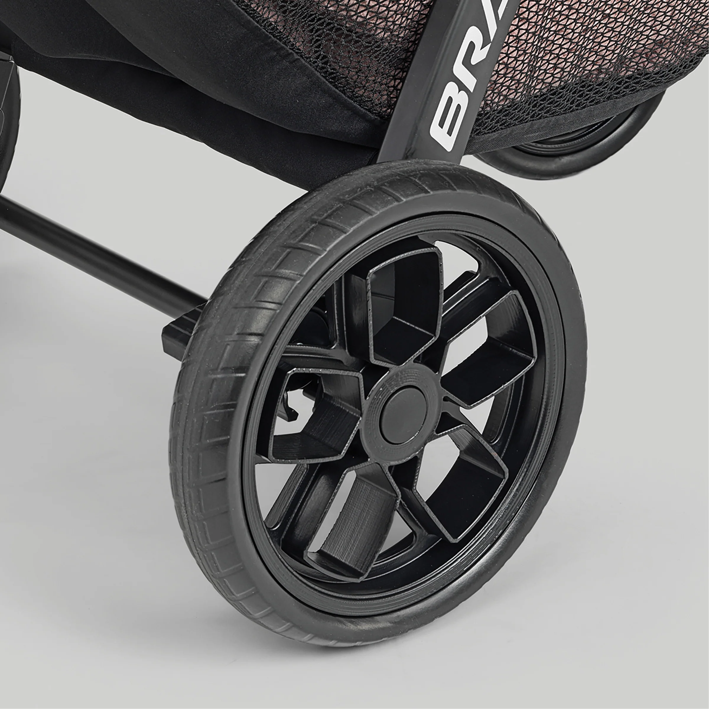 - Mode 2: Travel system with large, UPF 50+ canopy with pull-out visor and peek-a-boo mesh window