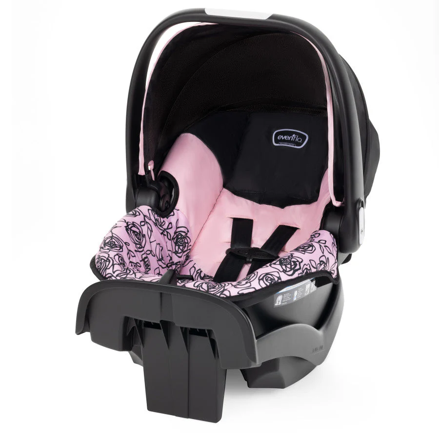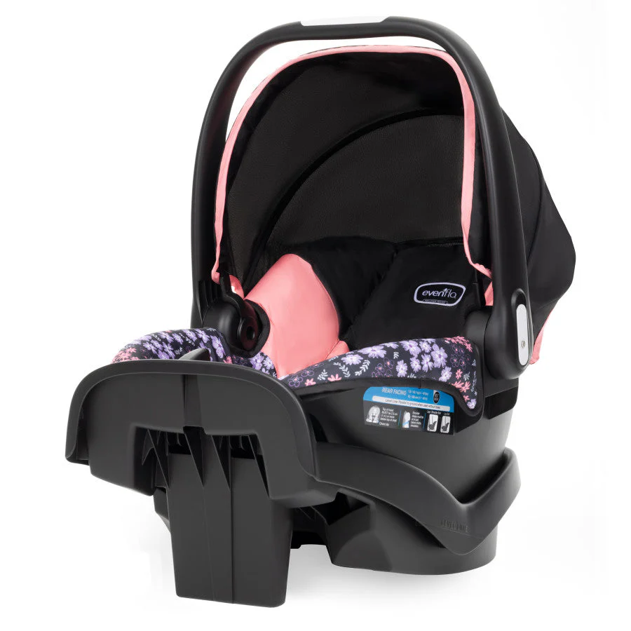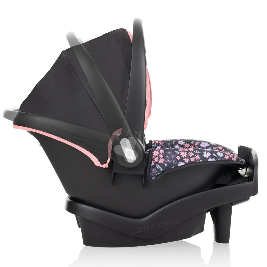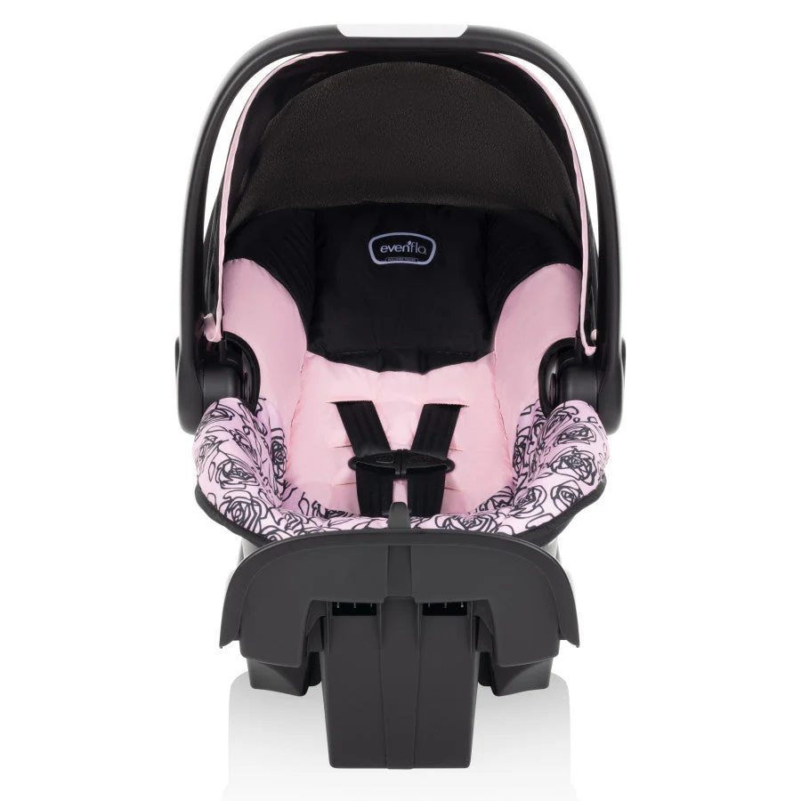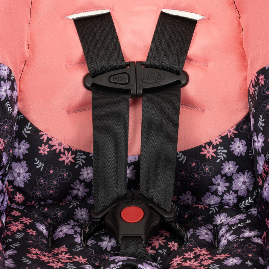 You want the best for your new baby — and above all, you want safety. Look no further than the Evenflo® NurtureMax™ Infant Car Seat for babies 4 to 22 lb and 17 to 29 in. long. It’s everything you need an infant seat to be and is designed to ensure a secure fit that grows with your child. A 5-point harness with 4 harness height positions allows you to adjust as your child grows, 3 buckle positions let you expand seating space when things begin to get tight, and harness tightening is front and center for ease. The NurtureMax features an anti-rebound base designed to absorb and dissipate crash forces. And you can count on the full-coverage canopy for a shield against sun, rain showers and gusty breezes while you’re on the go. At just under 6 lb, NurtureMax is the lightest infant seat in its class, a distinction you’ll appreciate every time you remove the seat from its stay-in-car base to take baby with you. Ergonomic and one-hand adjustable, the Push & Go™ handle makes sure getting baby in and out is never a struggle. Convenience bonus: you can add a second base to another vehicle to simplify rides with baby’s multiple chauffeurs.