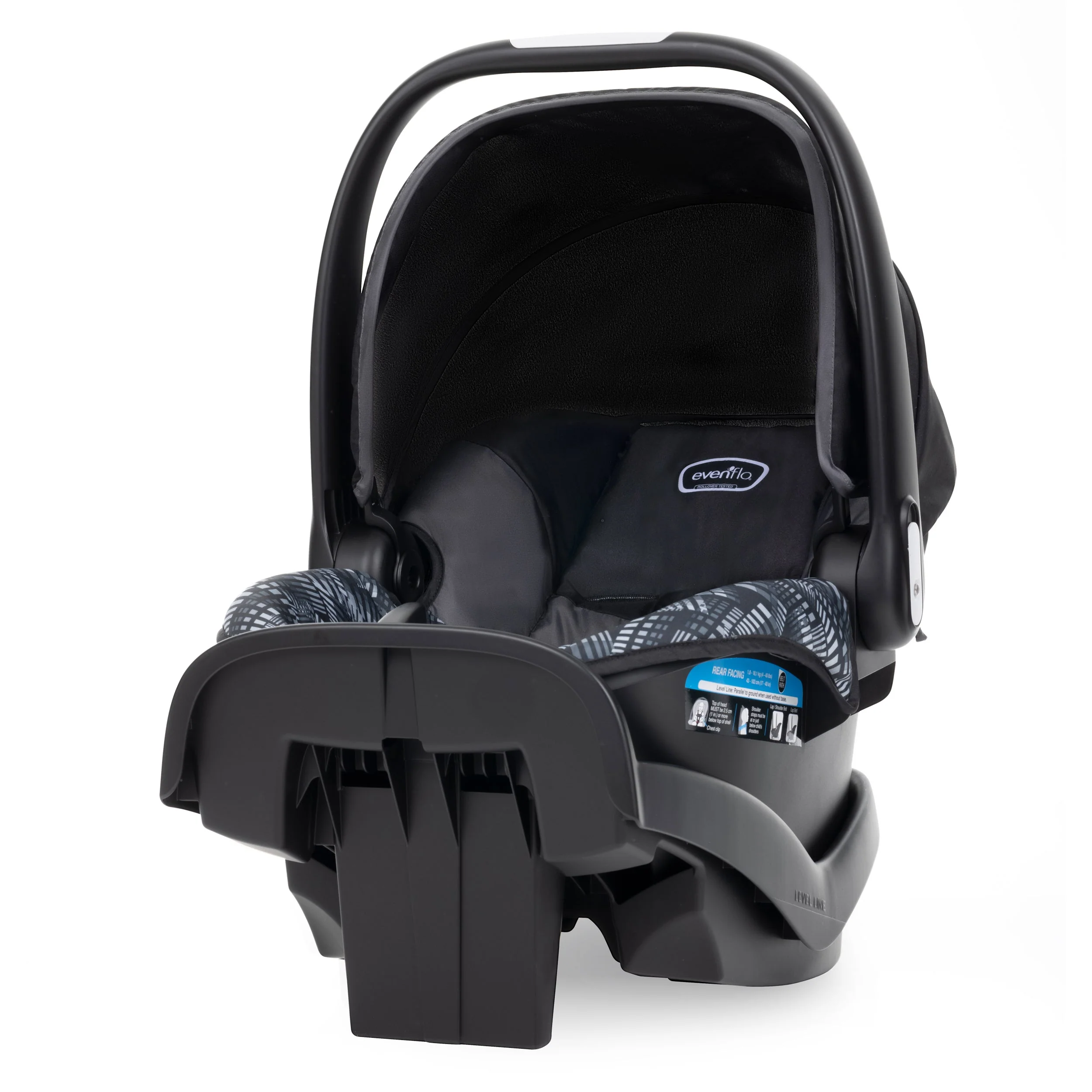 At Evenflo, we go above and beyond government standards to create car seats that are safe. The NurtureMax Infant Car Seat meets all applicable federal safety standards. It is rollover tested, temperature tested, and structural integrity tested at energy levels approximately 2x the federal crash test standard.