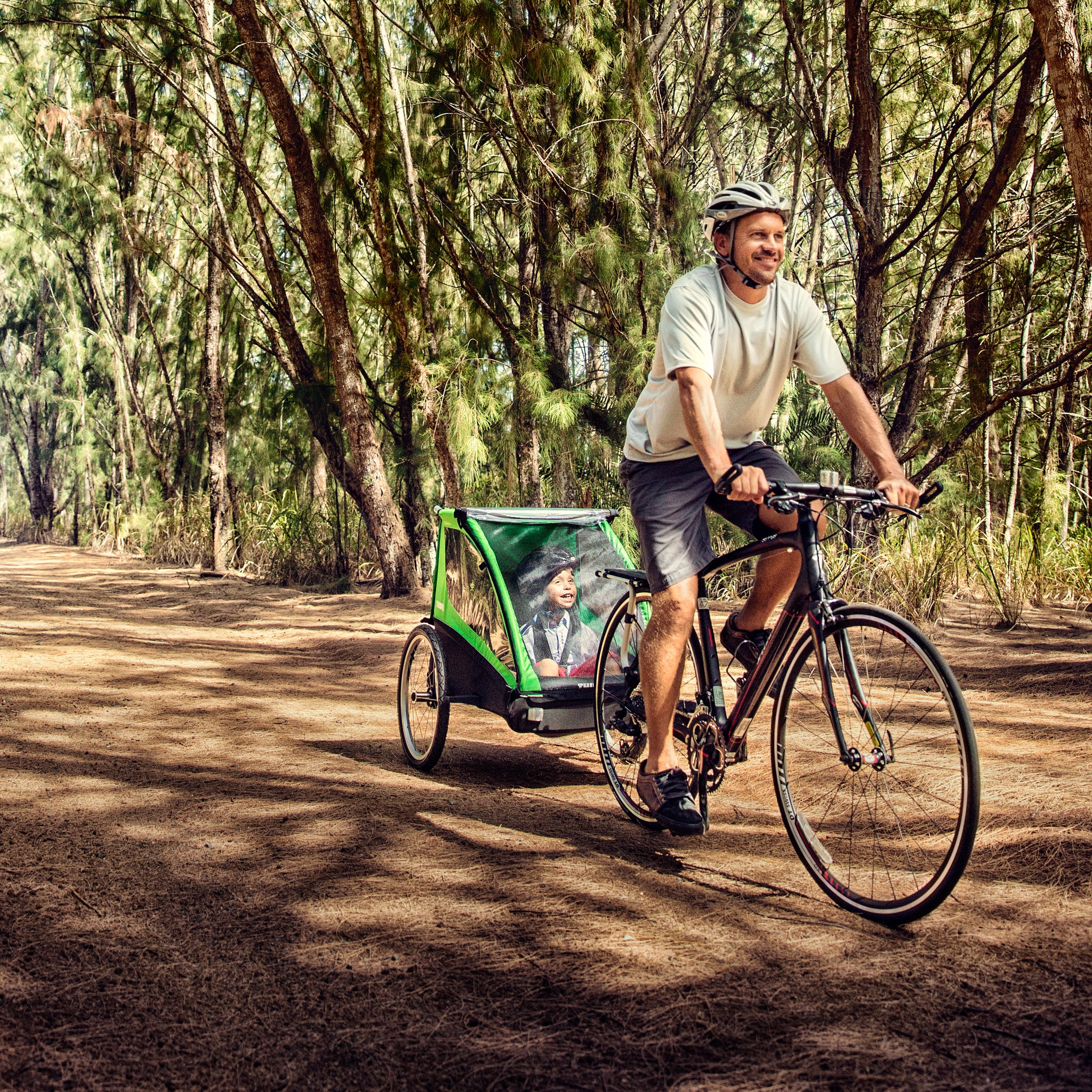 - Secure attachment to bike using Thule ezHitch axle mount