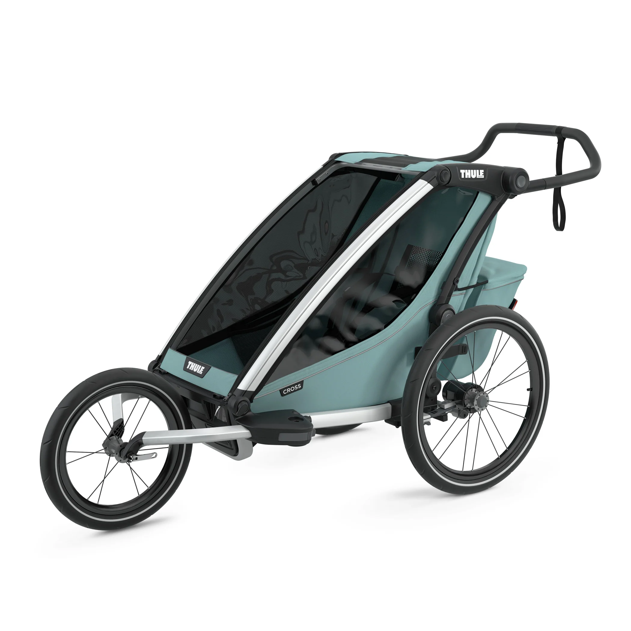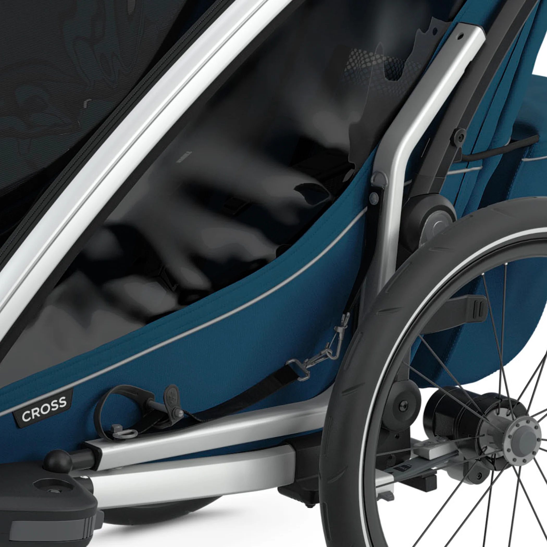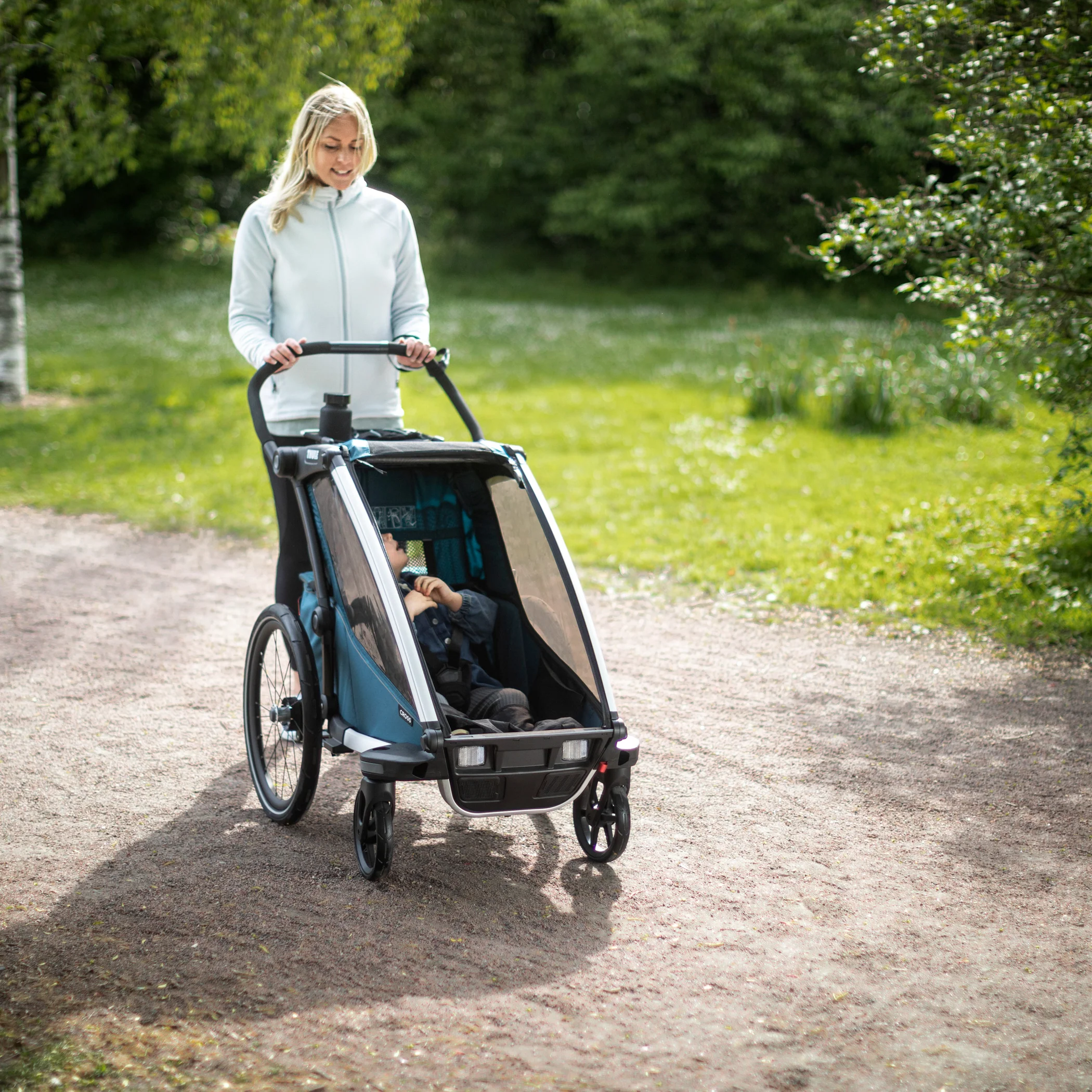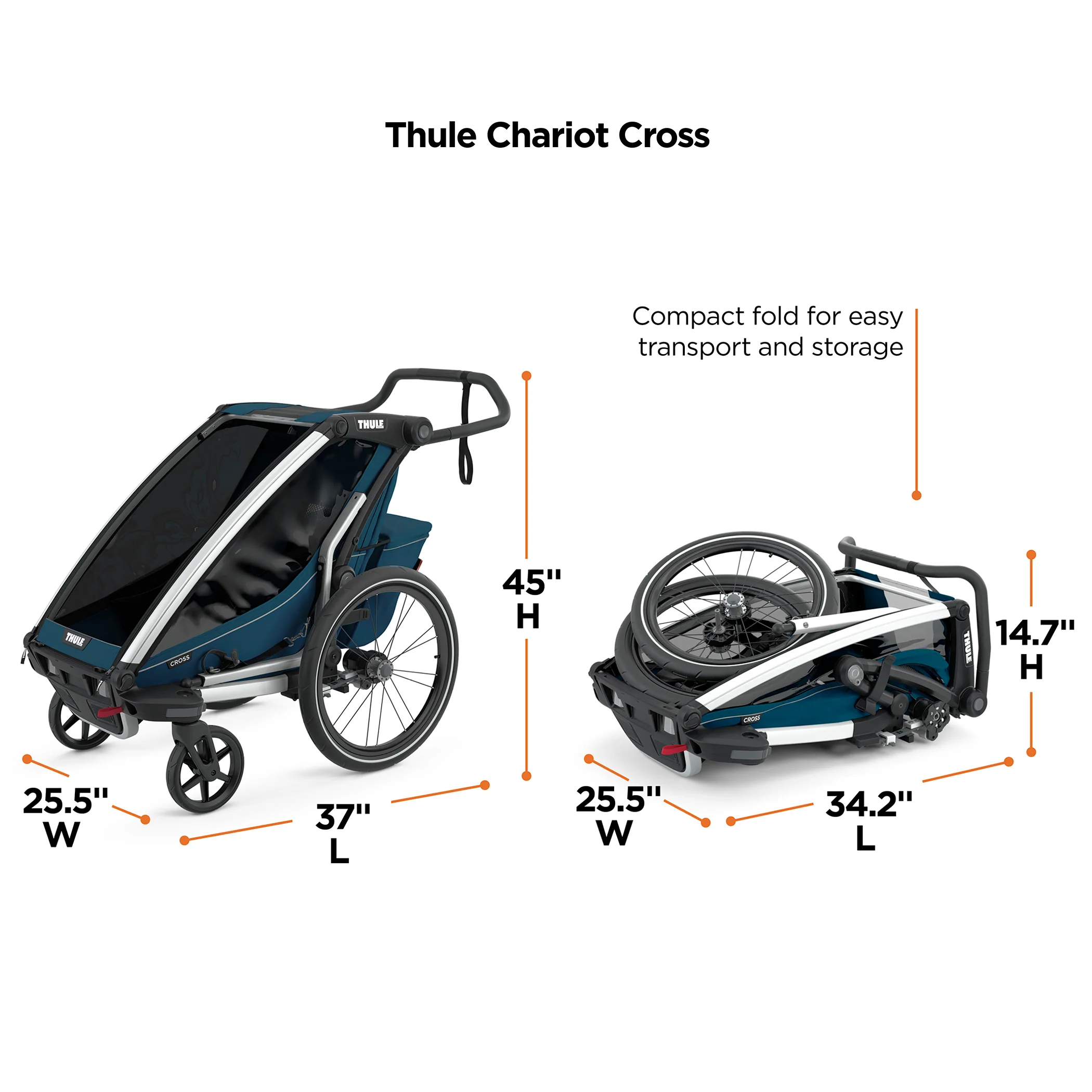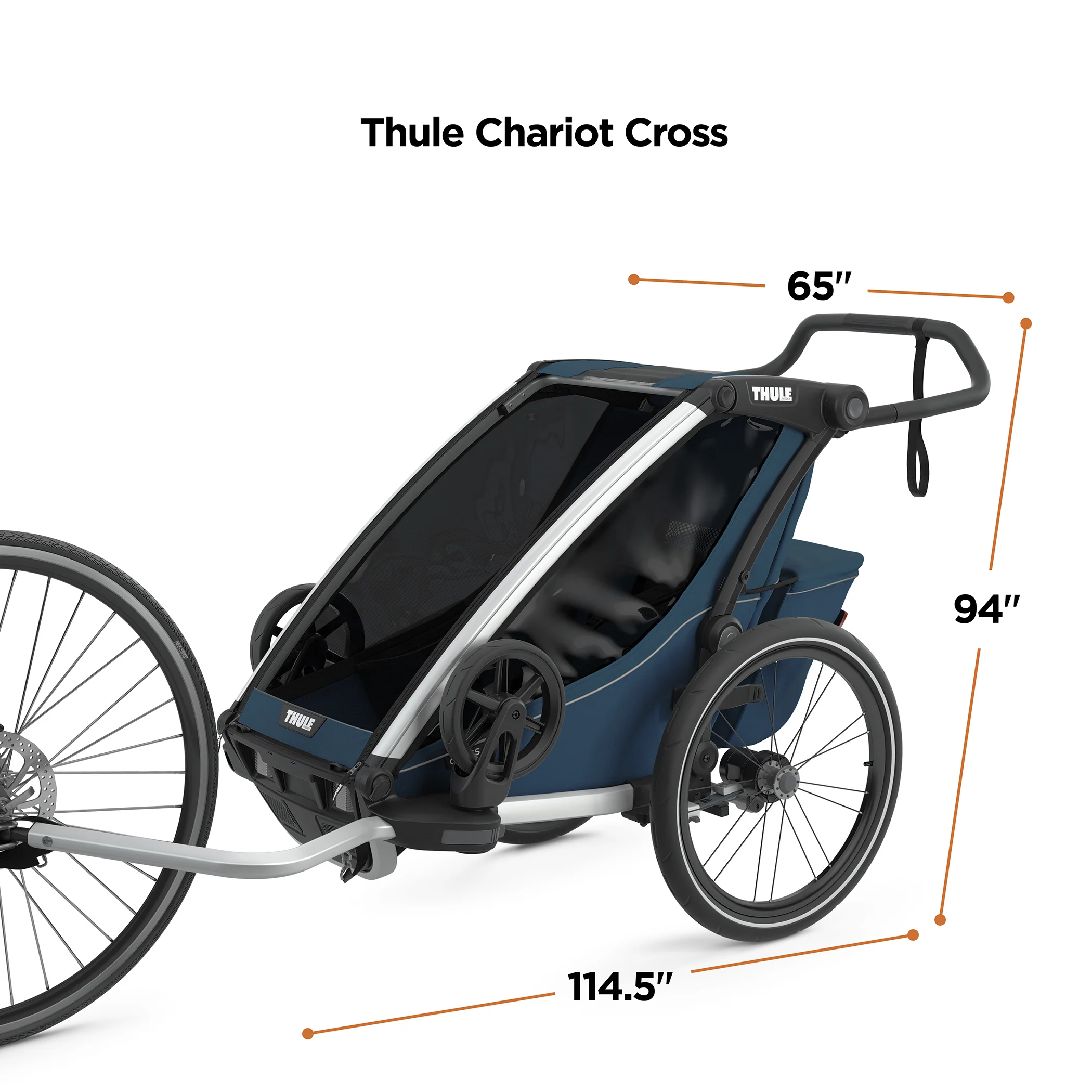 The Thule Chariot Cross 2 Multi-Sport Single Stroller is an all rounder bike and ski trailer, jogger, and stroller in one. Designed for use with up to 1 child, offering comfort and flexibility for families with an active lifestyle.