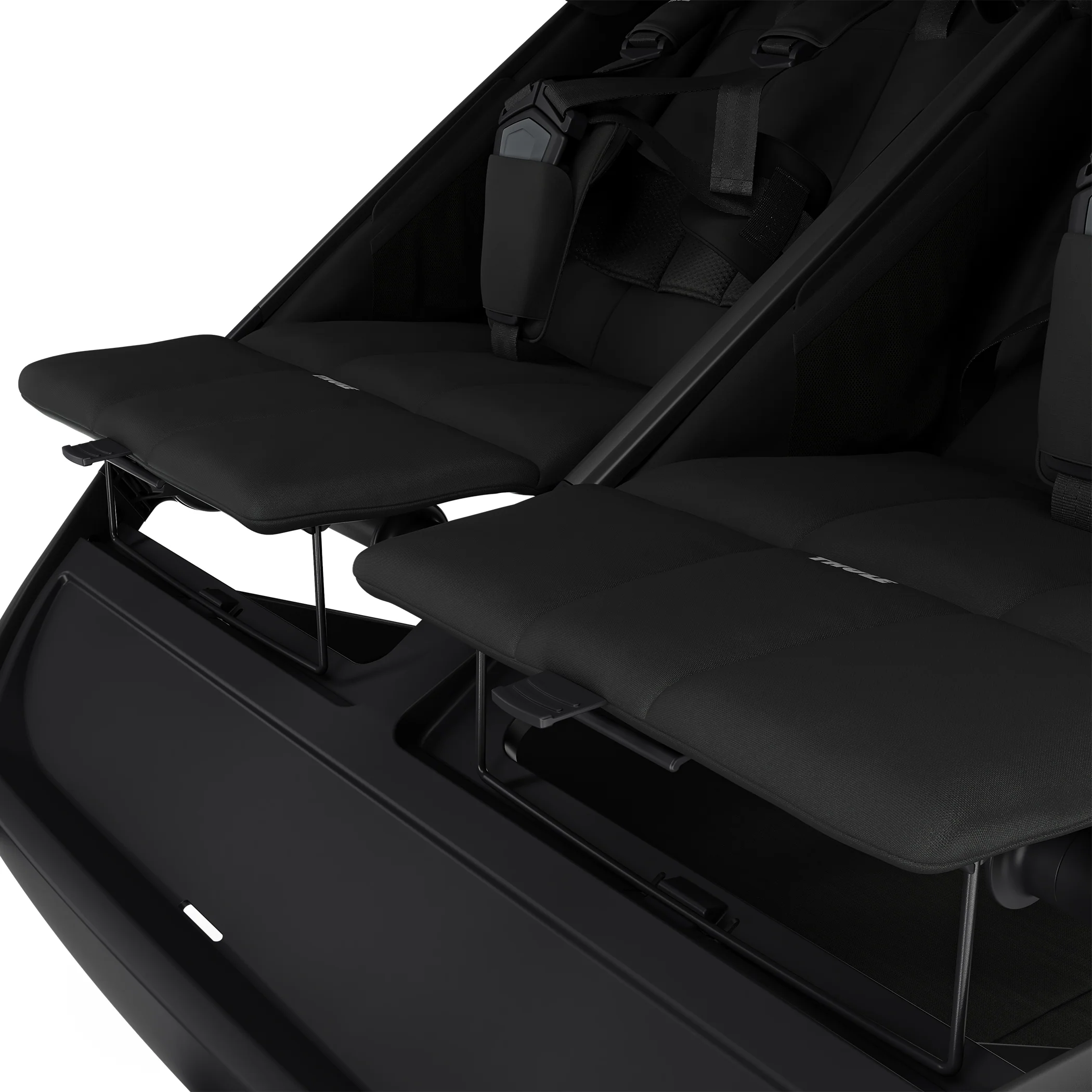• Adjustable, independent seats with stepless recline and built-in leg rests provides personalized comfort for each child