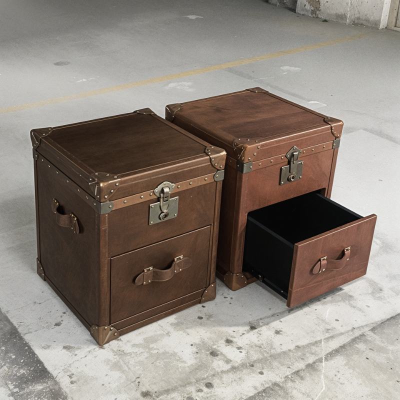 This side table with leather accents on a vintage trunk design will wonderfully accentuate your space.