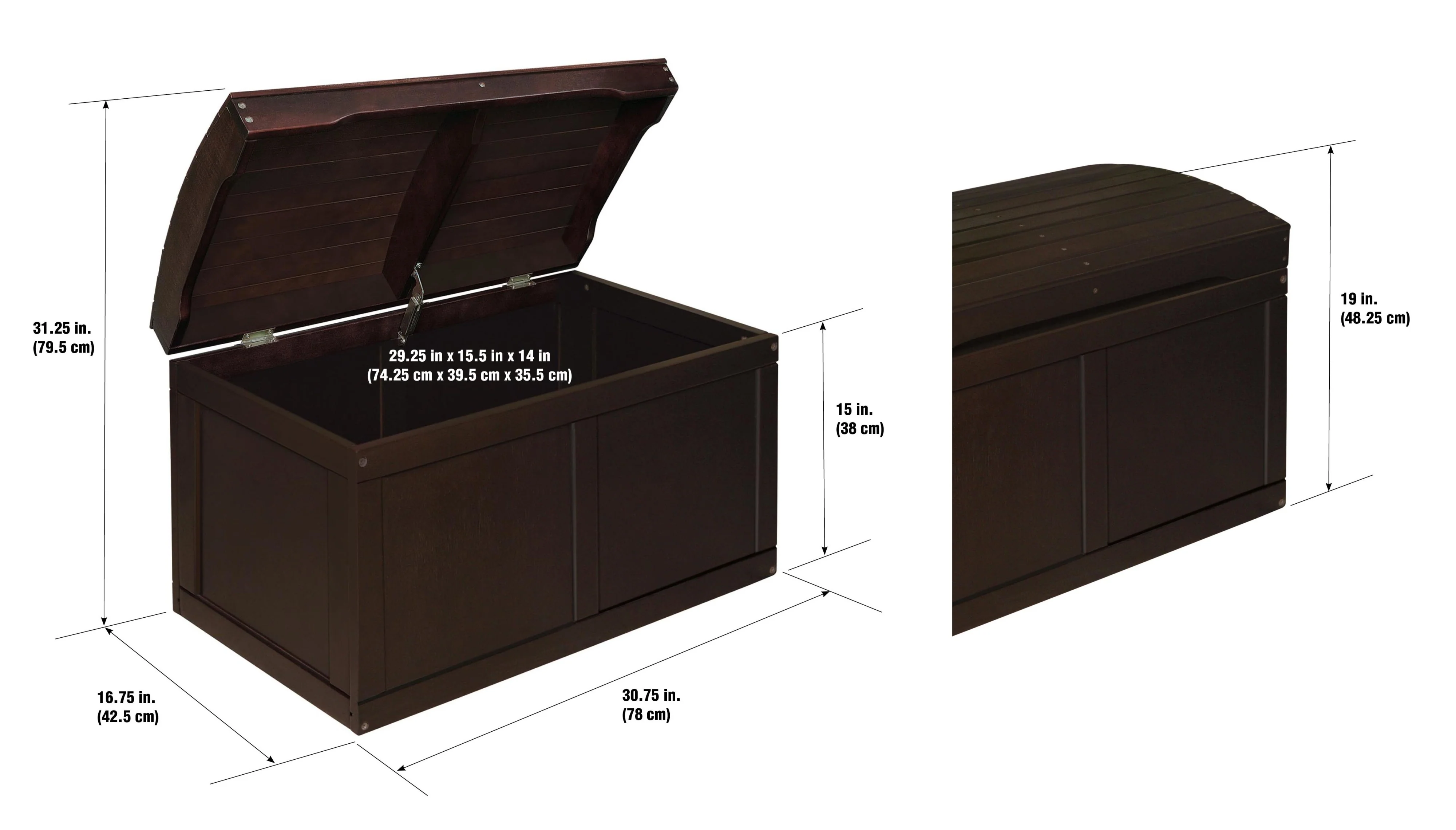 - Interior dimensions of 29.25 inches L x 15.5 inches D x 13.75 inches H.