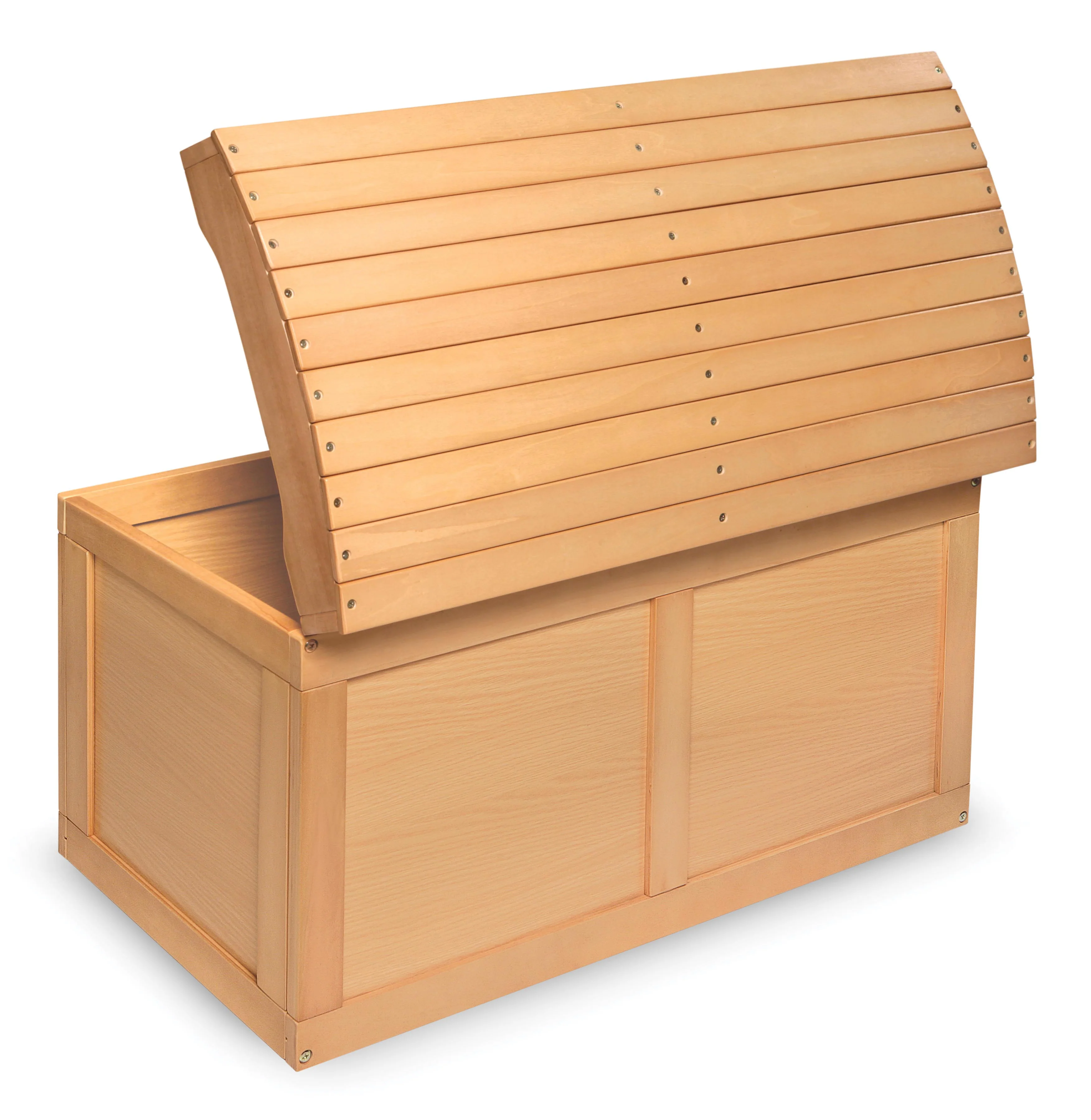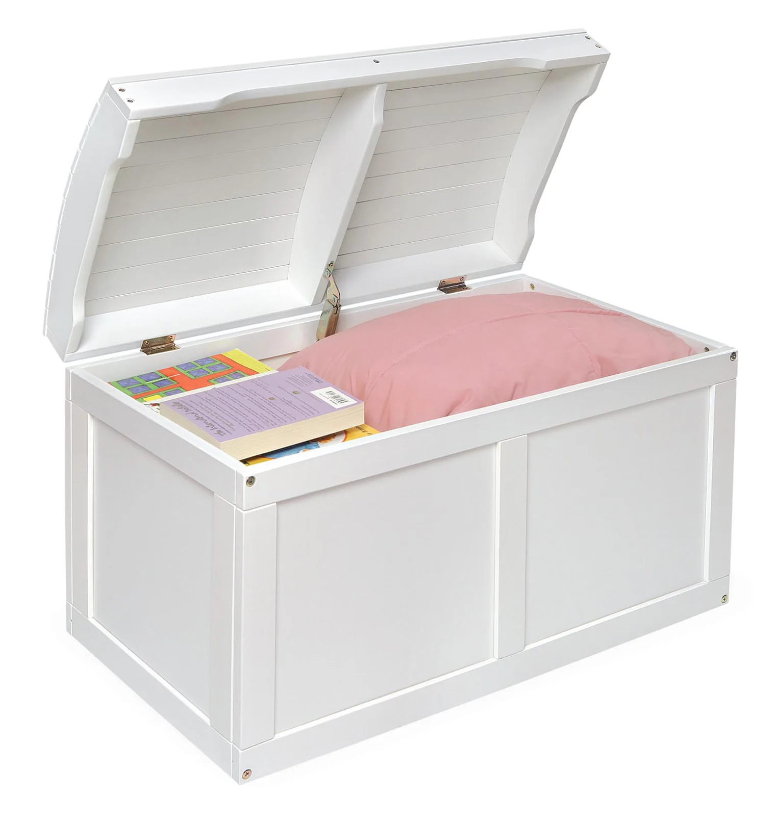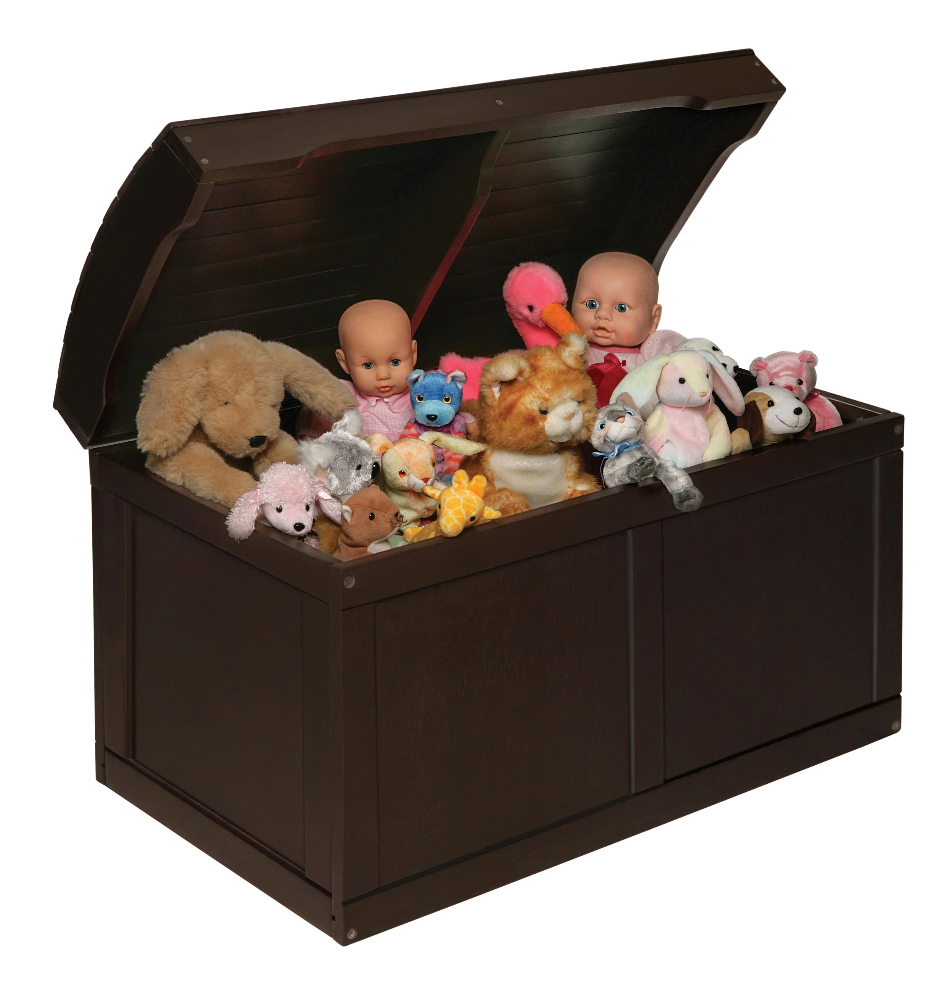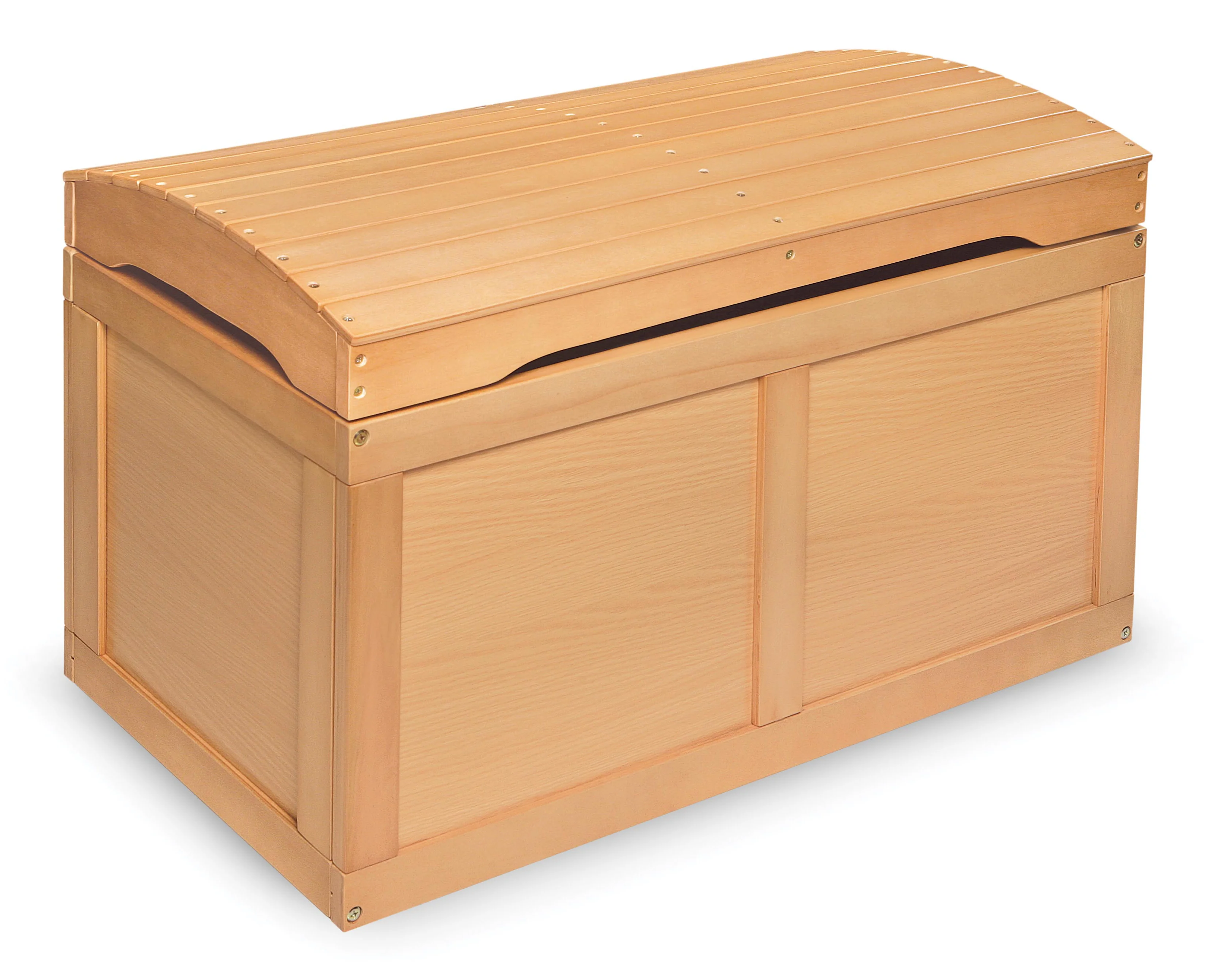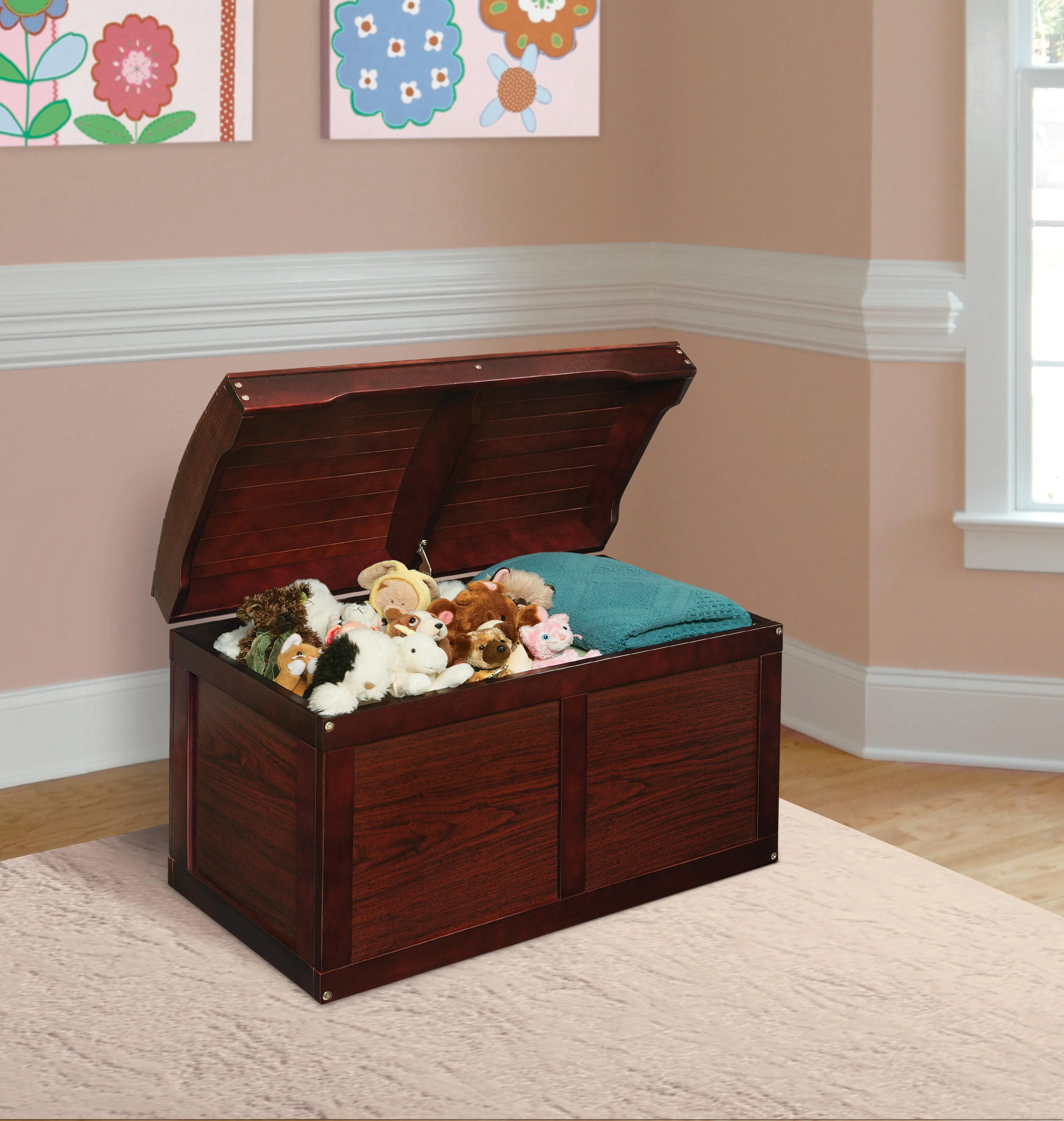 - Badger Baskets Barrel Top Toy Chest features attractive styling with a treasure chest look - perfect as a place for storing special toys and stuffed animals.