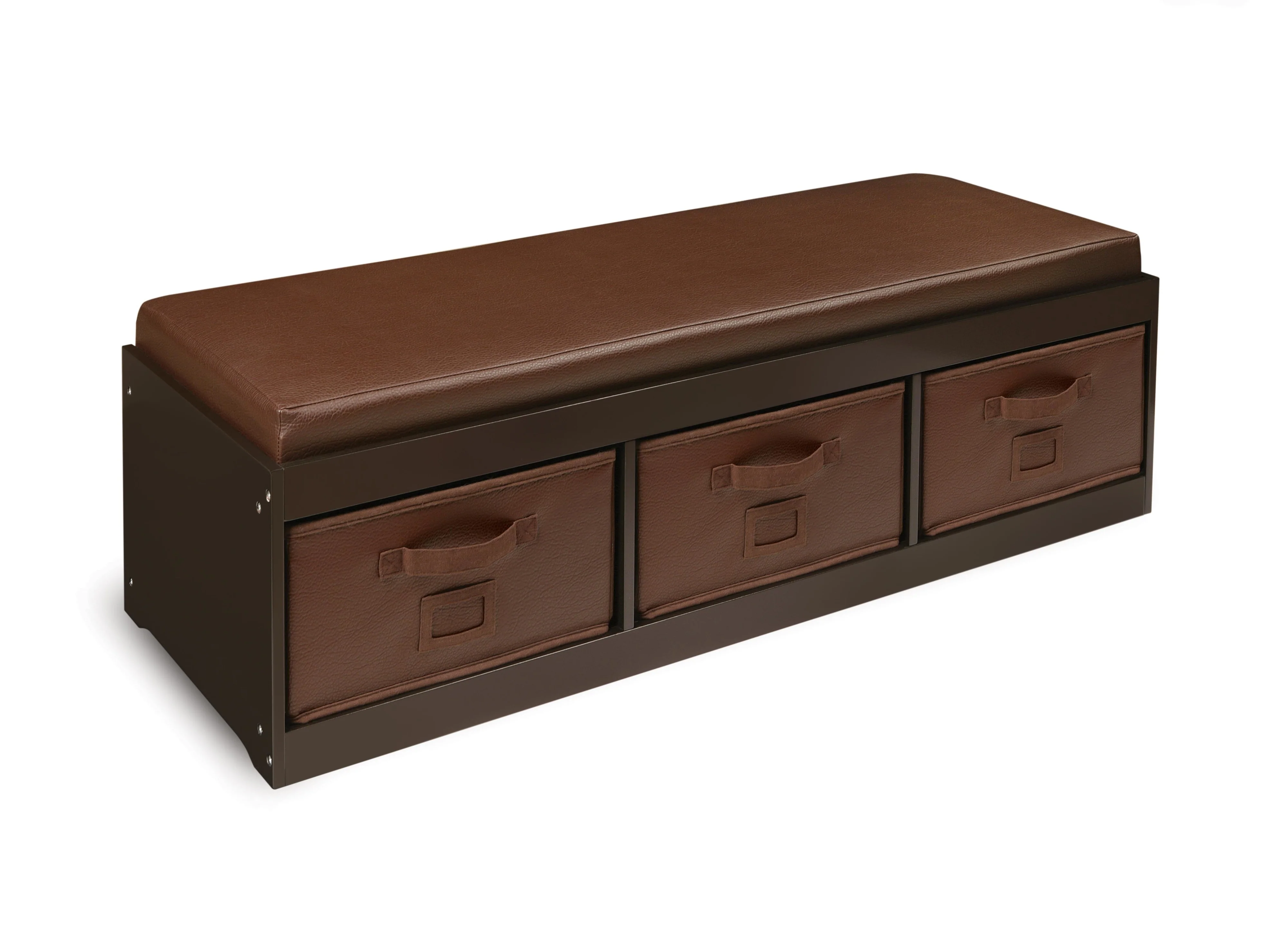- Classy, durable, wipe clean, faux leather covering on cushion and bins.