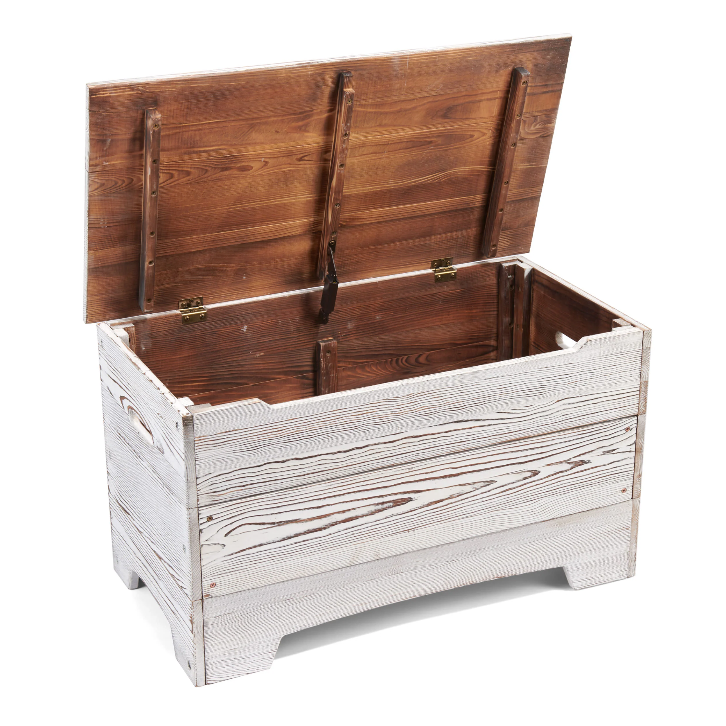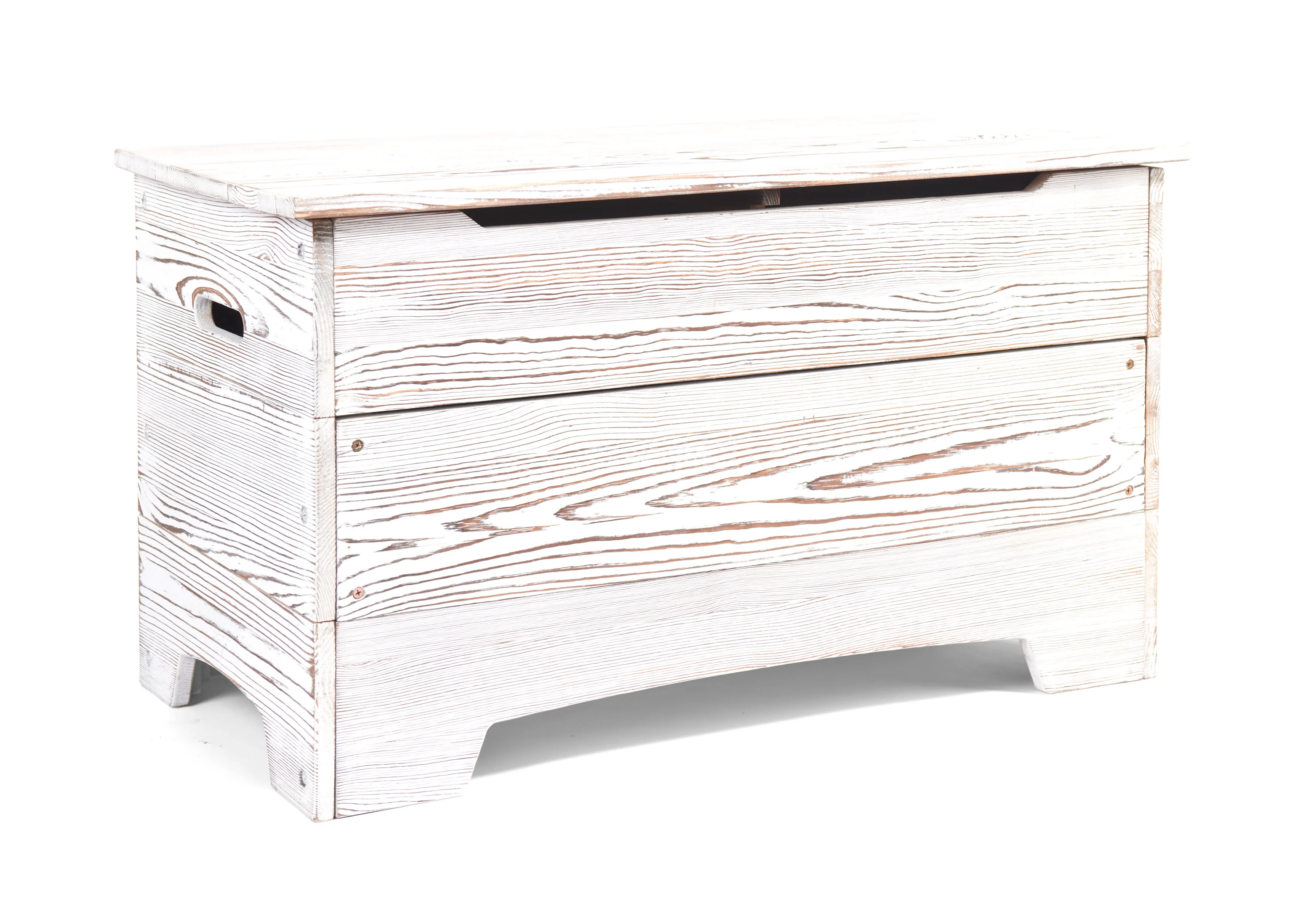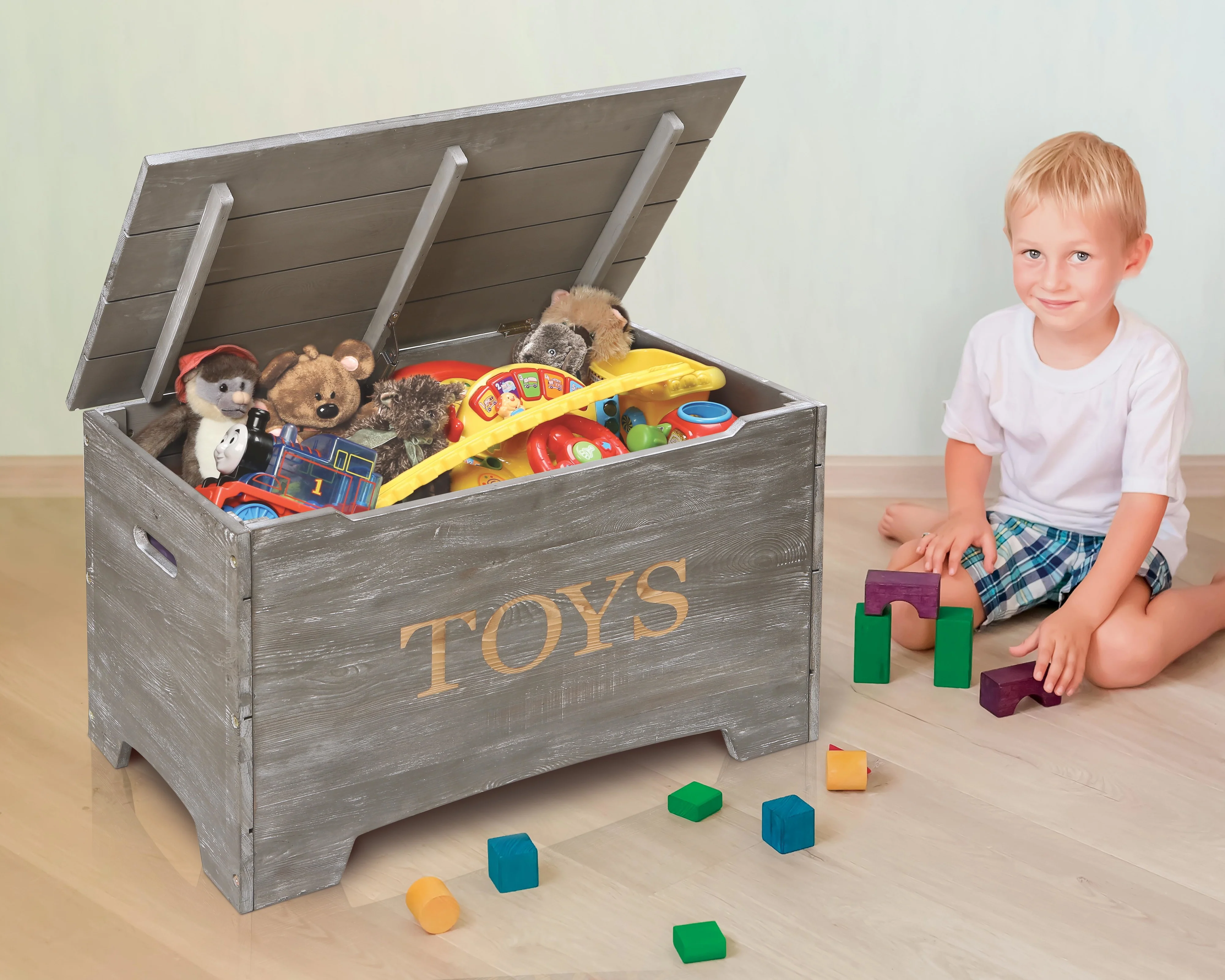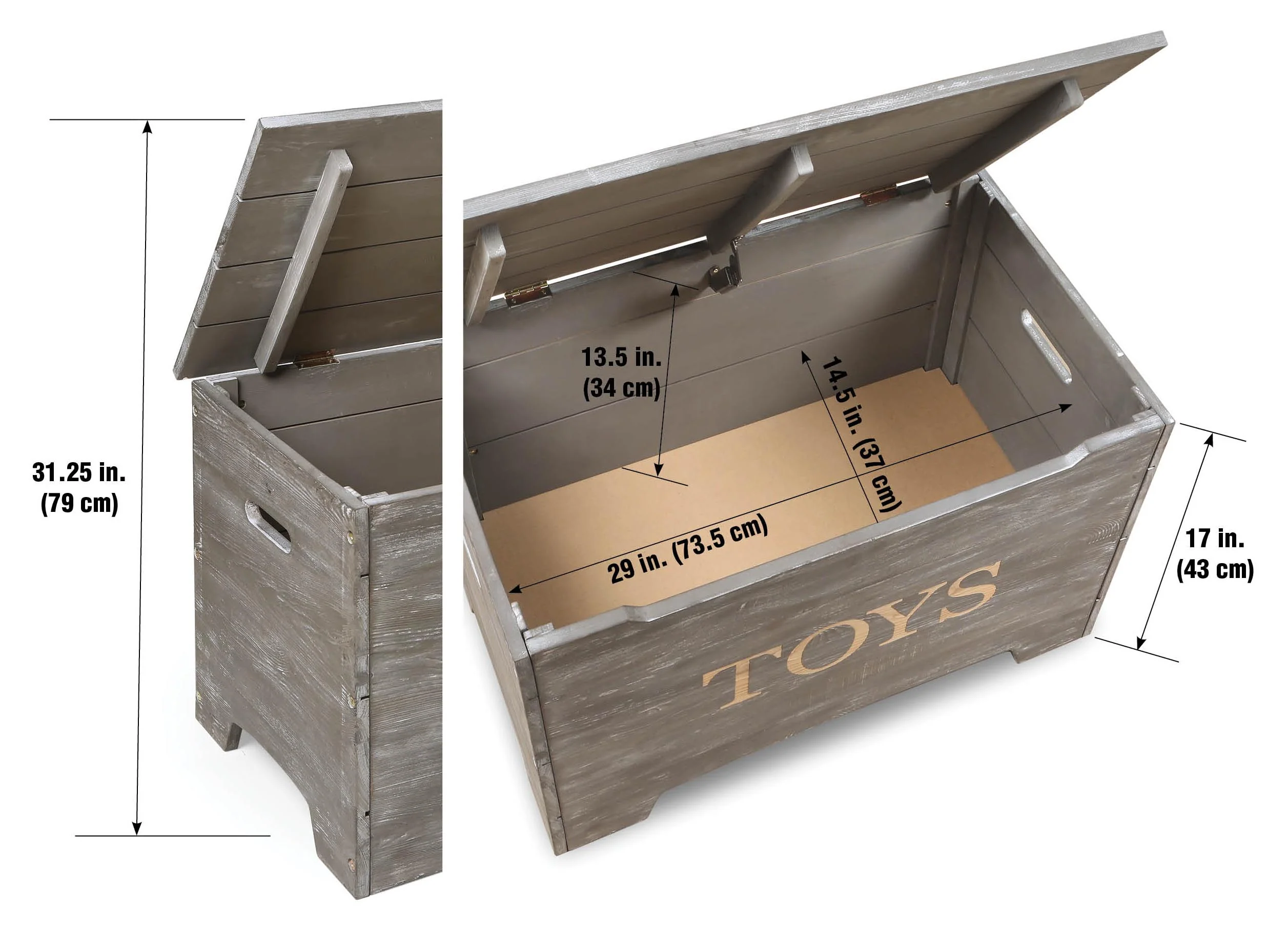 - Bold TOYS lettering engraved on the front exposes the plain wood for a contrasting, two-tone effect.