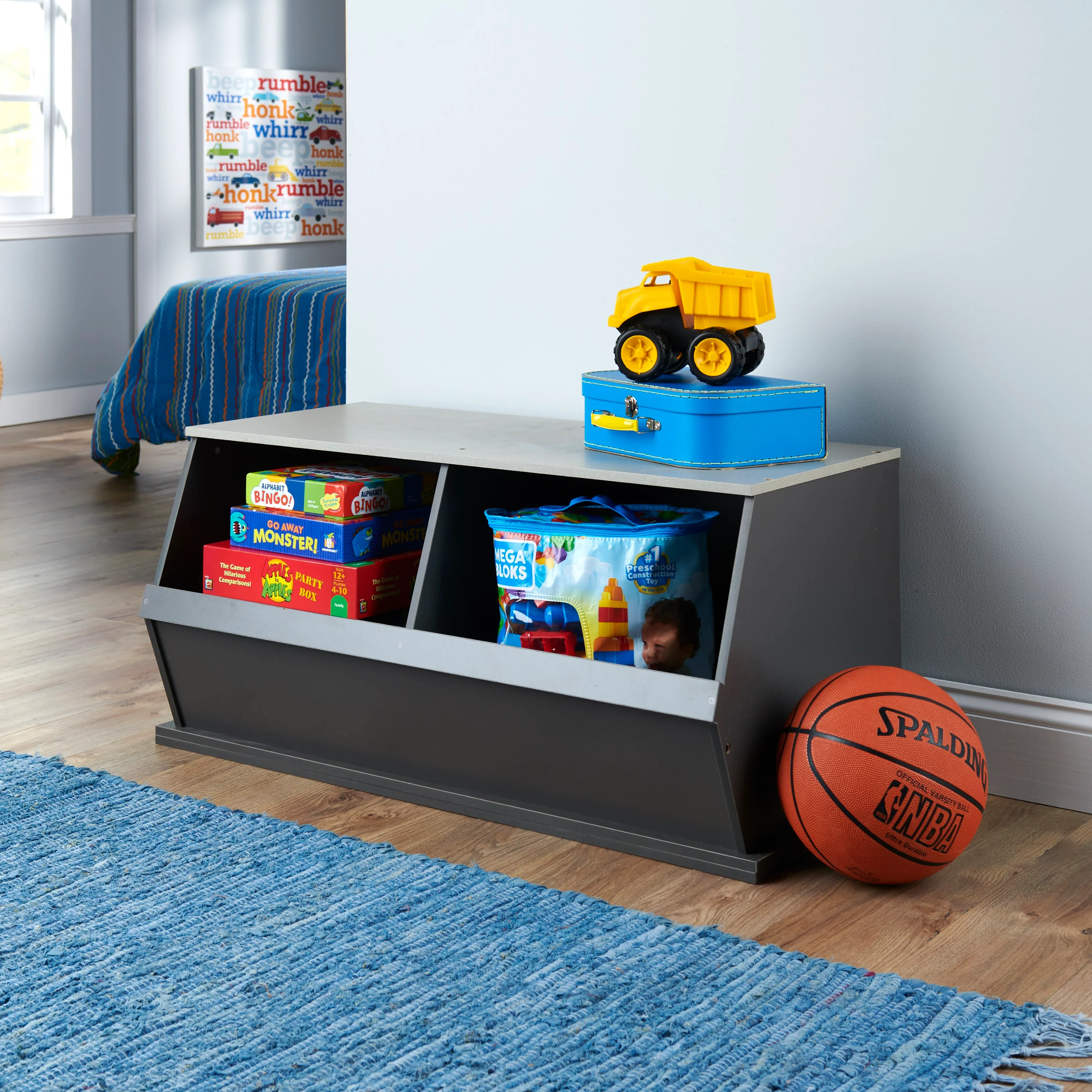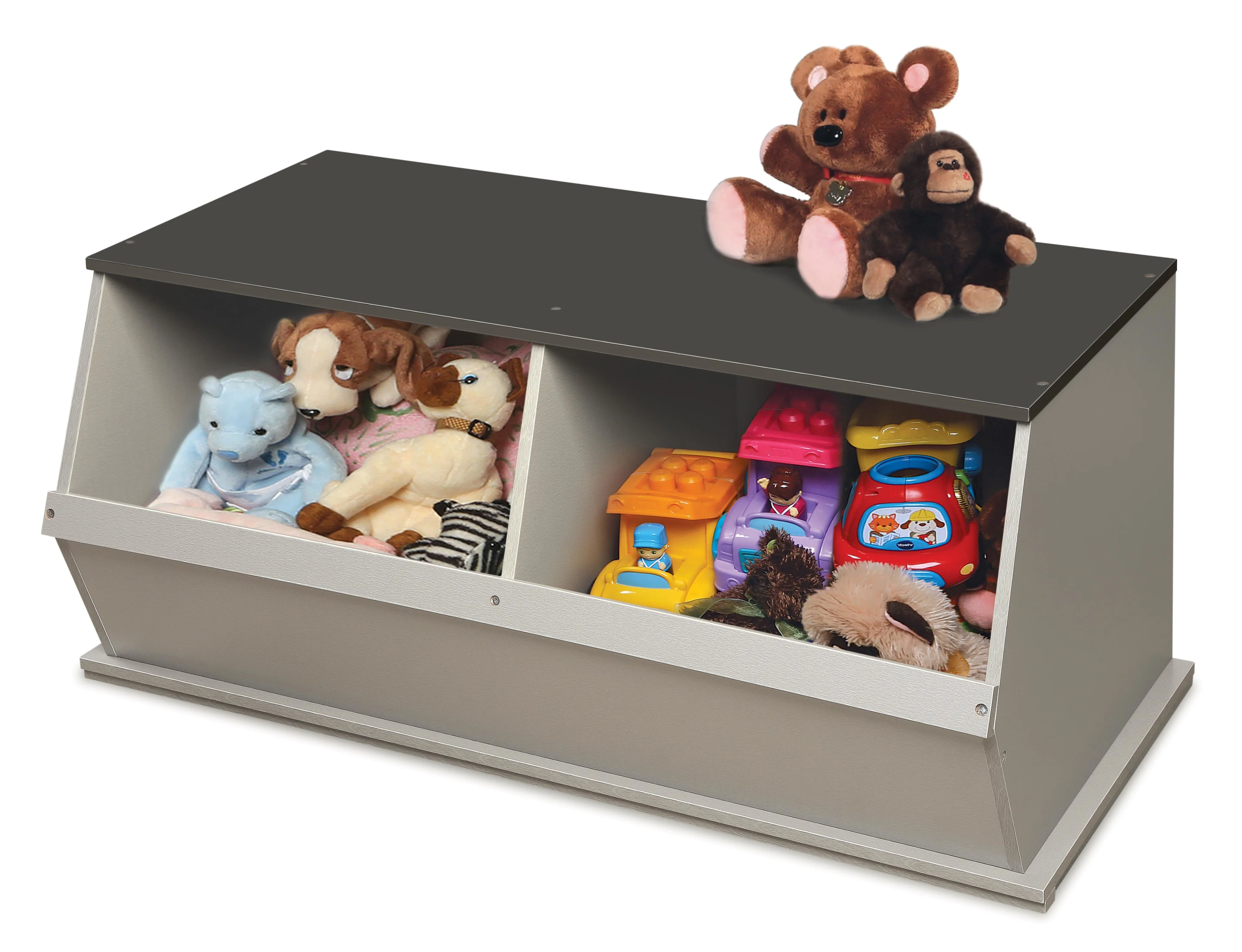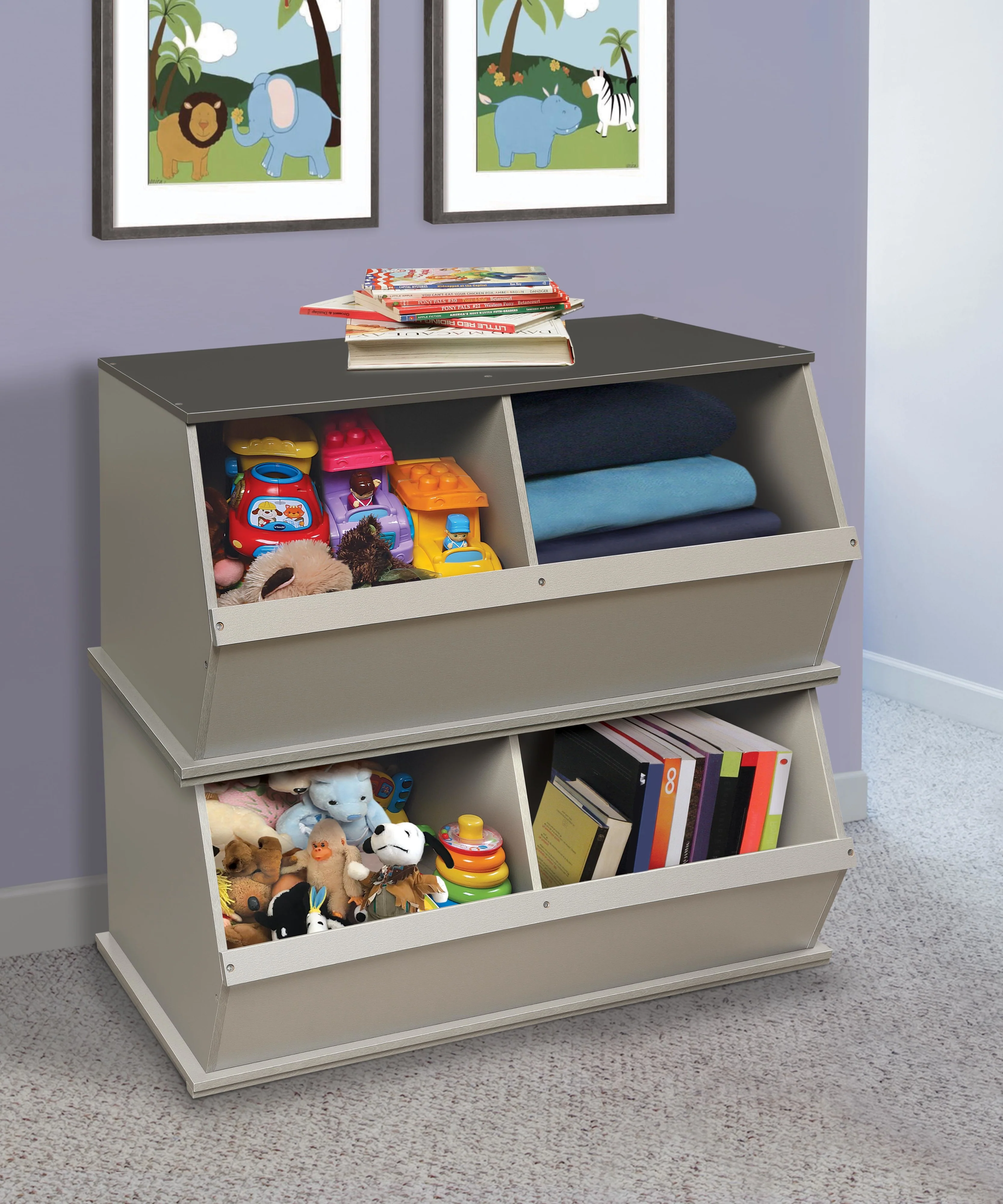 - Badger Basket's Two Bin Stackable Wood Storage Cubby/Bin is a sturdy, modular storage solution for keeping all sorts of items tidy.