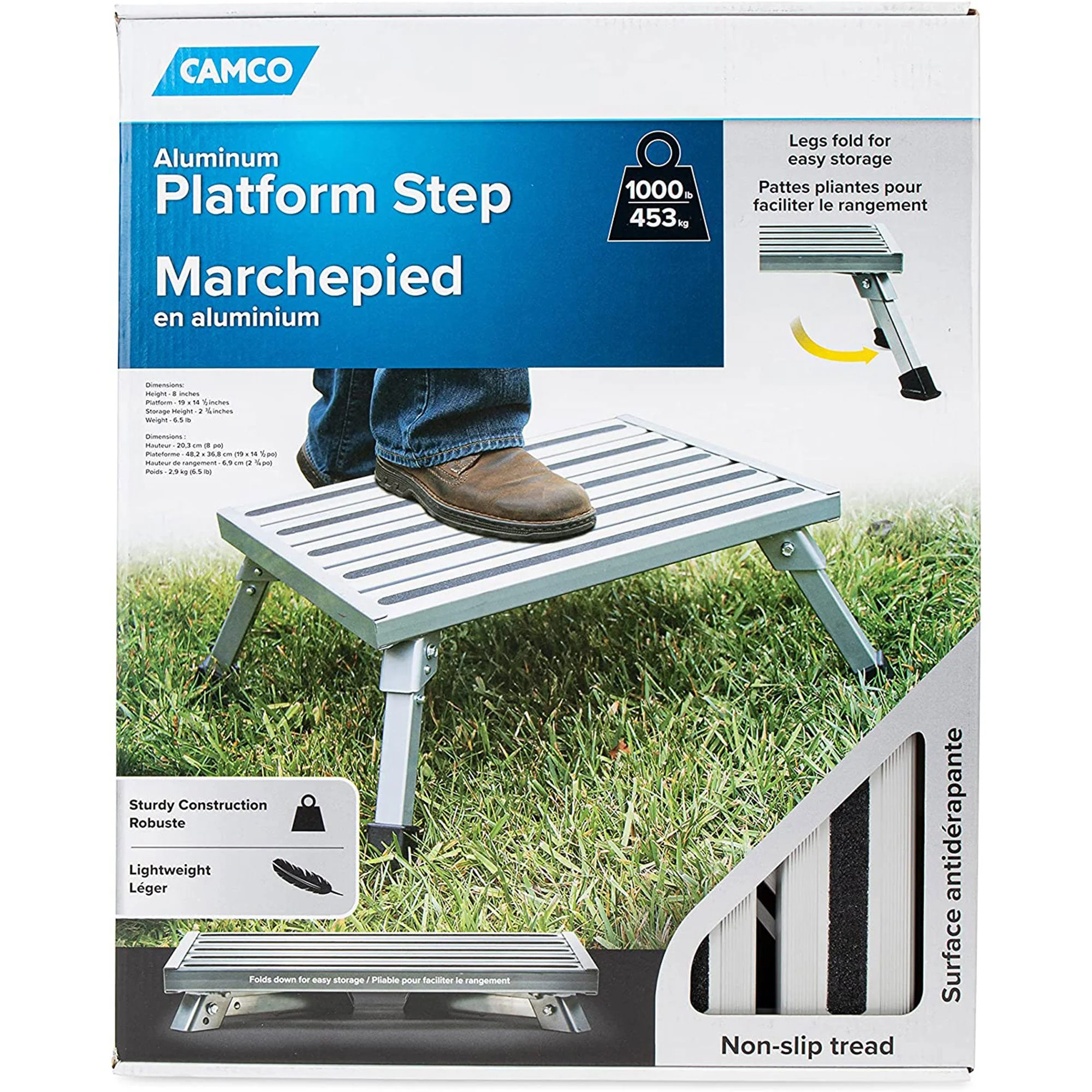 For maximum strength with minimum storage space, use the Aluminum Platform Step Stool from Camco for convenience at any time.