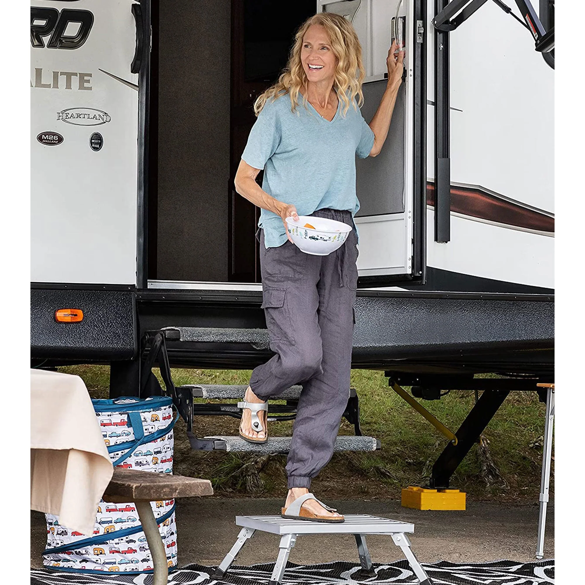 Don't let the compact sizing deceive you, the Fixed Height Aluminum Platform Step Stool from Camco is a functional tool that offers convenience and reliability whenever you need it.