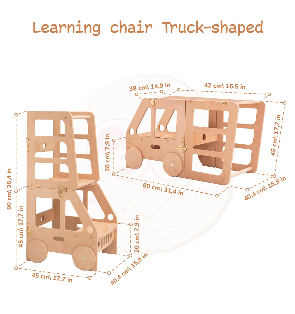 Transform the chair tower into a majestic fortress, the ladder into medieval stairs, and the cutouts into delightful windows – the possibilities are endless! While your child enjoys endless play, you can relax and observe or join in for some unforgettable moments together. Convertible Kitchen tower opens up a world of joy and creativity for your child and cherished quality time for you.