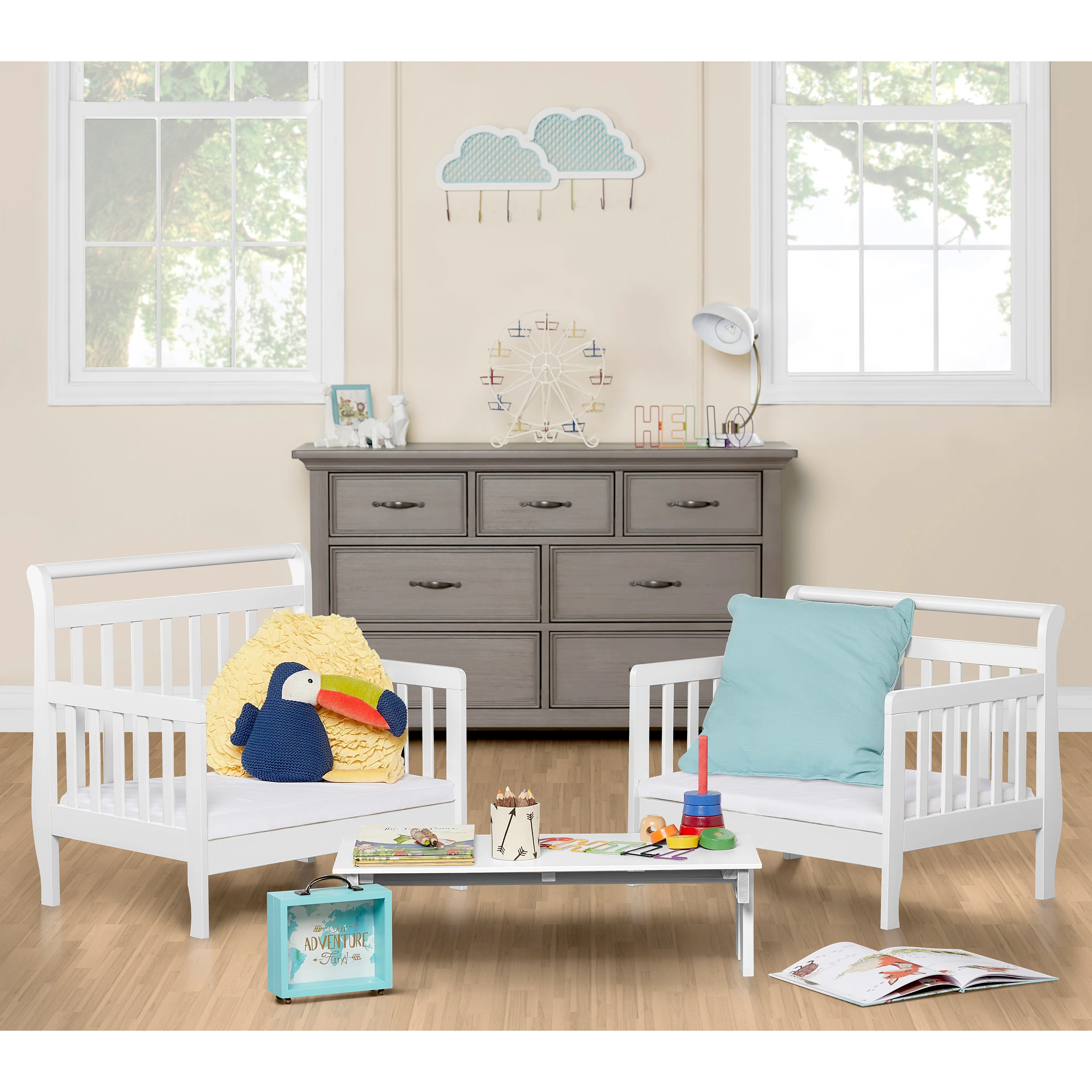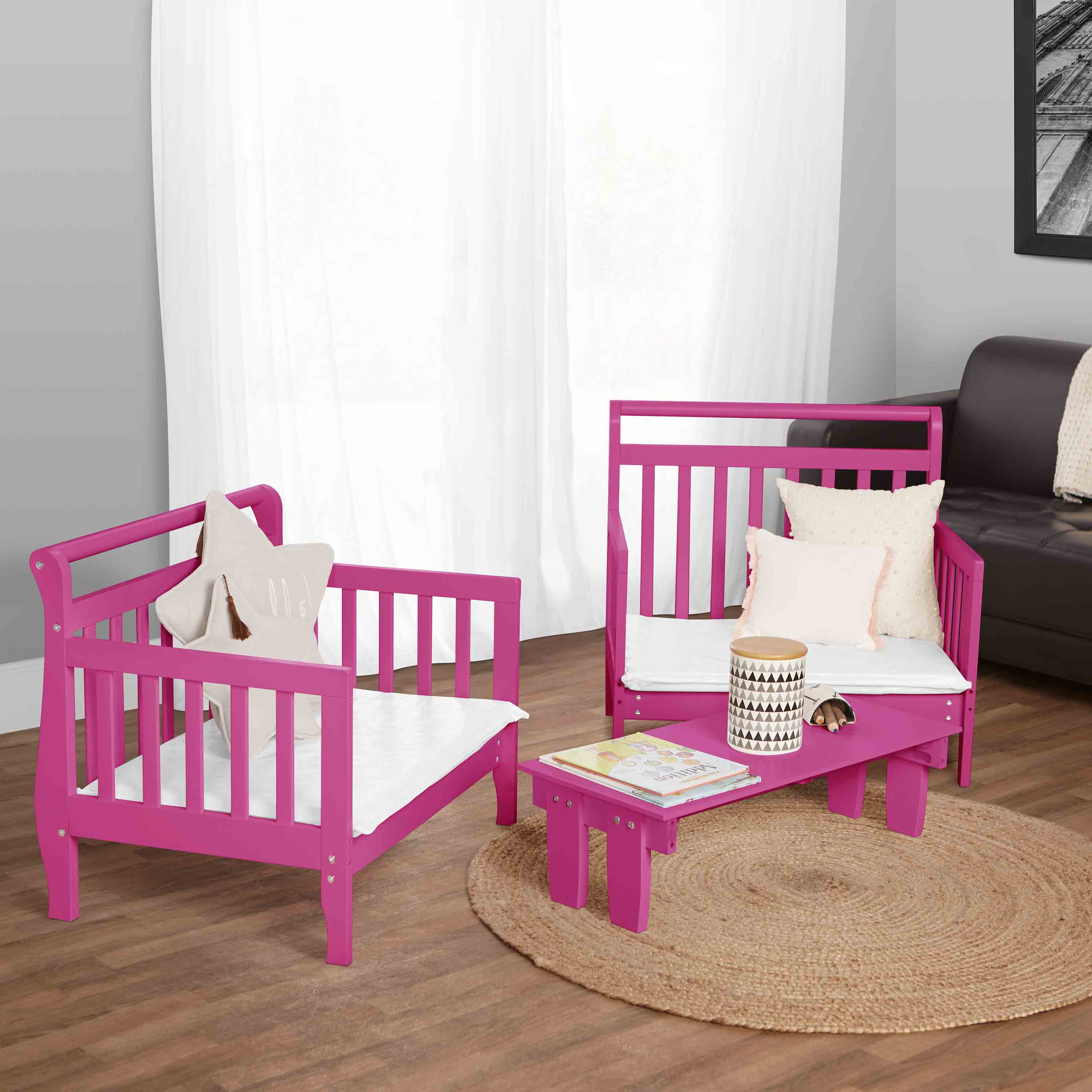 The Universal 3 in 1 toddler bed convertible Kit is an accessory that is necessary for converting the Dream On Me Emma, Hudson and Portland 3 in 1 toddler bed into a table and chair