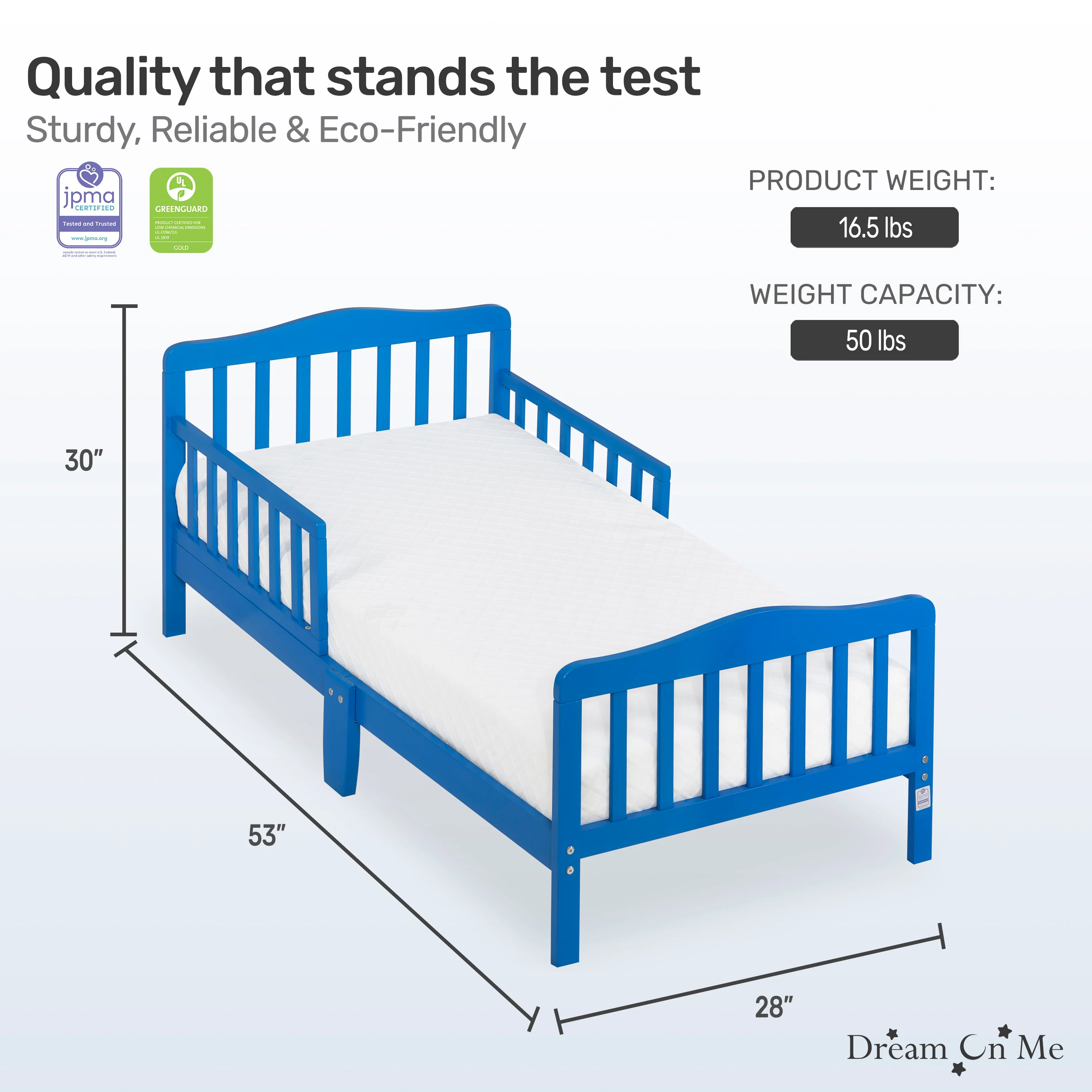 - SAFETY FIRST: The toddler bed is JPMA certified and designed to meet or exceed all applicable ASTM and CPSC standards; It is free of phthalates, latex, lead and BPA and its design is ergonomic, stable and sturdy