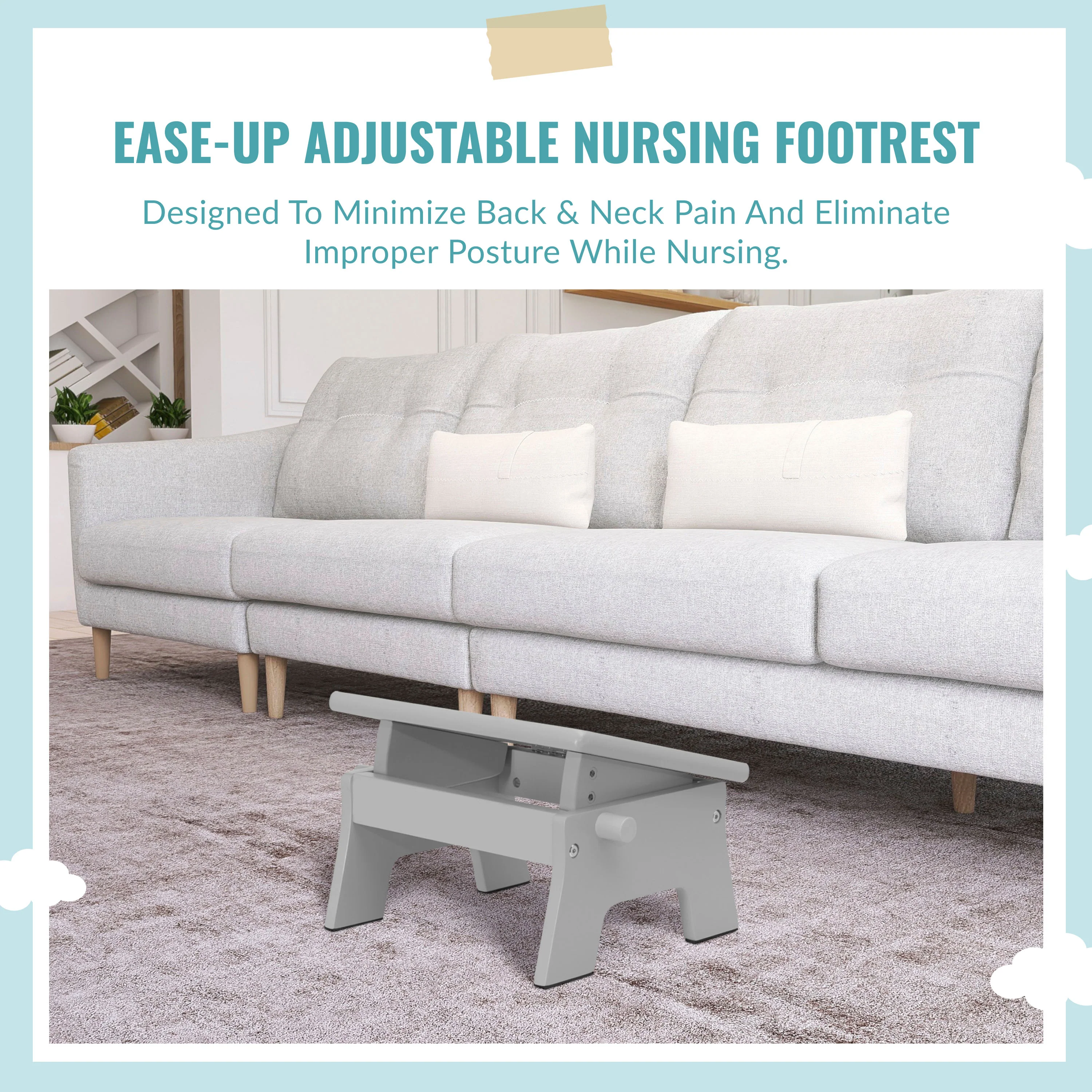 - ADJUSTABLE FOOTREST: This wonderful nursing footrest can be customized to your specifications. Kick your feet up & simply turn the knob and lock it when you find the most comfortable position that works for you.