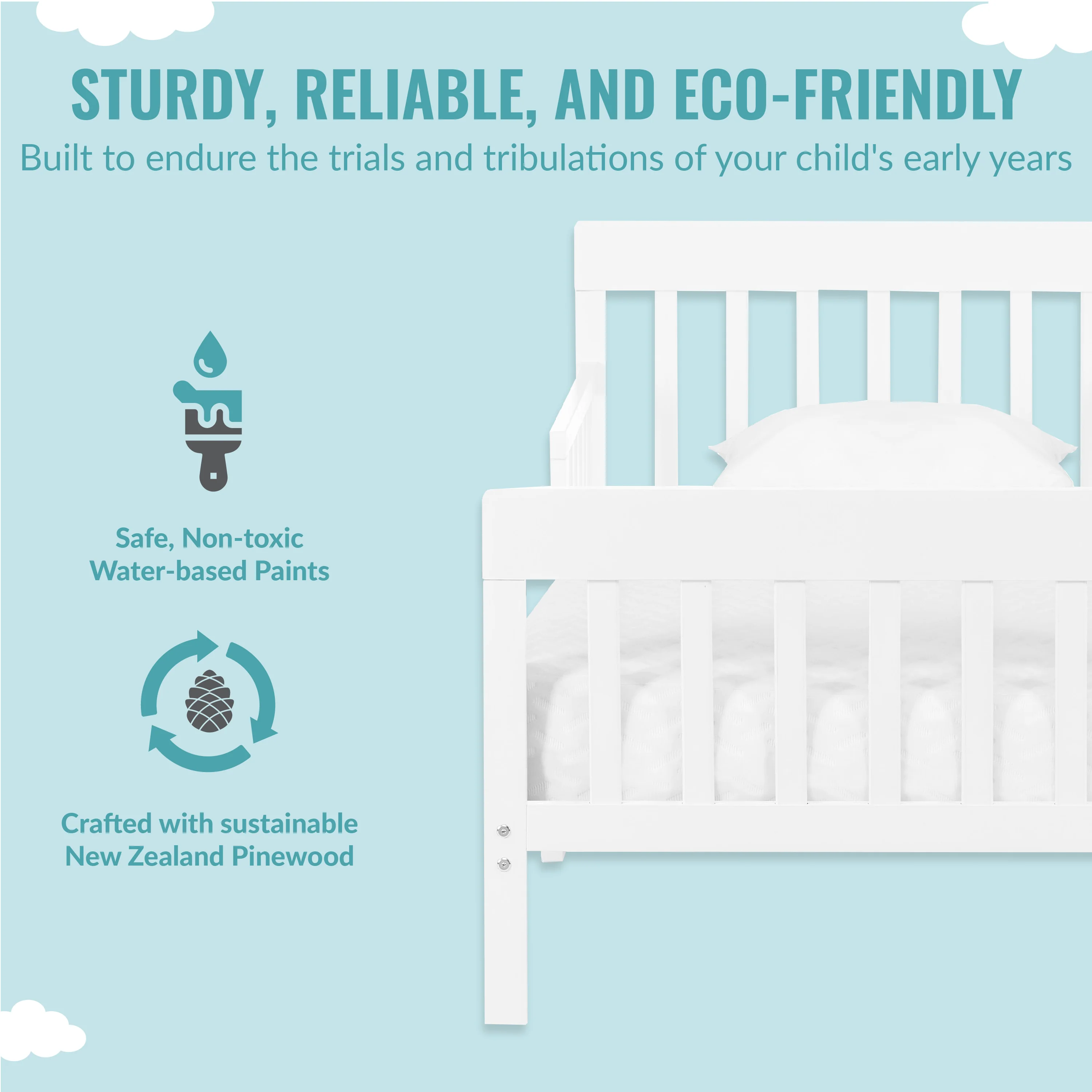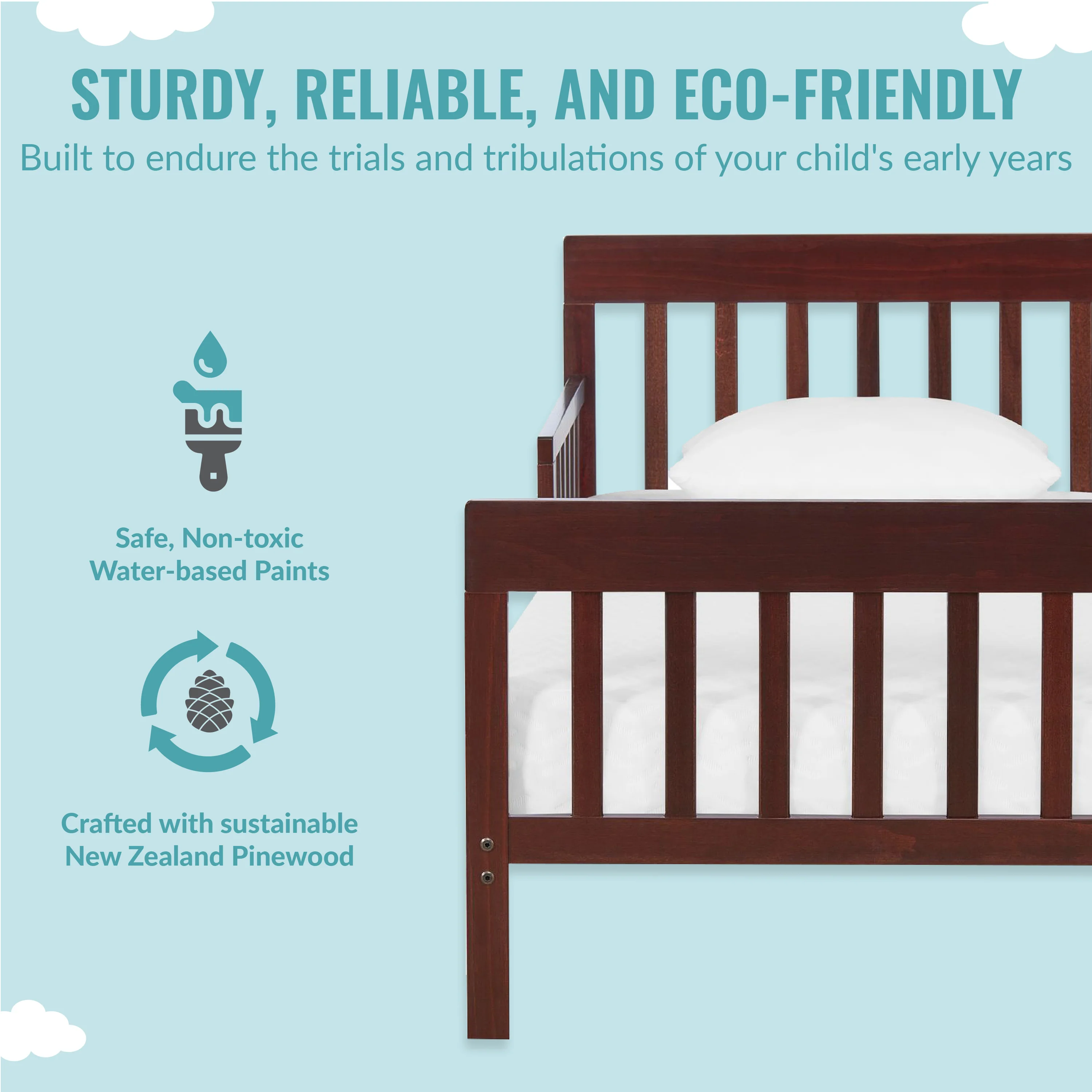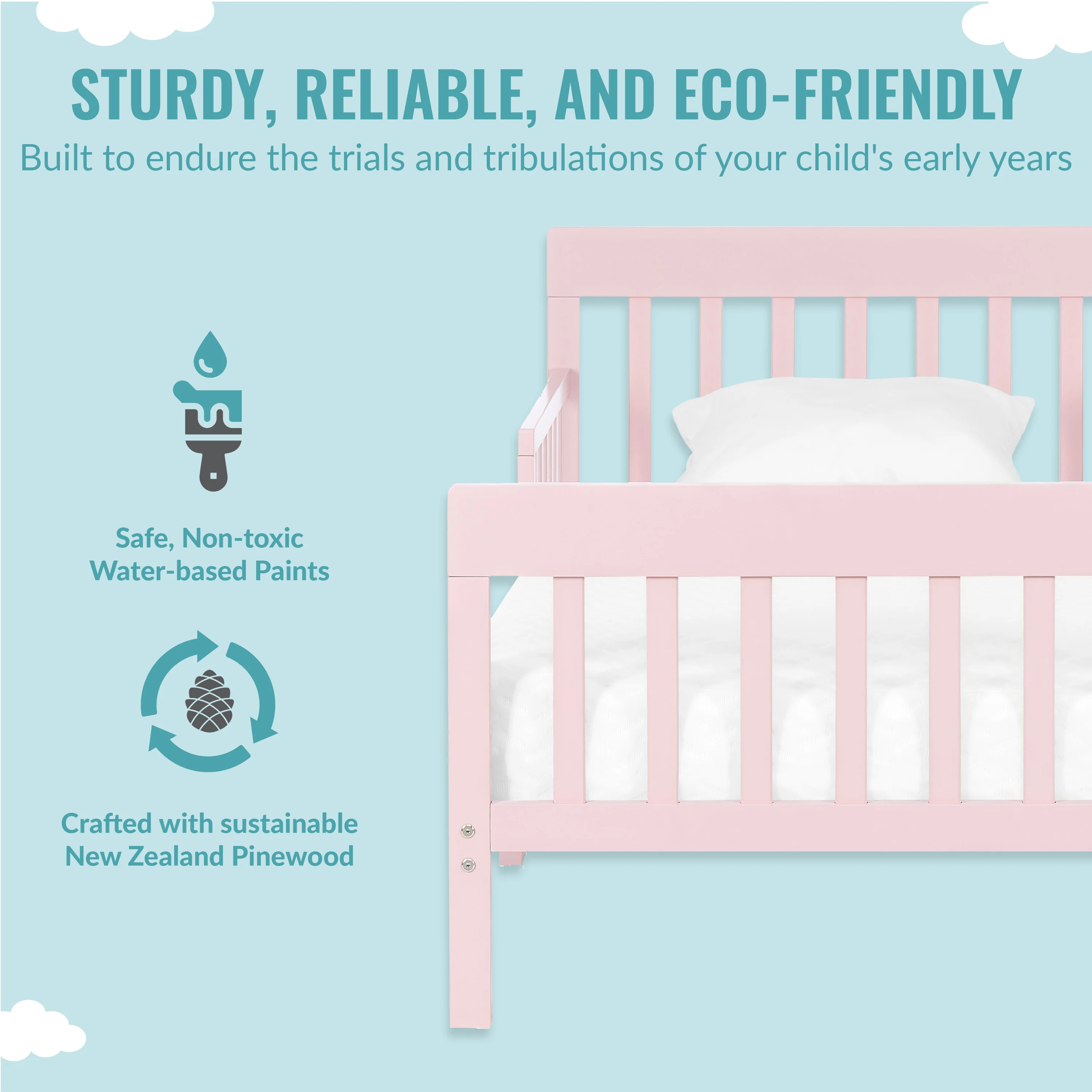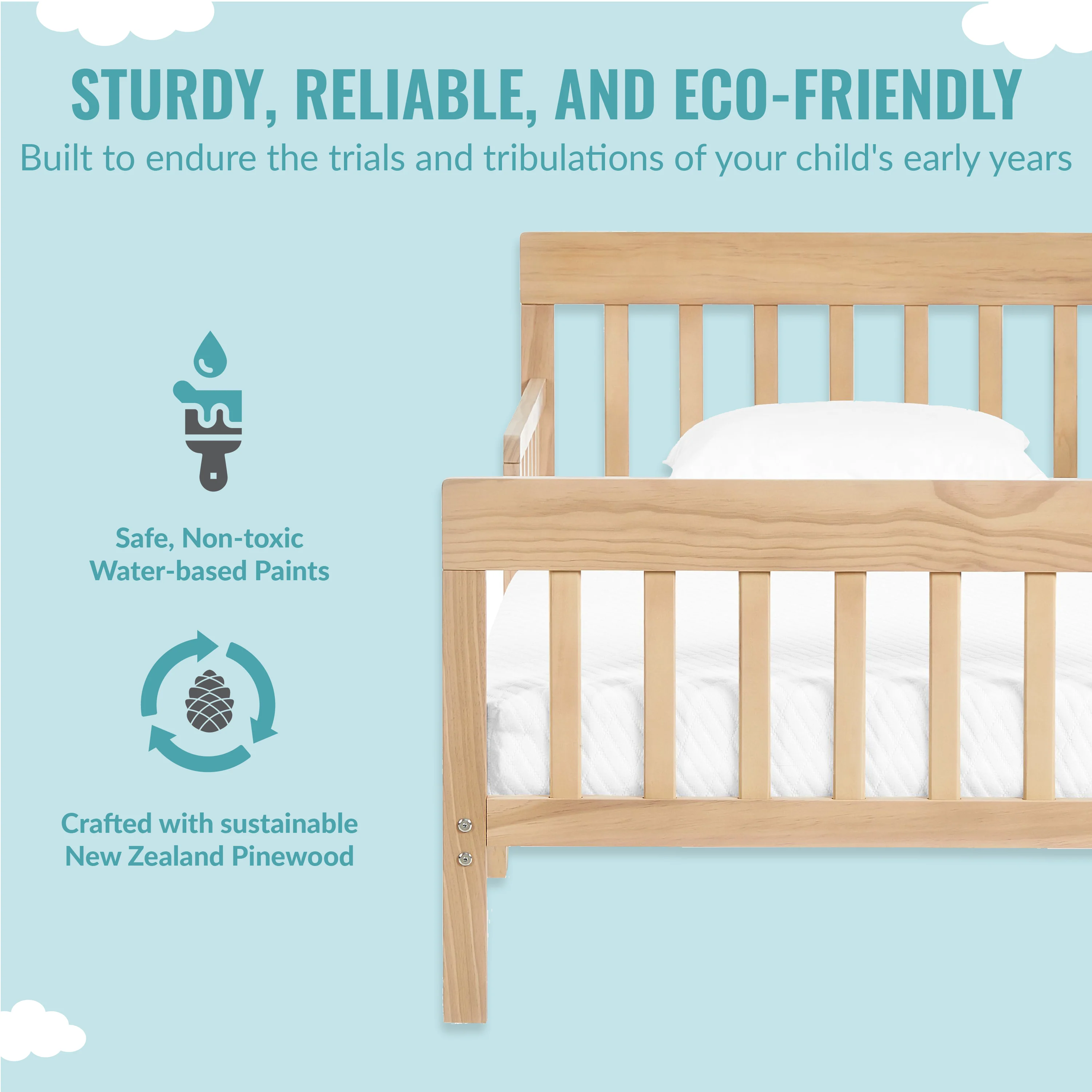 - STURDY & CHARMING: This toddler bed is constructed using sustainable New Zealand Pinewood with a non-toxic finish!