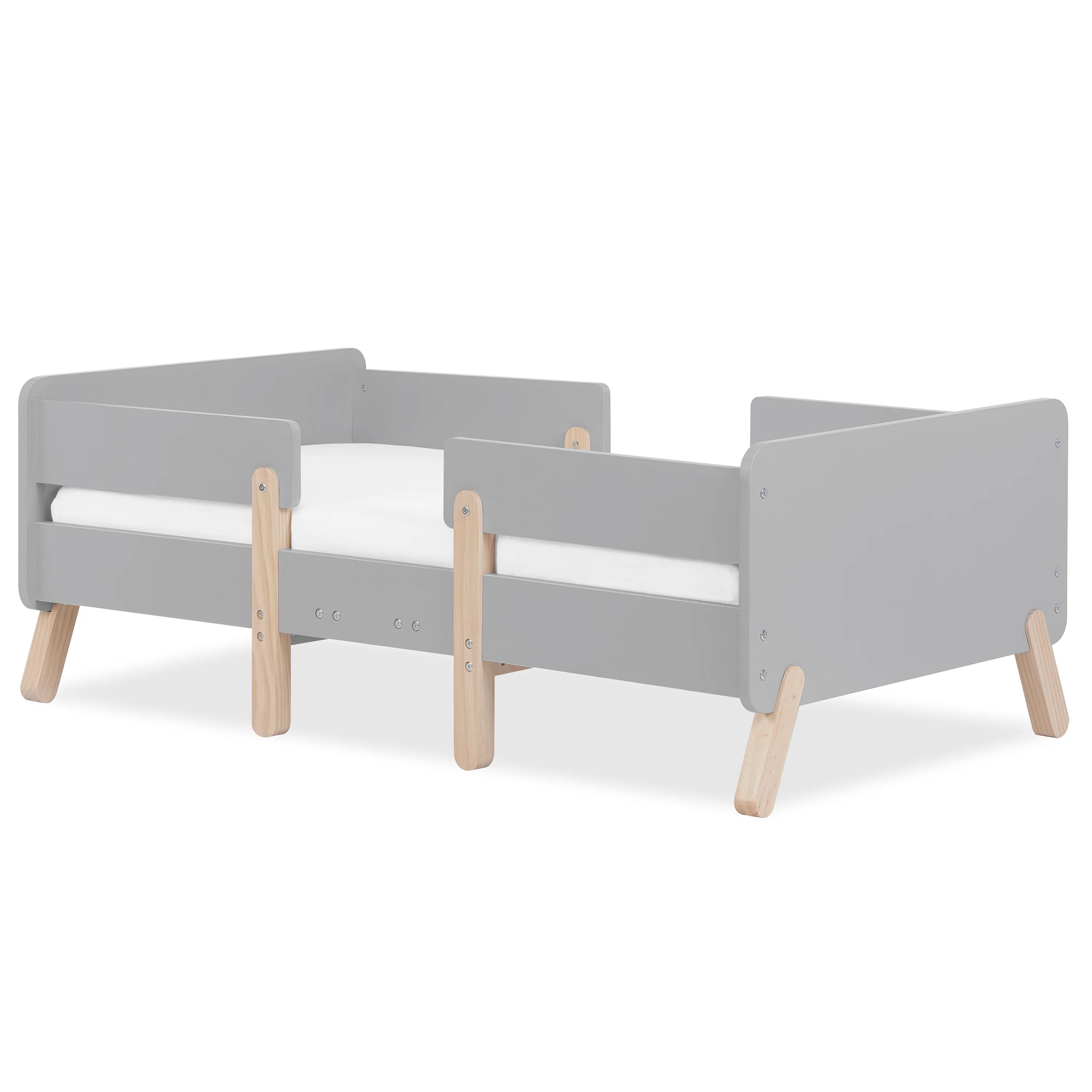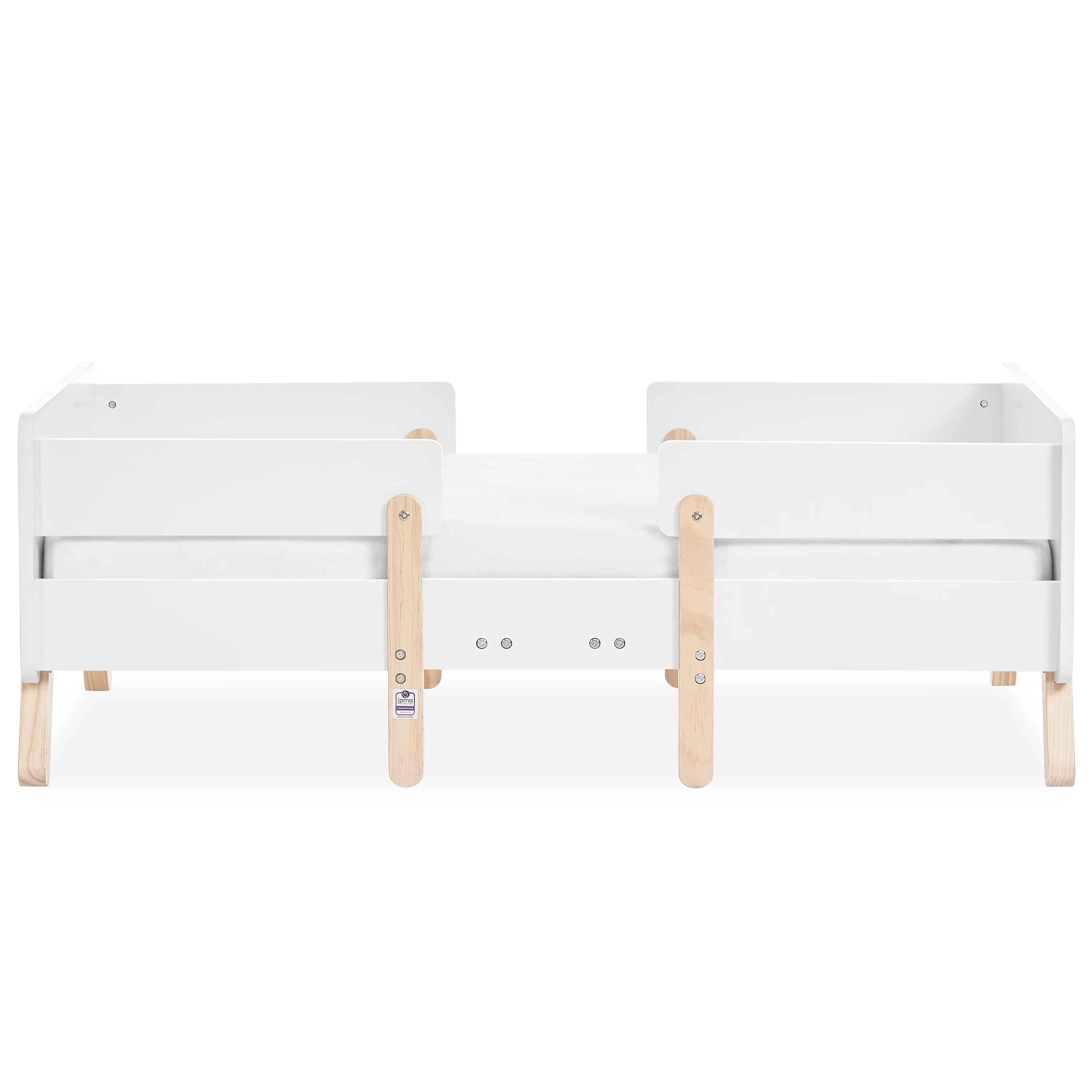 - With a sweet, ultra-modern style that complements most nurseries, this toddler bed comes in 3 finishes - White and Natural, Black & Gray