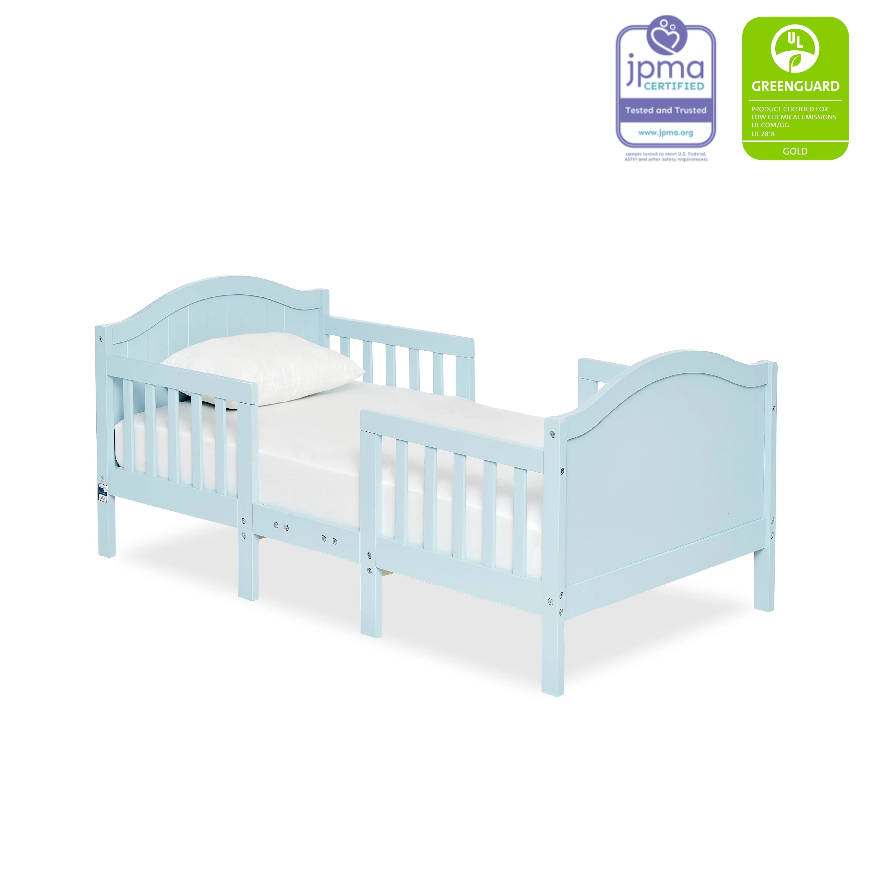 - CONVENIENT TRANSITION BED: The Portland 3-in-1 Convertible Toddler Bed sports a low-to-floor design making it easy for your child to get in and out of bed. The bed comes with four wooden safety side rails and is reinforced for stability with center legs