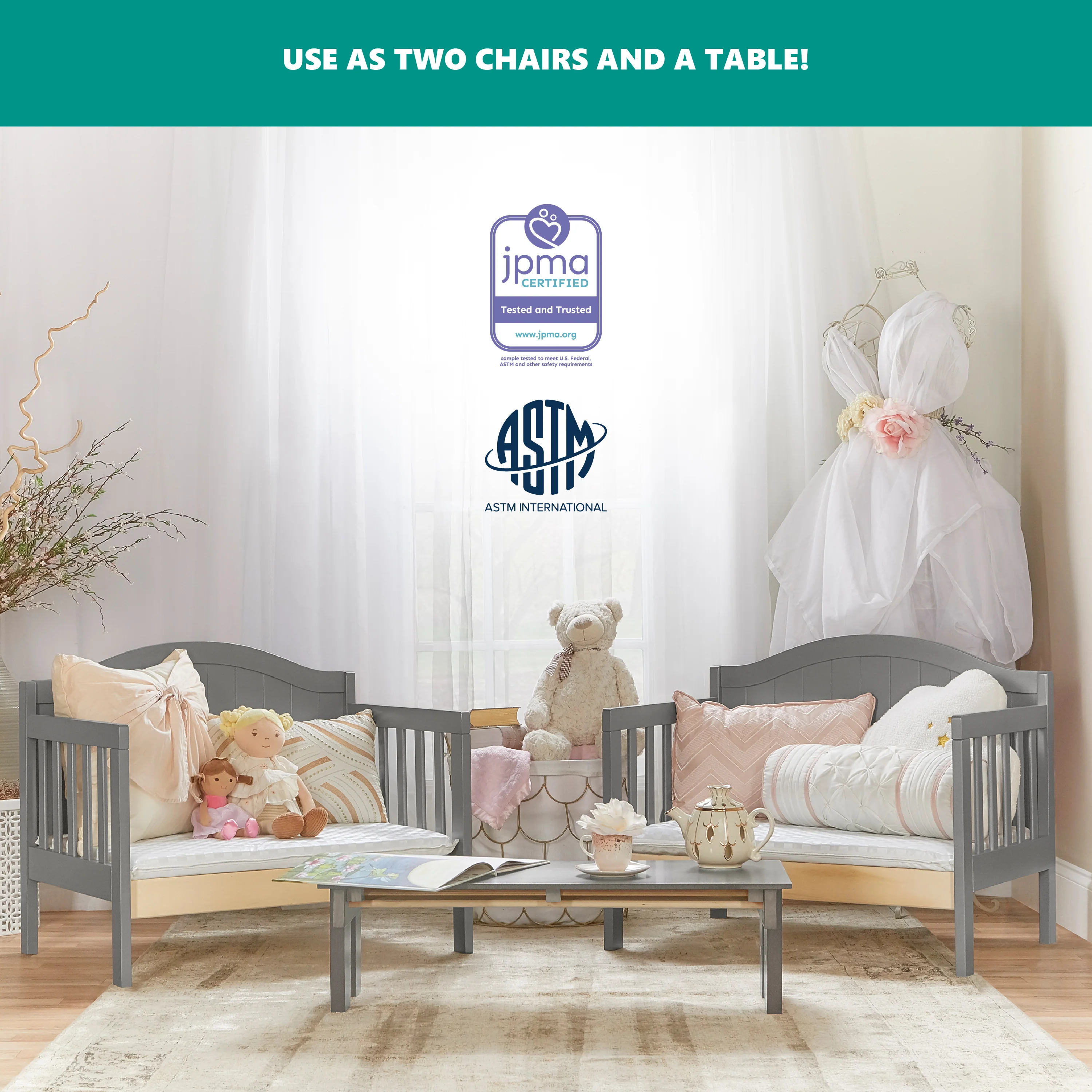 - 3 in 1 CONVERTIBILITY: The Portland converts easily from a toddler bed into two kid-sized chairs and a table that complement any room setting. Keeps pace with the changing needs of your growing child! Conversion kit sold separately
