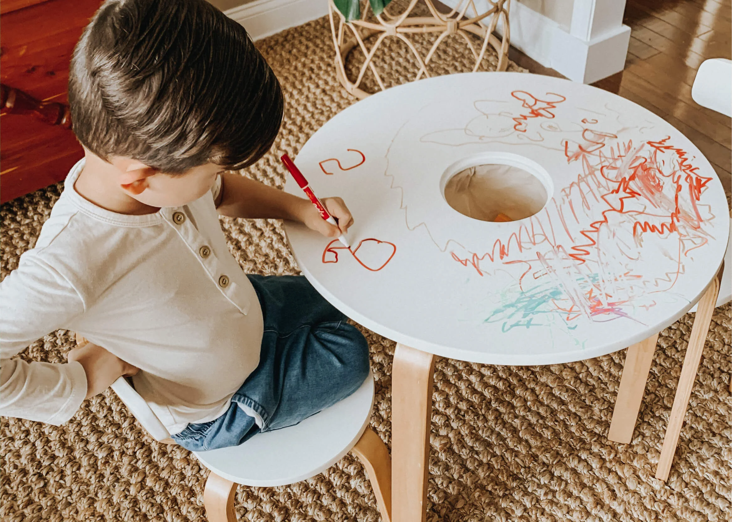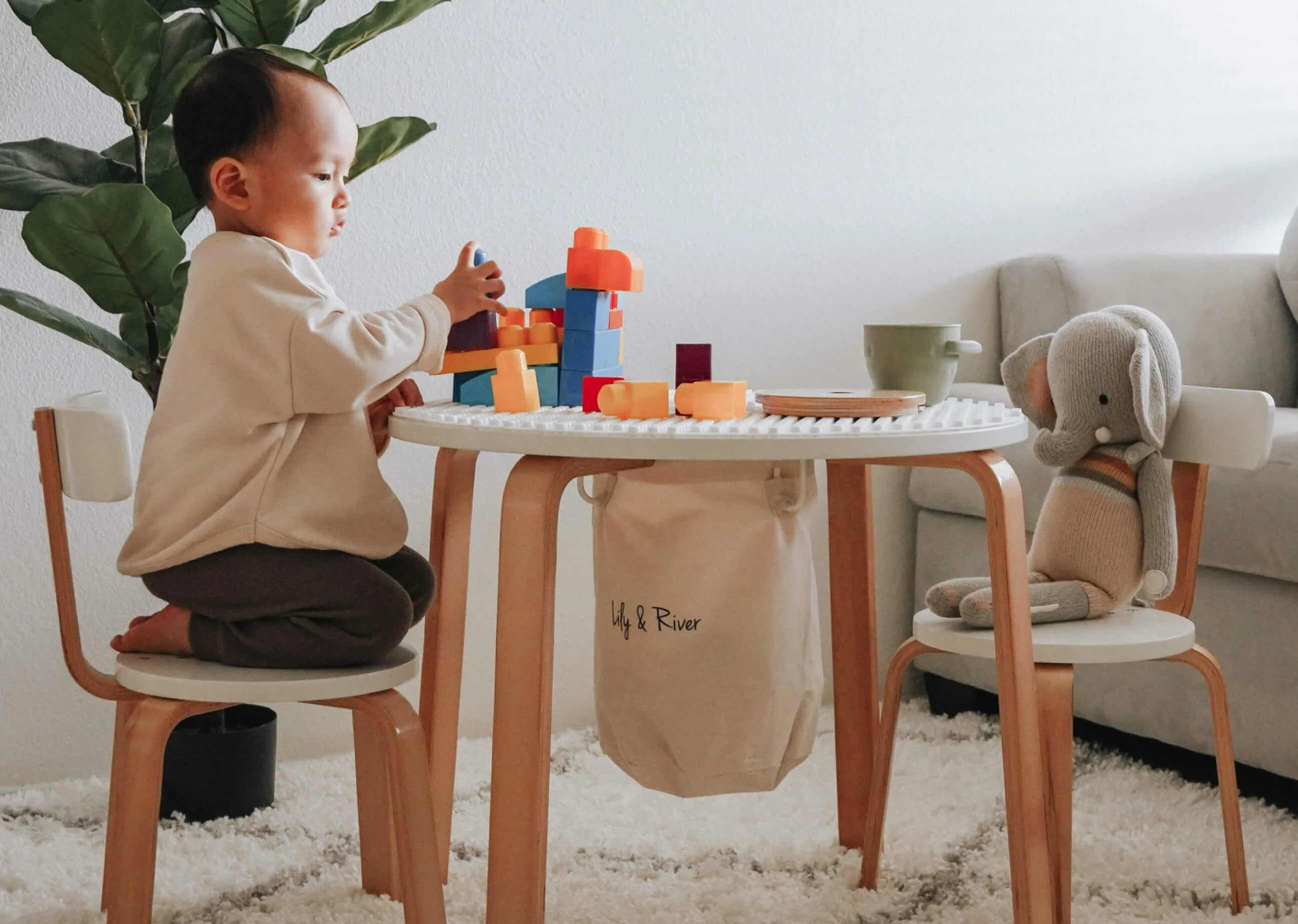 Montessori influenced activity table for children ages 1 to 8 with intuitive 3-in-1 surface benefiting playtime and organization.