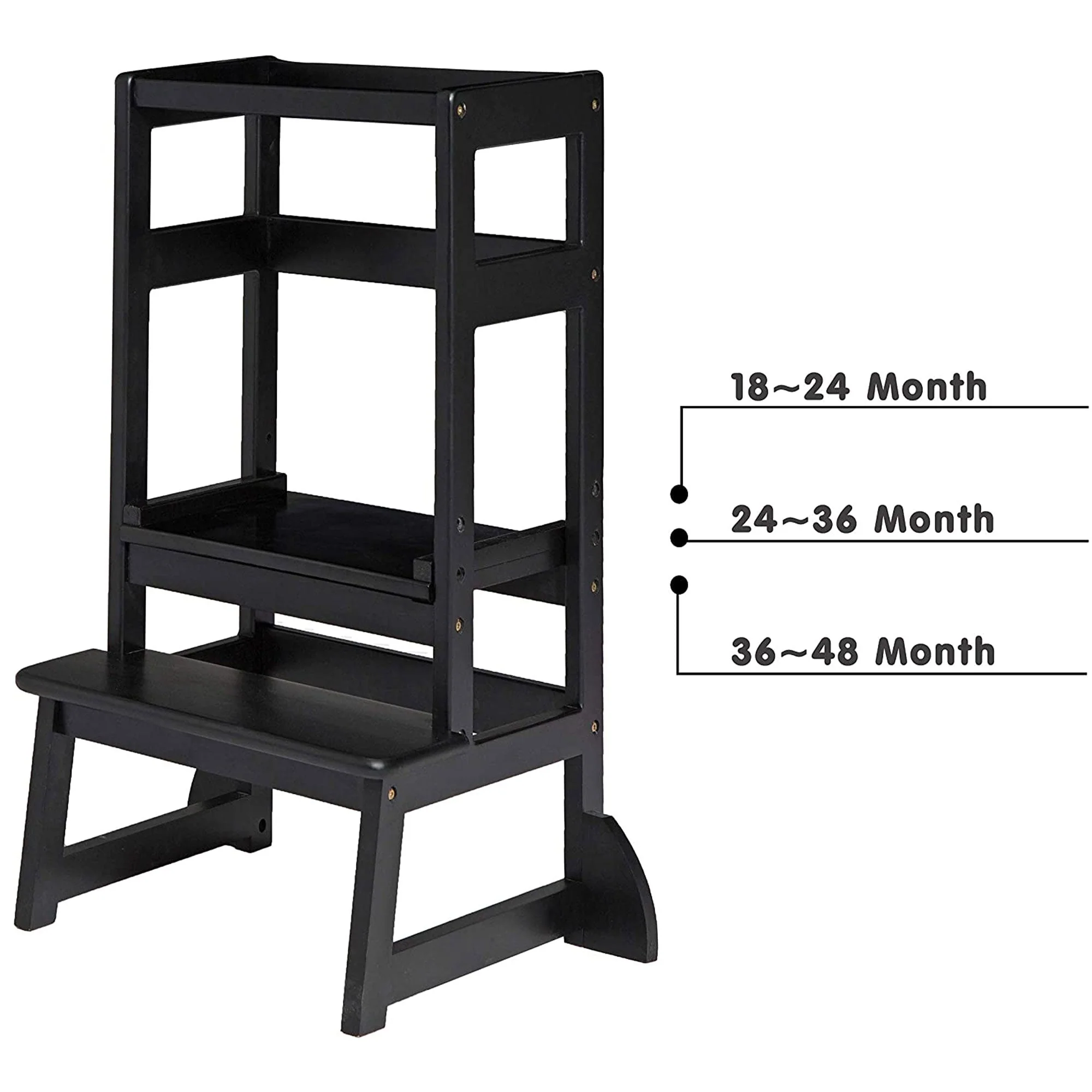 Your little tot will have lots of fun as they grow with the adjustable stool. The height can be changed to accommodate children from 1 to 3 years of age, and the 4-sided railings ensure they stay safe as they use the stool. Great for learning in the kitchen, the stool can also be used to reach the sink in the bathroom. Built from solid wood that supports up to 150 pounds and coated in a non-toxic, lead free coating, the ladder is perfectly safe for your baby. Further safety is provided by attachable, anti-slip strips for the 4 legs that hold the platform in place.