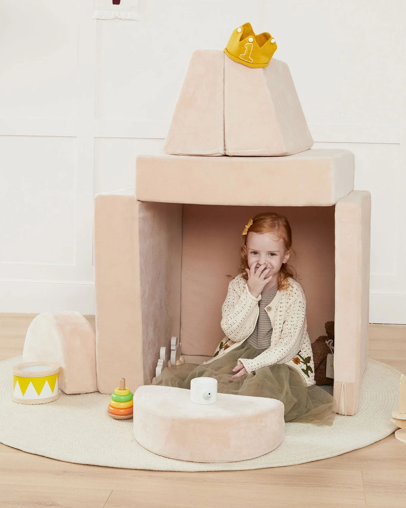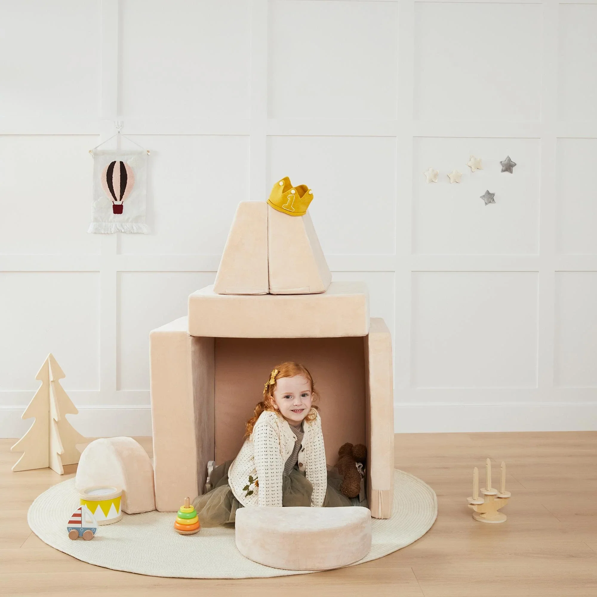 The Anyway Couch is a world of possibilities! It transforms into a cozy sofa, an adventurous fort, or even a nap-ready bed. With 8 modular pieces, your child can build, play, and create new adventures every day.