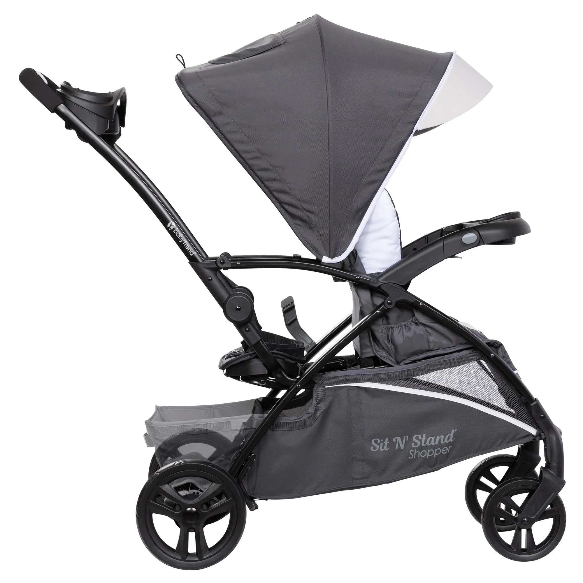 - Stroller that has 5 modes of use to accommodate your growing family; Car Seat N' Stand, Car Seat N' Shop, Sit N' Shop, Sit N' Sit, and Sit N' Stand