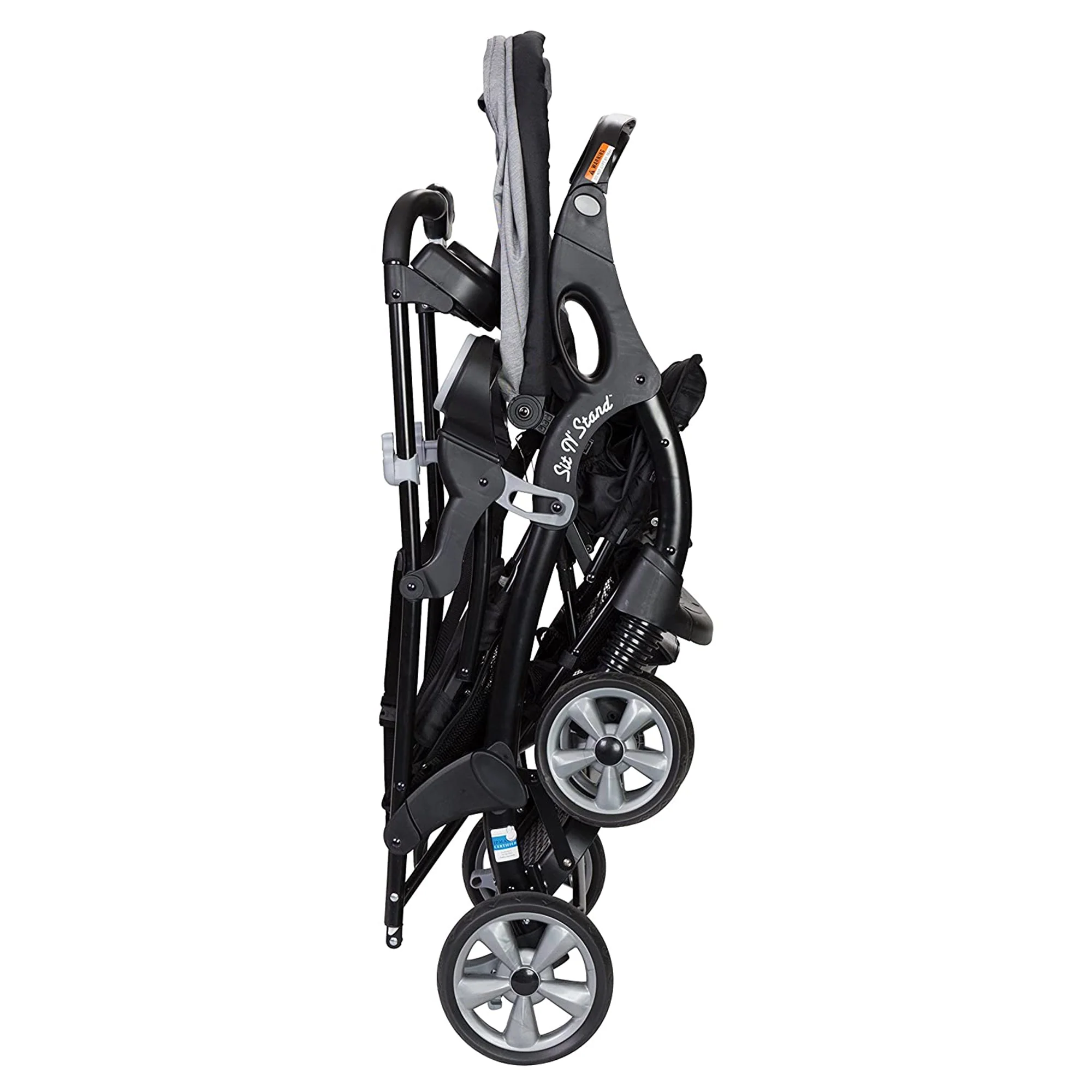 This stylish dual stroller is ideal for children and parents alike. A secure 5 point adjustable harness keeps kids safely in their seat while on the go. With a removable design, the canopy keeps the sun's rays, rain, and other elements off your child. A swing-away child tray with a cup holder is also included and can be used in the front or back position. For the parent, this lightweight stroller features tall, easy-to-grip handles and a parent tray with 2 cup holders to keep all your essential items at arm's reach. An additional storage basket under the stroller can hold toys, snacks, and other items you or your child may need. Keep the stroller in place on slopes or while stopped with the dual foot-activated rear parking brakes. After your day out, this kids stroller folds for easy storage in your car or at home.
