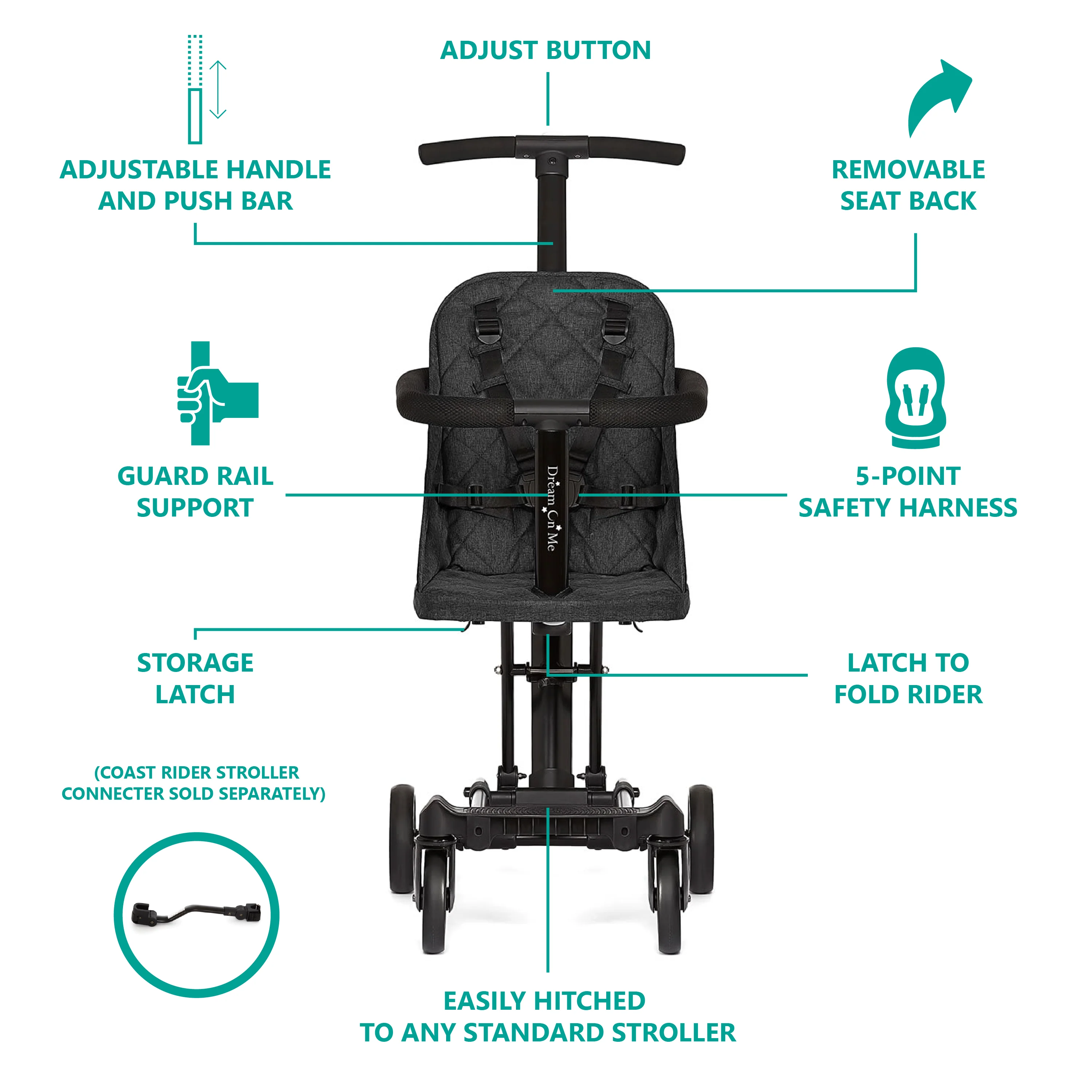 Experience the world with the JPMA Innovation Award Winner & theme-park-approved, Dream On Me Coast Rider Stroller! Fondly known as the Disney (Park) stroller, this must-have checks all the boxes for baby AND parent