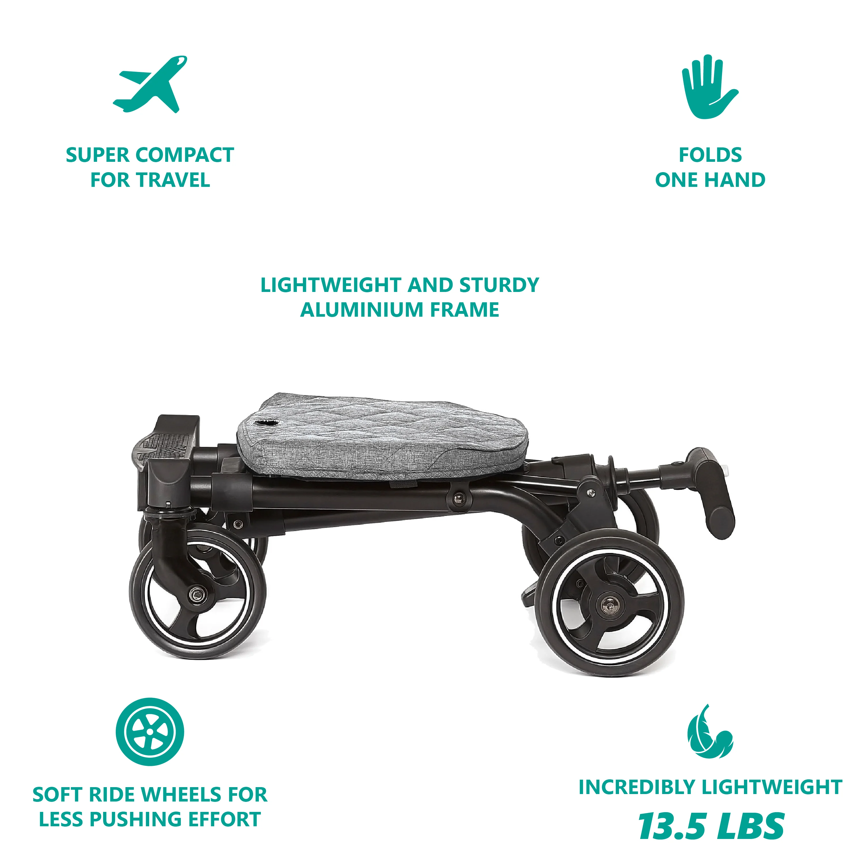 • Super lightweight at just 13.5 Lbs, its aluminum frame & soft-ride wheels makes maneuverability a breeze. Combined with an easy one-hand fold feature that allows it to fold inward like a book.