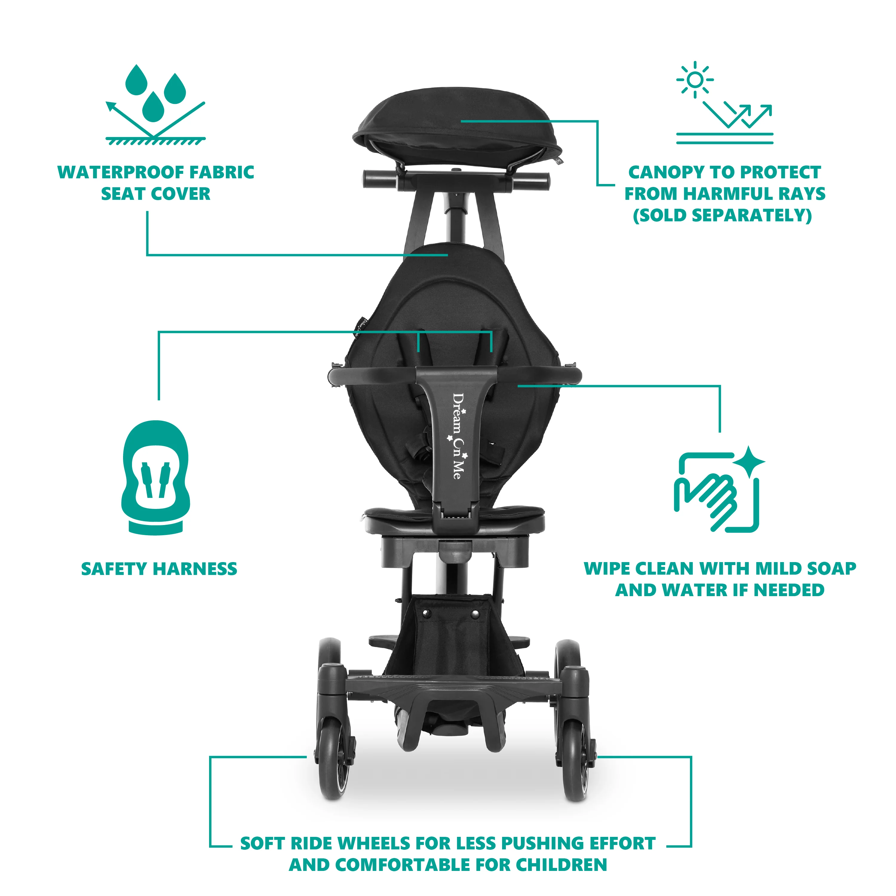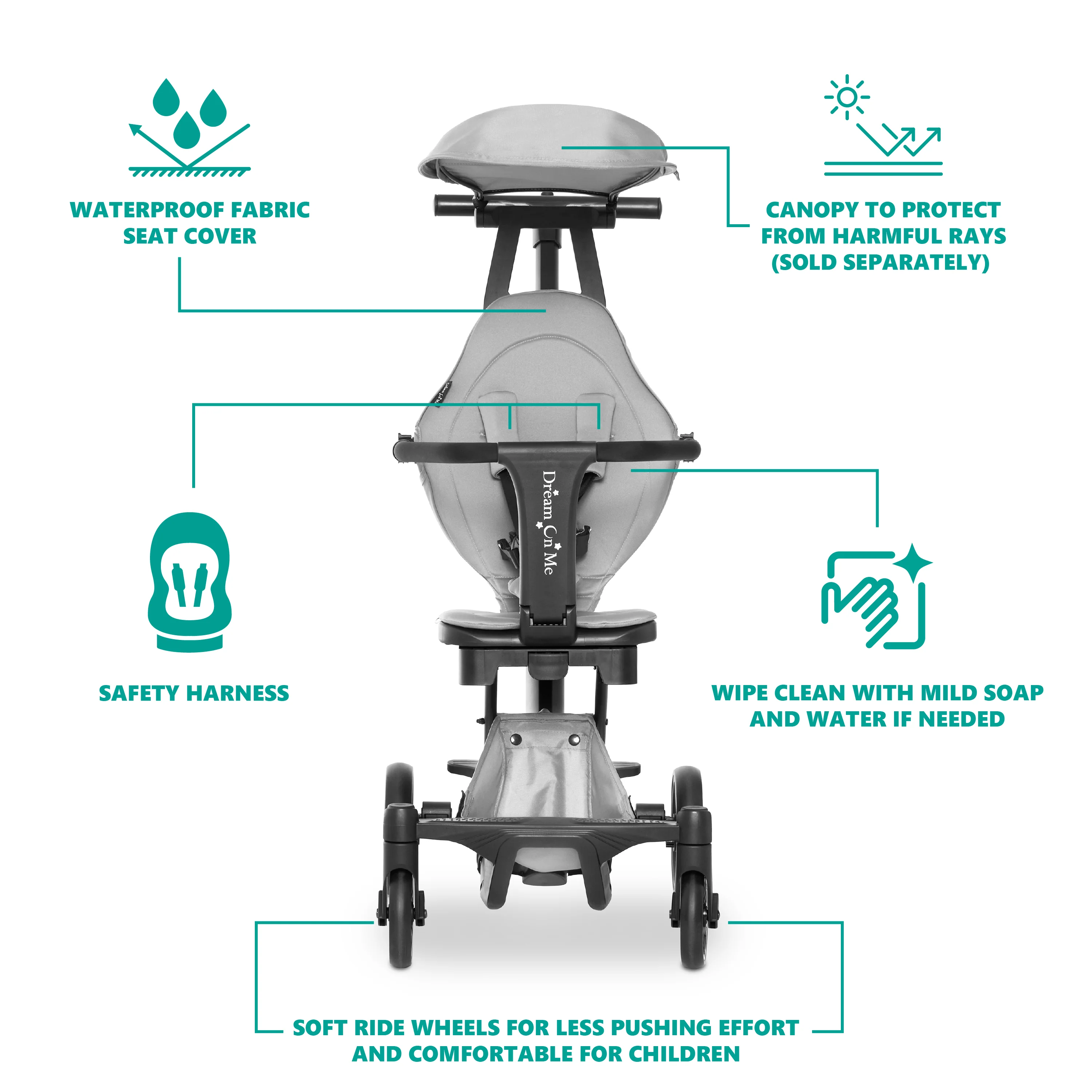- The thoughtfully designed Dream On Me Drift Rider Stroller comes with a waterproof fabric seat cover and is easy to clean with mild soap and water.
