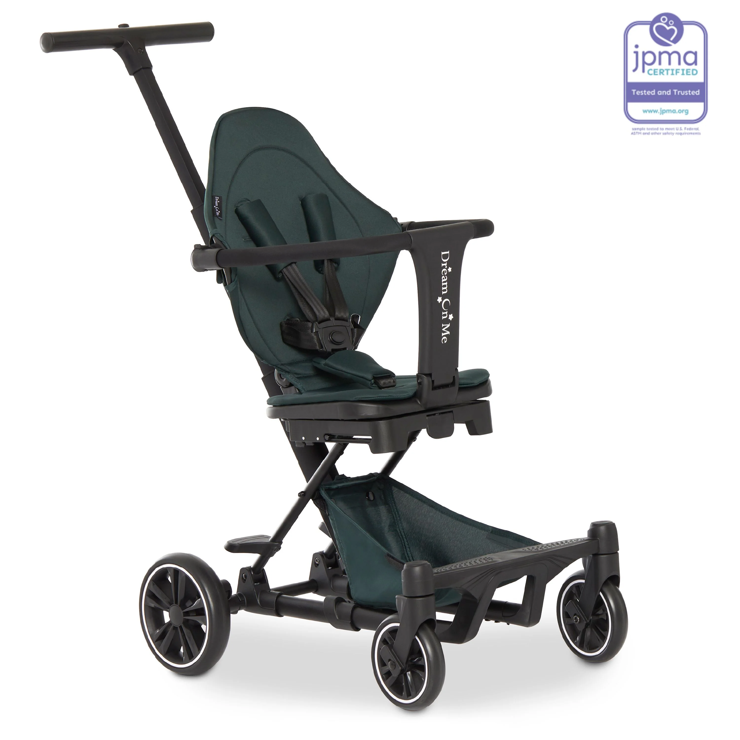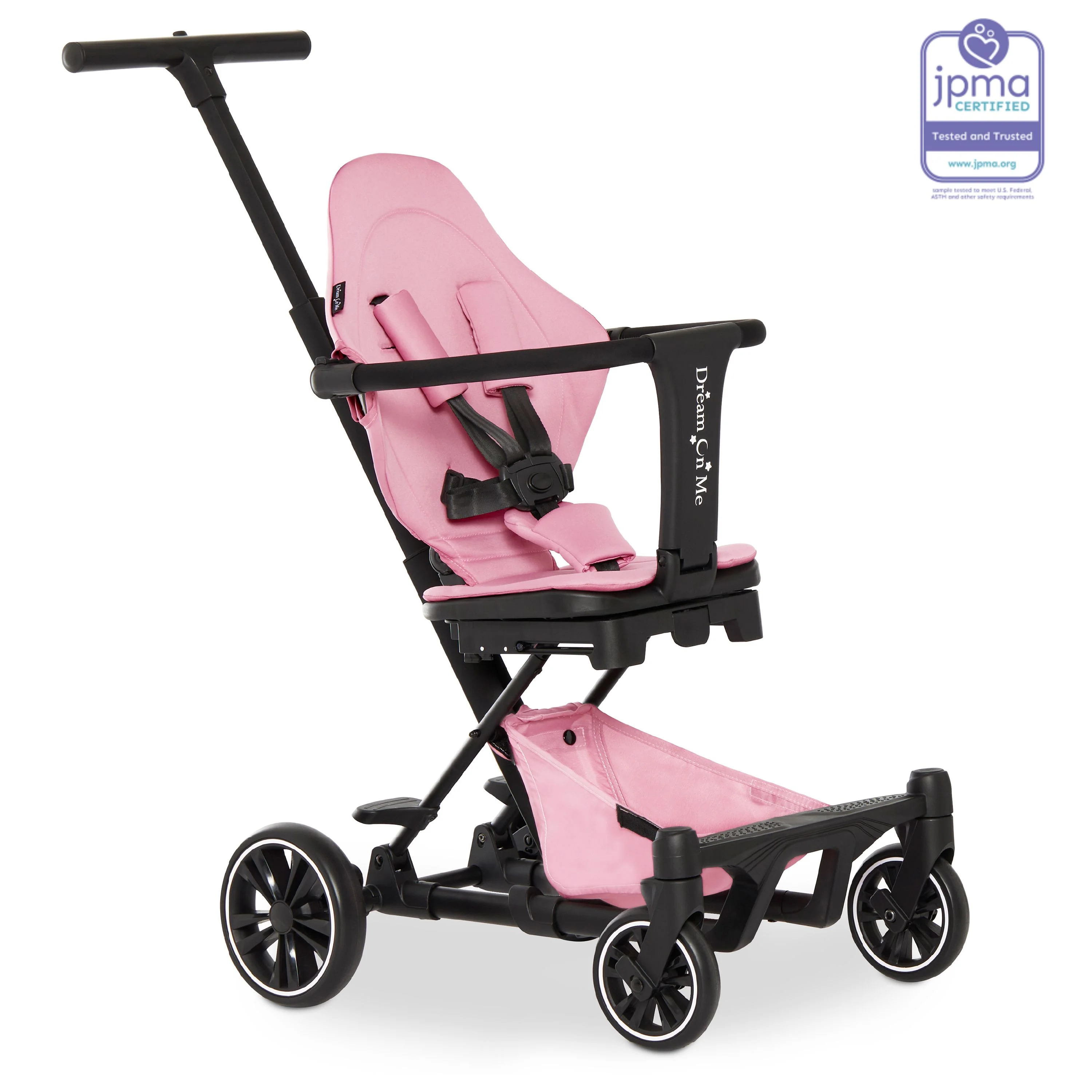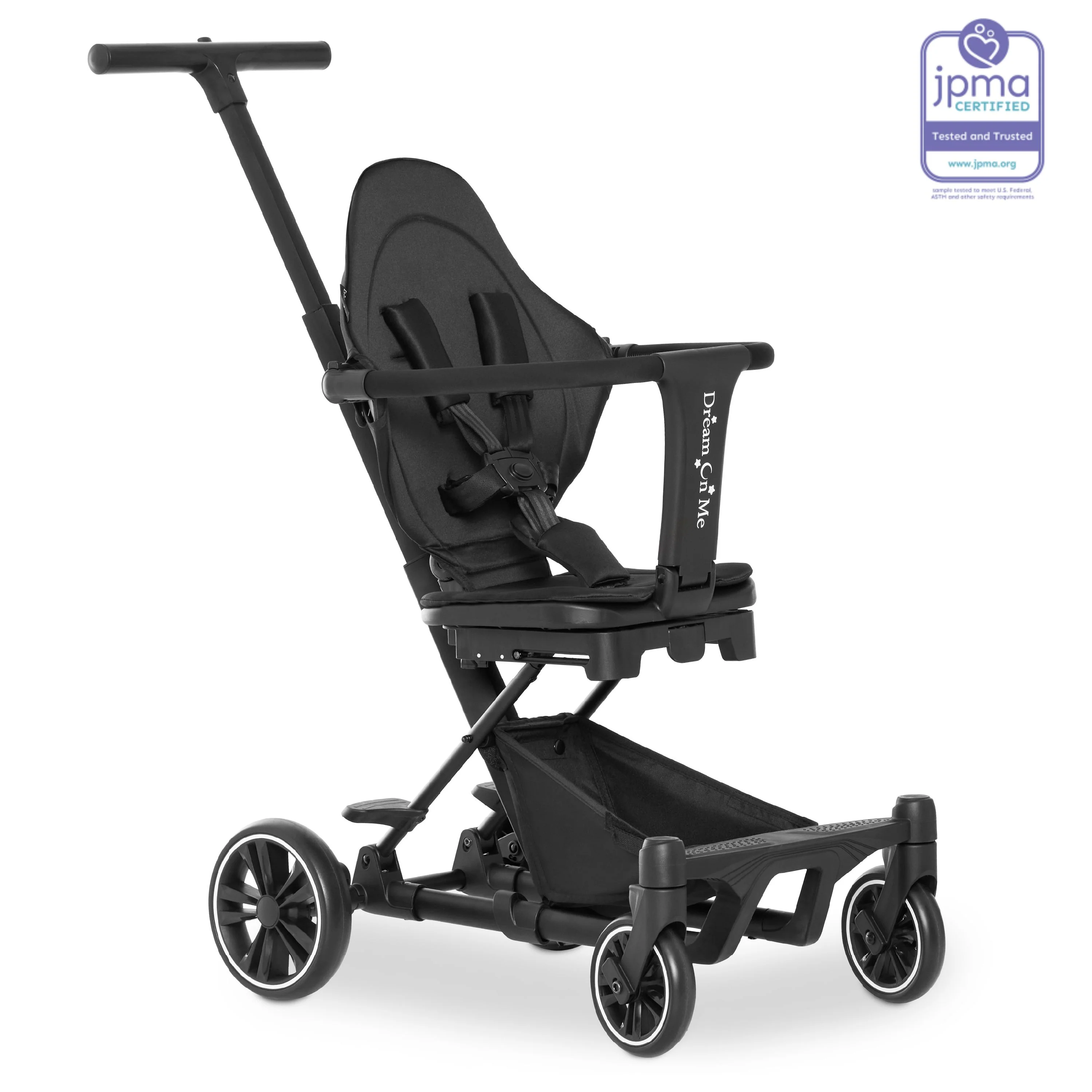 - Dream On Me Drift Rider Stroller comes with a safety harness with adjustable handles and push bars and is completely safe as it meets/exceeds all ASTM and CPSC standards.