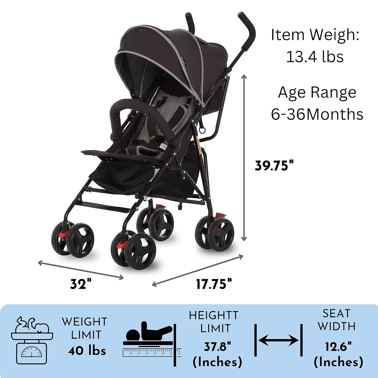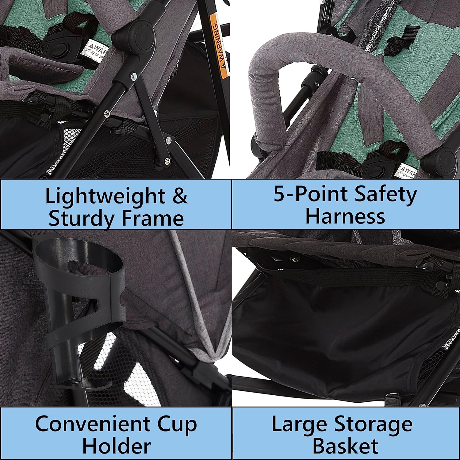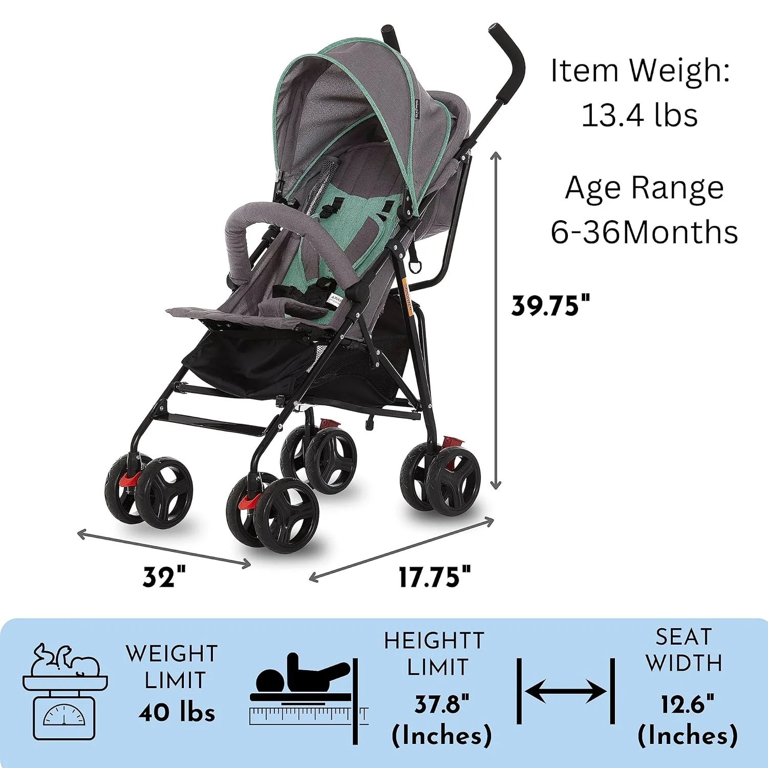 • Extra large storage basket below is ideal for holding toys, groceries, and diaper bags. The full-size canopy has a pop out sun visor and provides adequate shade as LO naps.