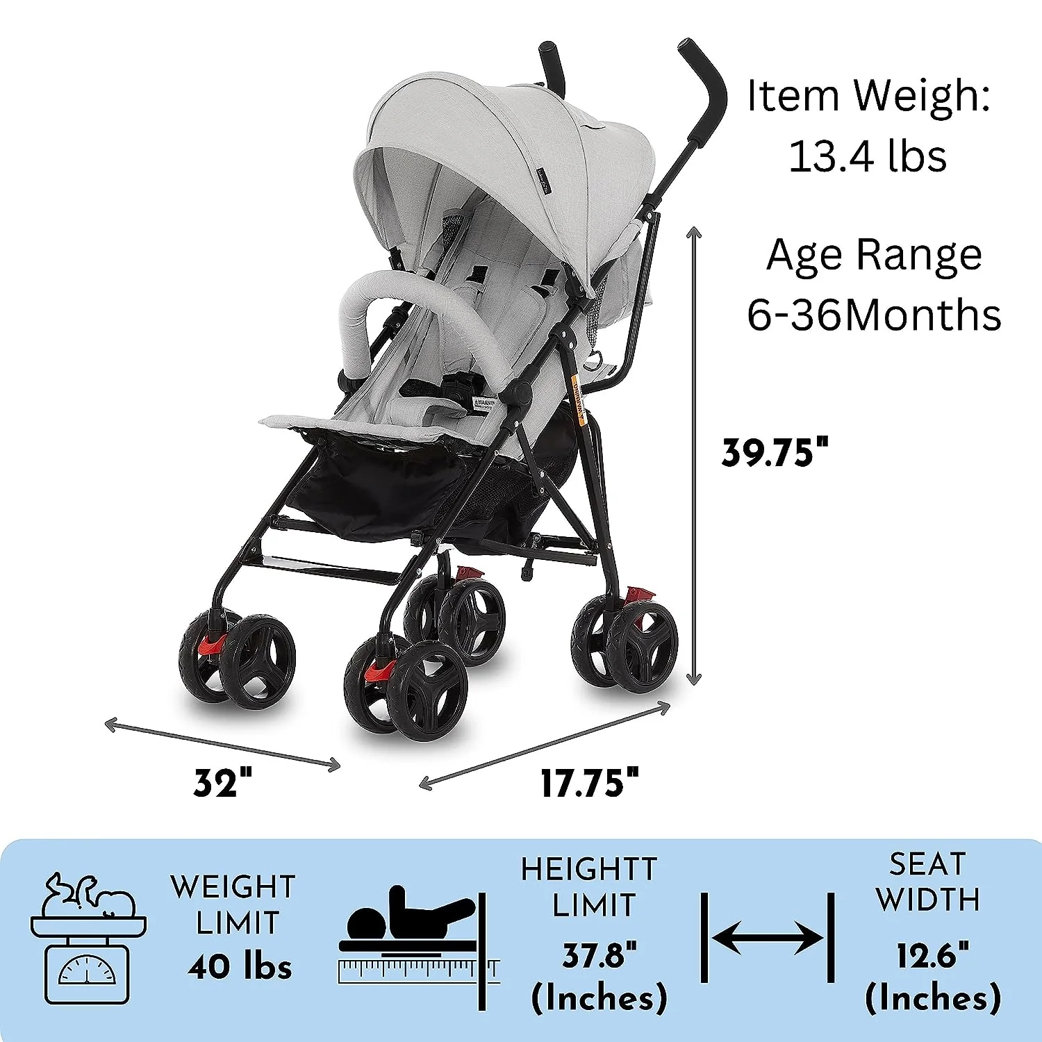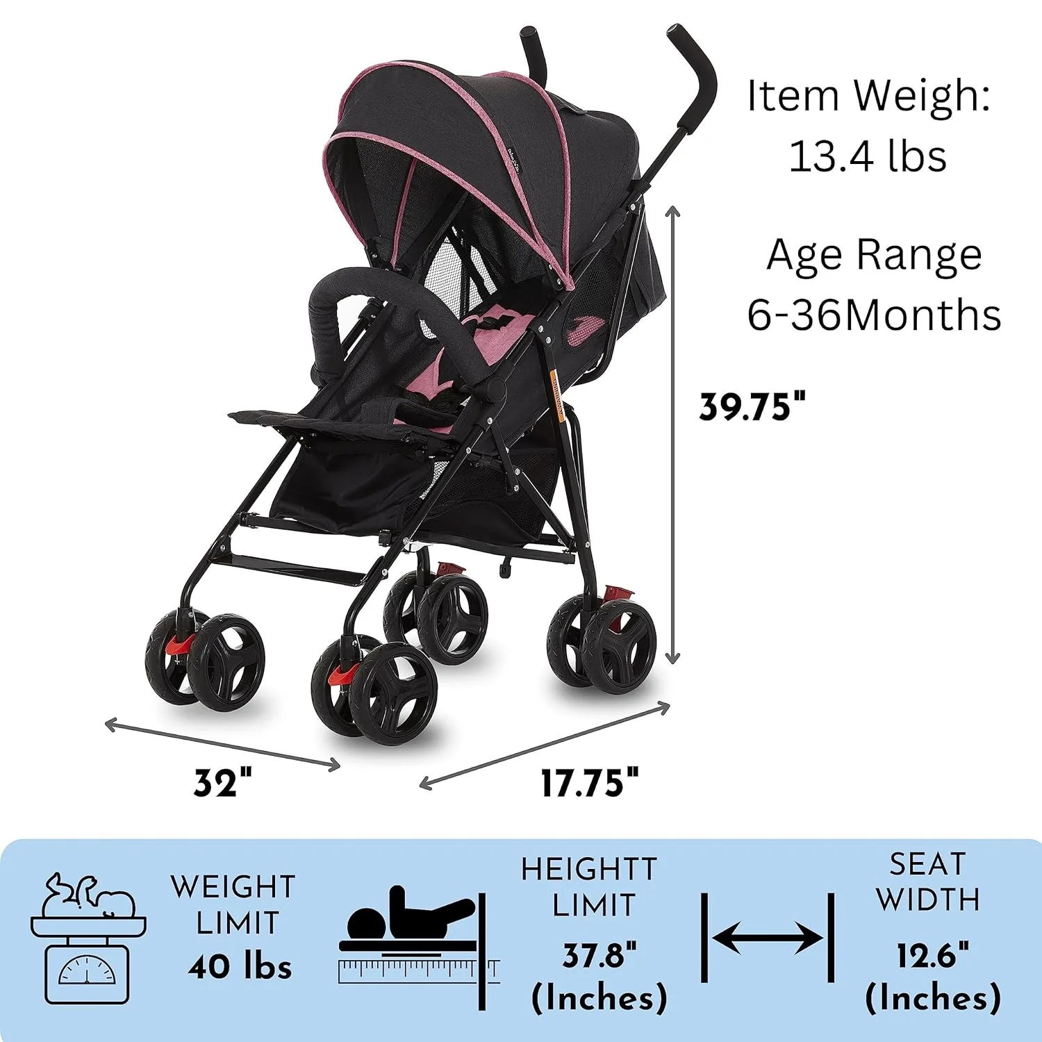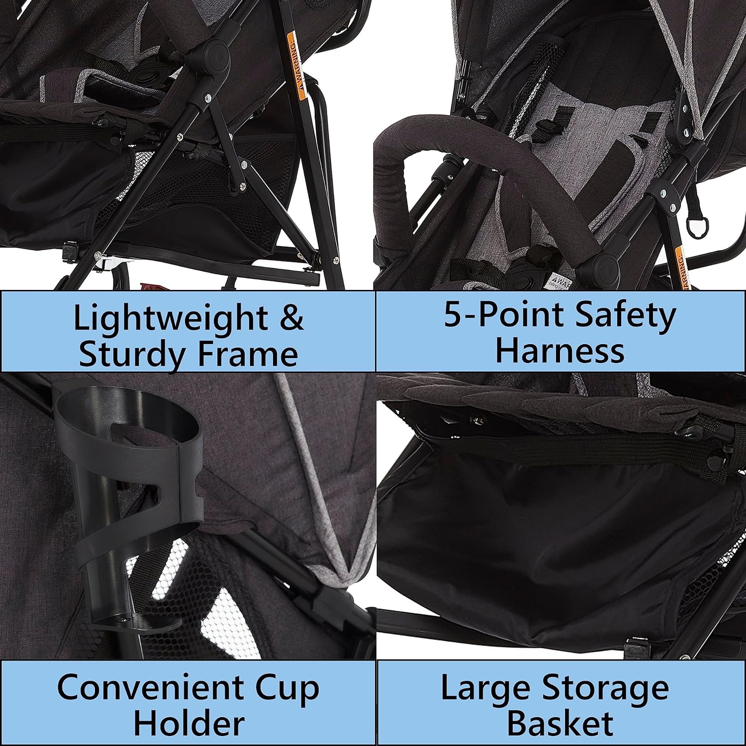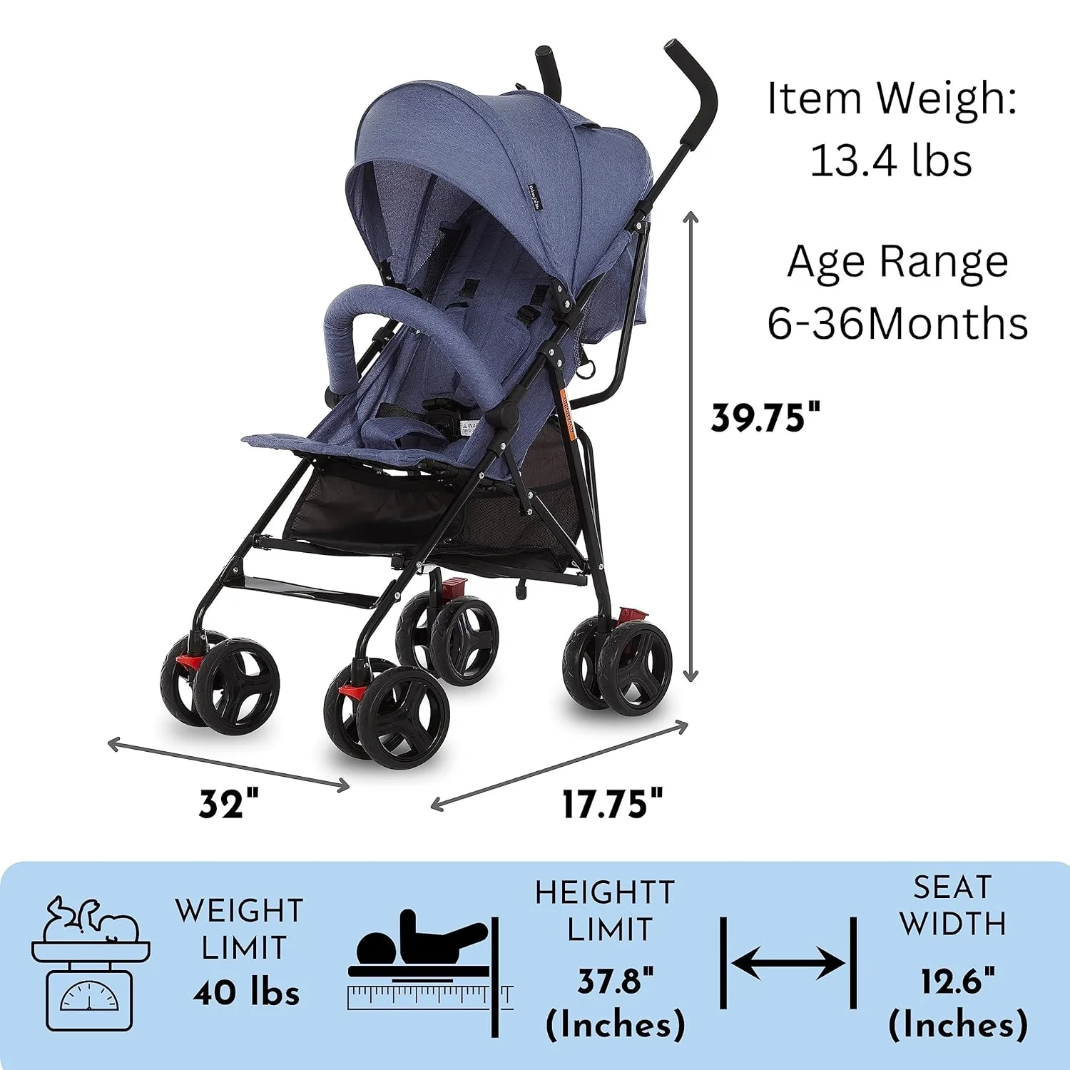 • Extra large storage basket below is ideal for holding toys, groceries, and diaper bags. The full-size canopy has a pop out sun visor and provides adequate shade as LO naps.