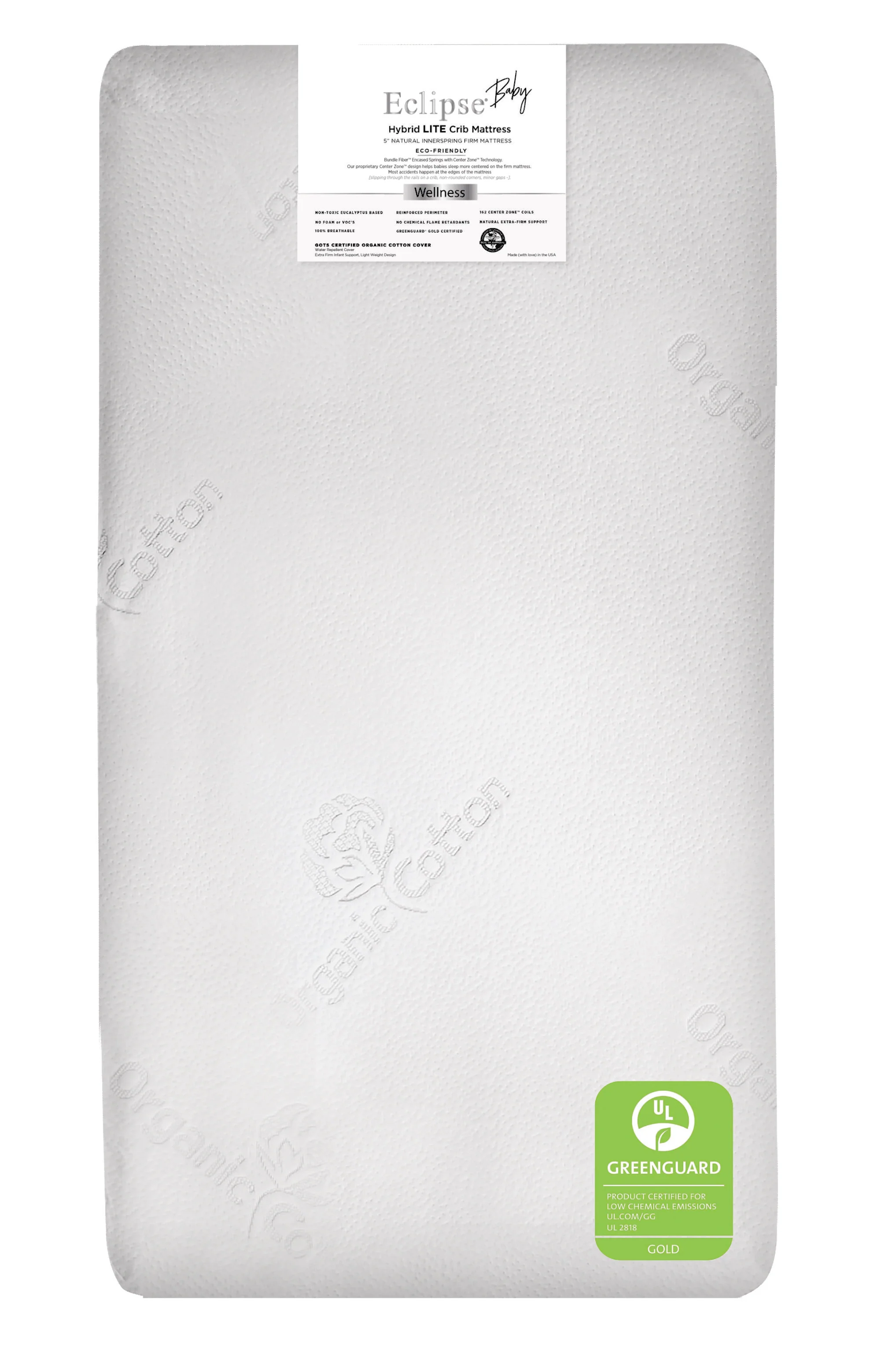 The Eclipse Wellness 100% Breathable Hybrid Excel Crib & Toddler 2-Stage mattress is made with 200 Center Zone coils, eucalyptus based support, a firm 2 Bundle Fiber™ edge support, and Bundle Fiber toddler comfort layer.