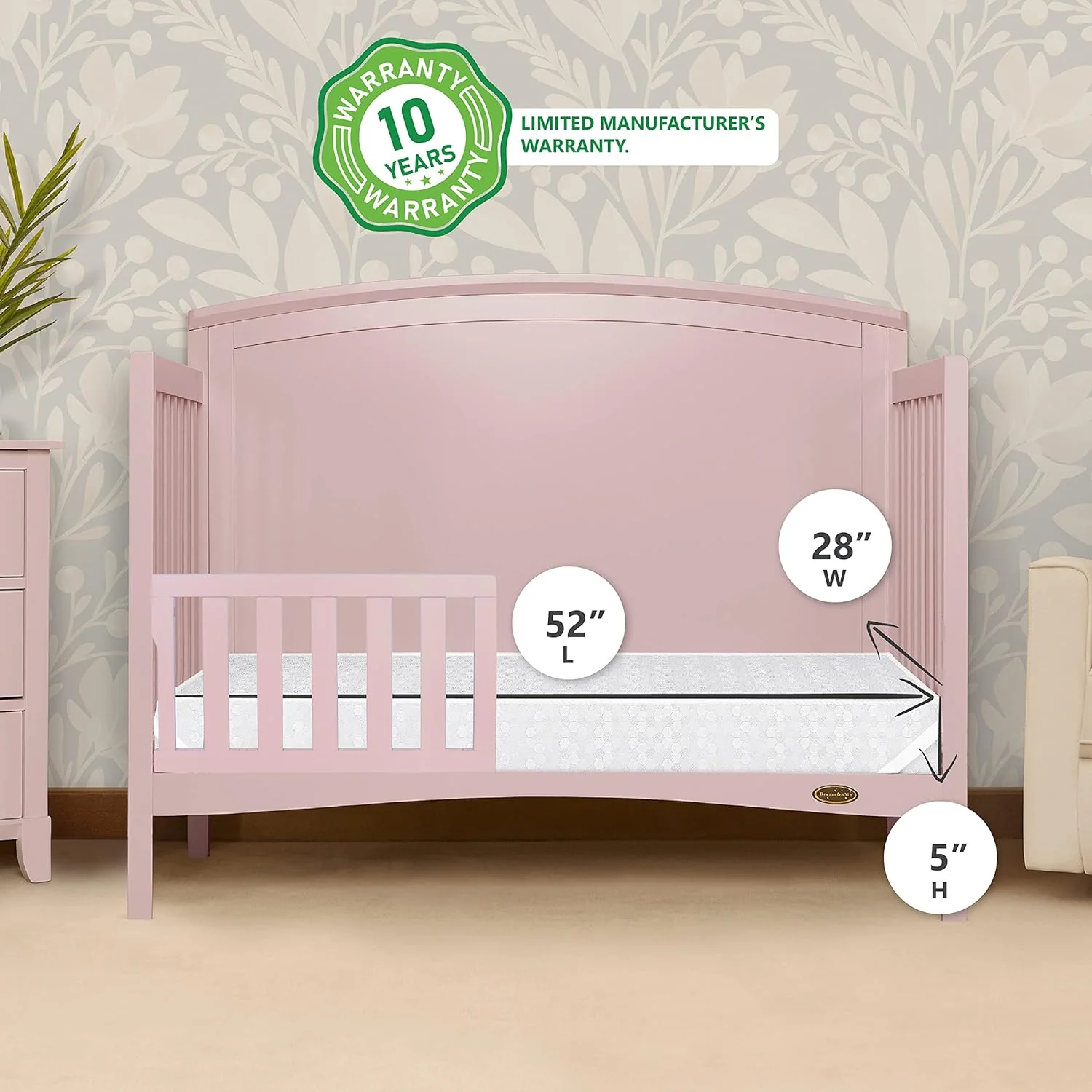 - SAFETY ALL THE WAY: This Dream On Me Crib Mattress is Greenguard Gold Certified and meets/exceeds all flammability (16 CFR 1632/1633), phthalate and lead tests. It is also designed, engineered, and proudly made in the USA, with a 10-year warranty.