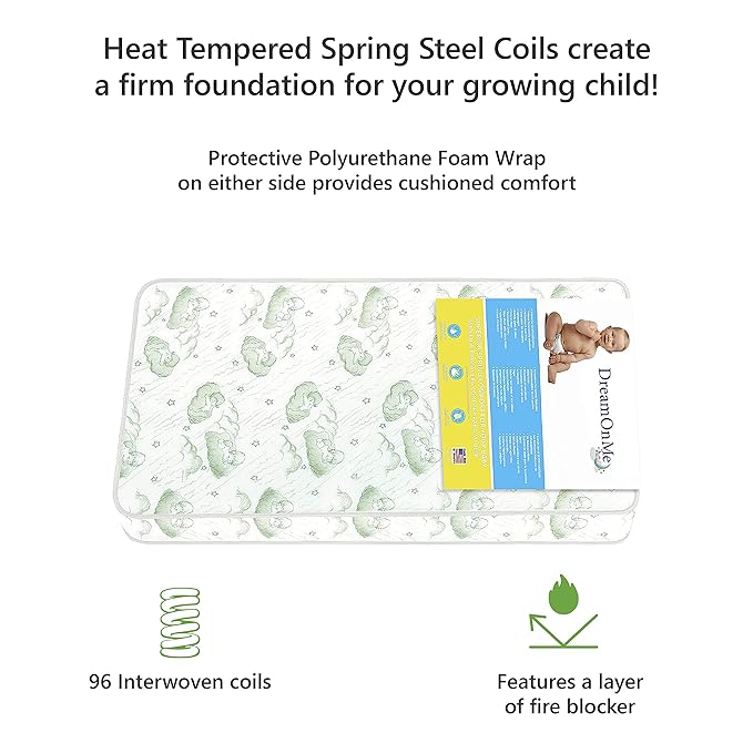 - SUPPORT & COMFORT: The 96 interwoven, heat tempered spring steel coils create a firm foundation for your growing child while a protective polyurethane foam wrap on either side provides cushioned comfort