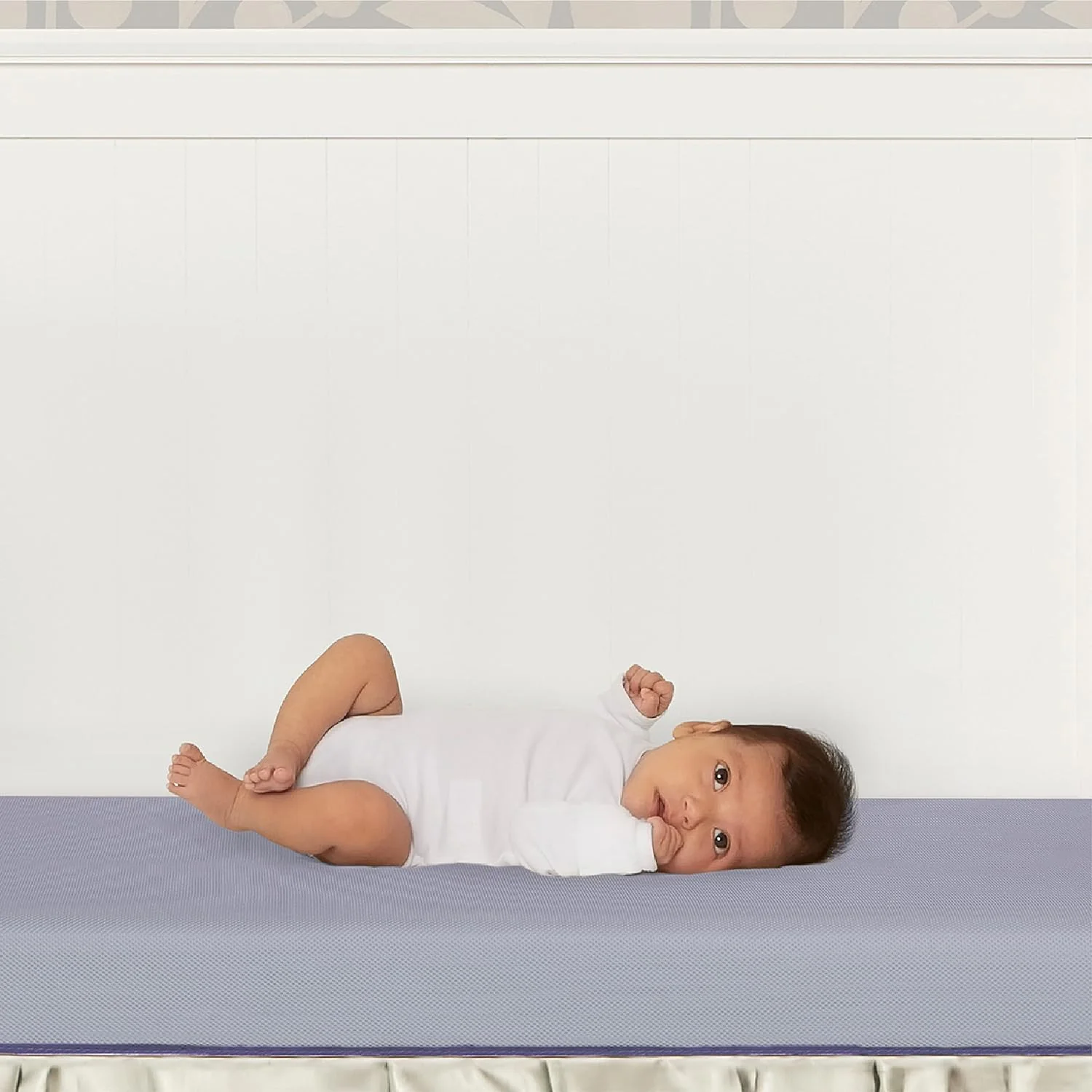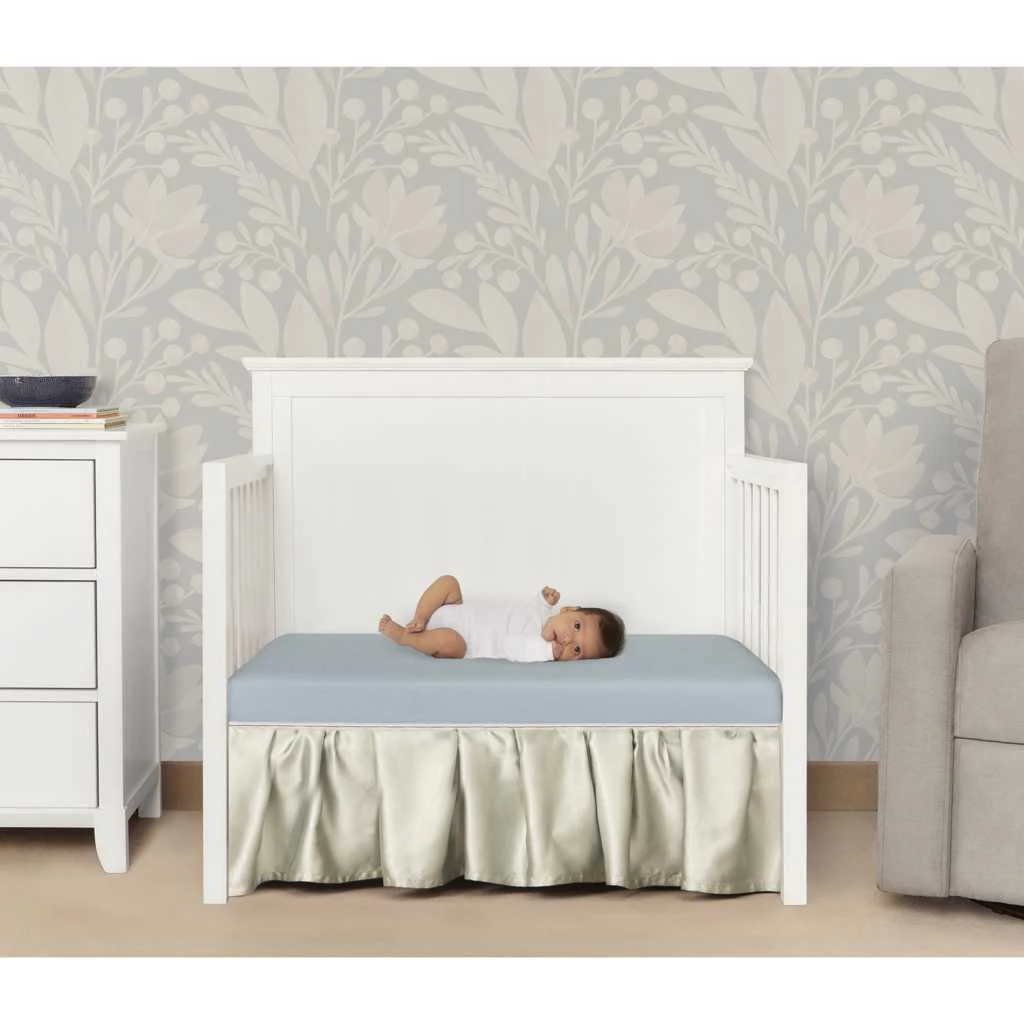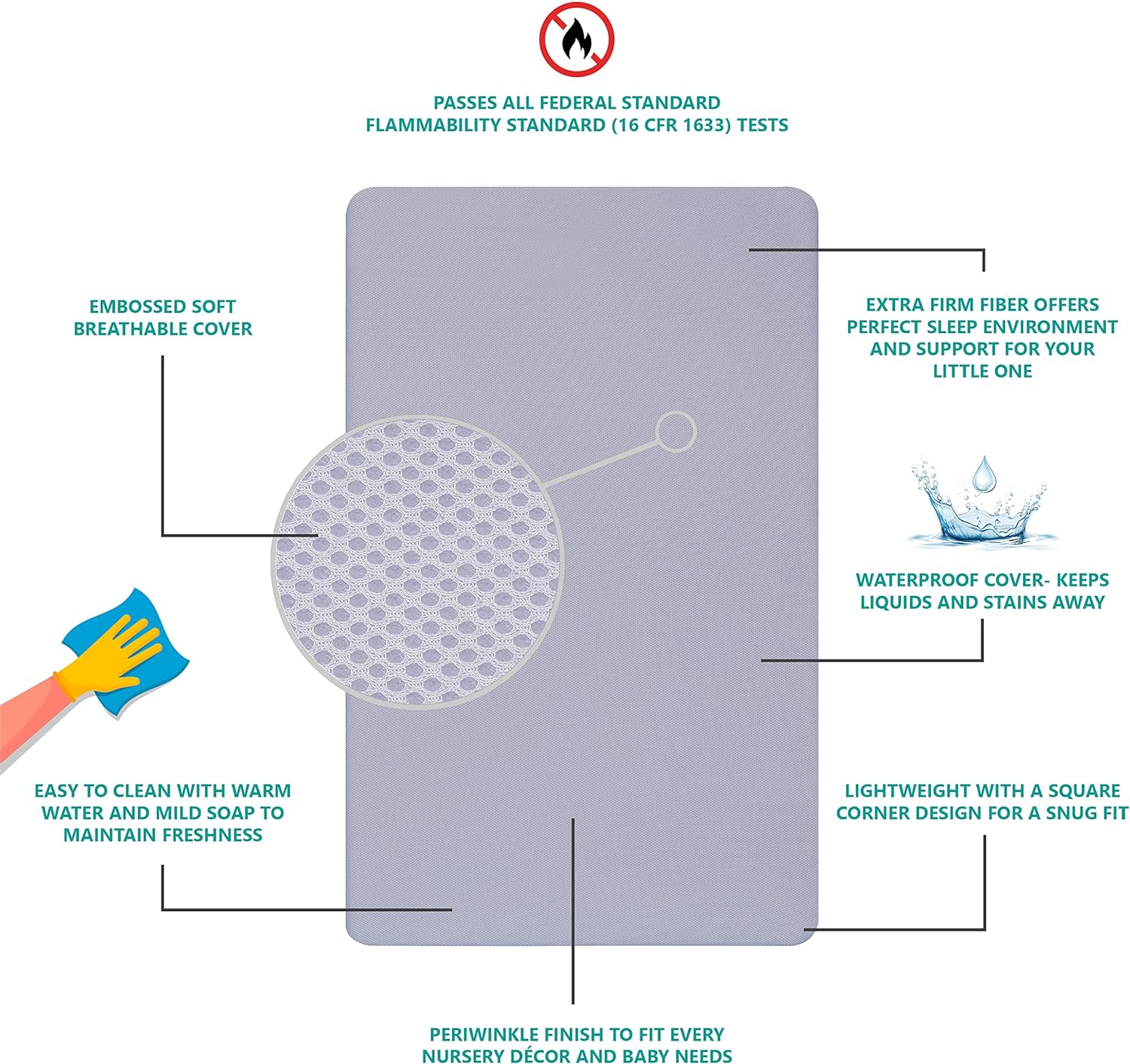 - Embossed Soft Breathable Cover to allow air flow and give your little one a cozy and comfortable nap. The Mistic Blue finish adds a soft touch to your little one’s nursery