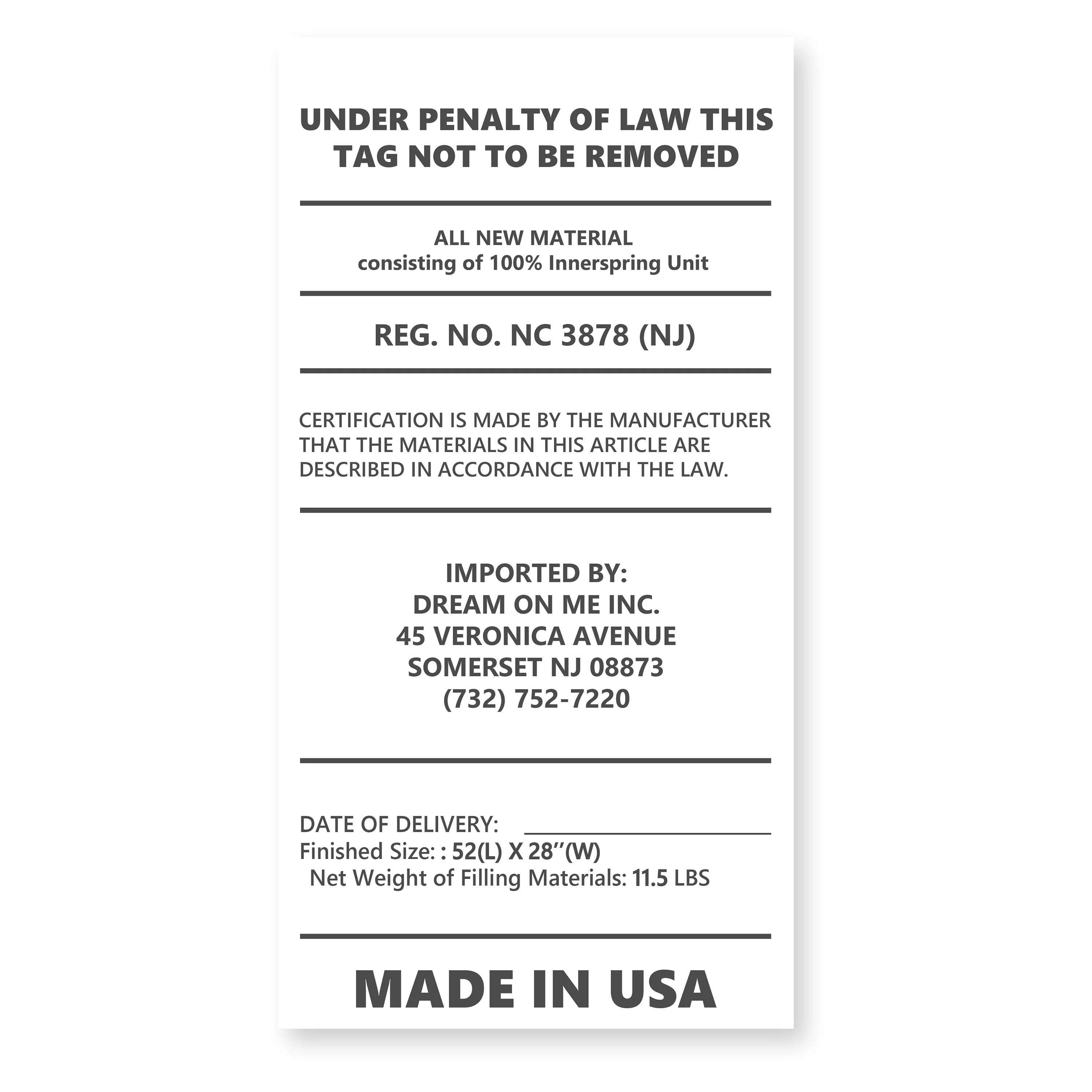 - This product meets the 16 CFR 1632/1633 Federal flammability standards.