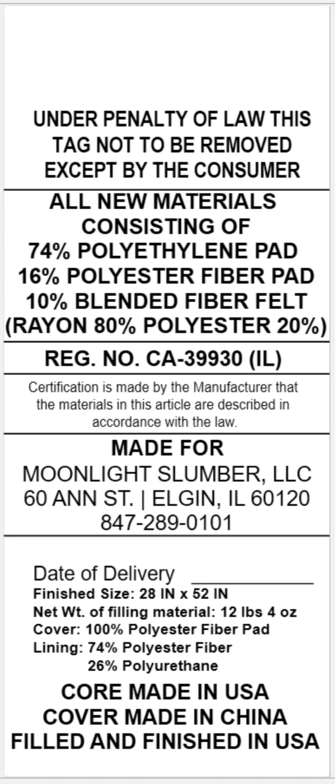 - NO foam, latex, springs, glue or added flame retardants. Crib mattress core made from food-grade polymer.