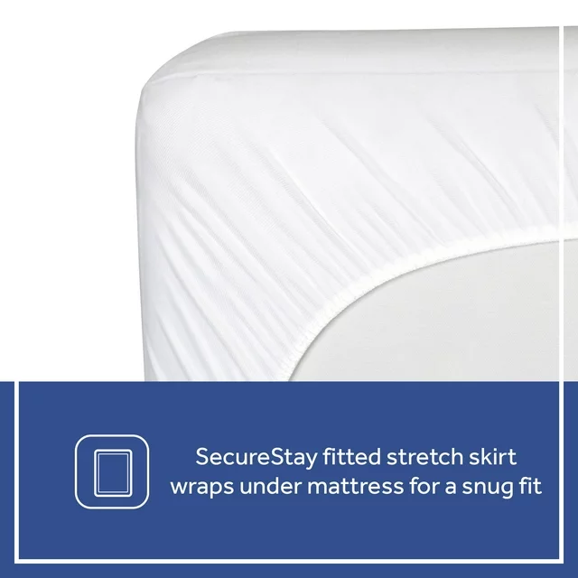 - Premium Secure Stay fitted skirt stretches to wrap well under baby's mattress to prevent sliding