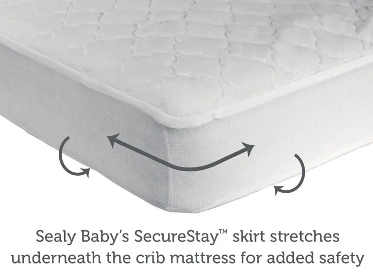 Protect baby’s mattress from moisture and accidents with the Sealy Secure Protect Fitted Crib Mattress Pad, available in a convenient 2-pack.