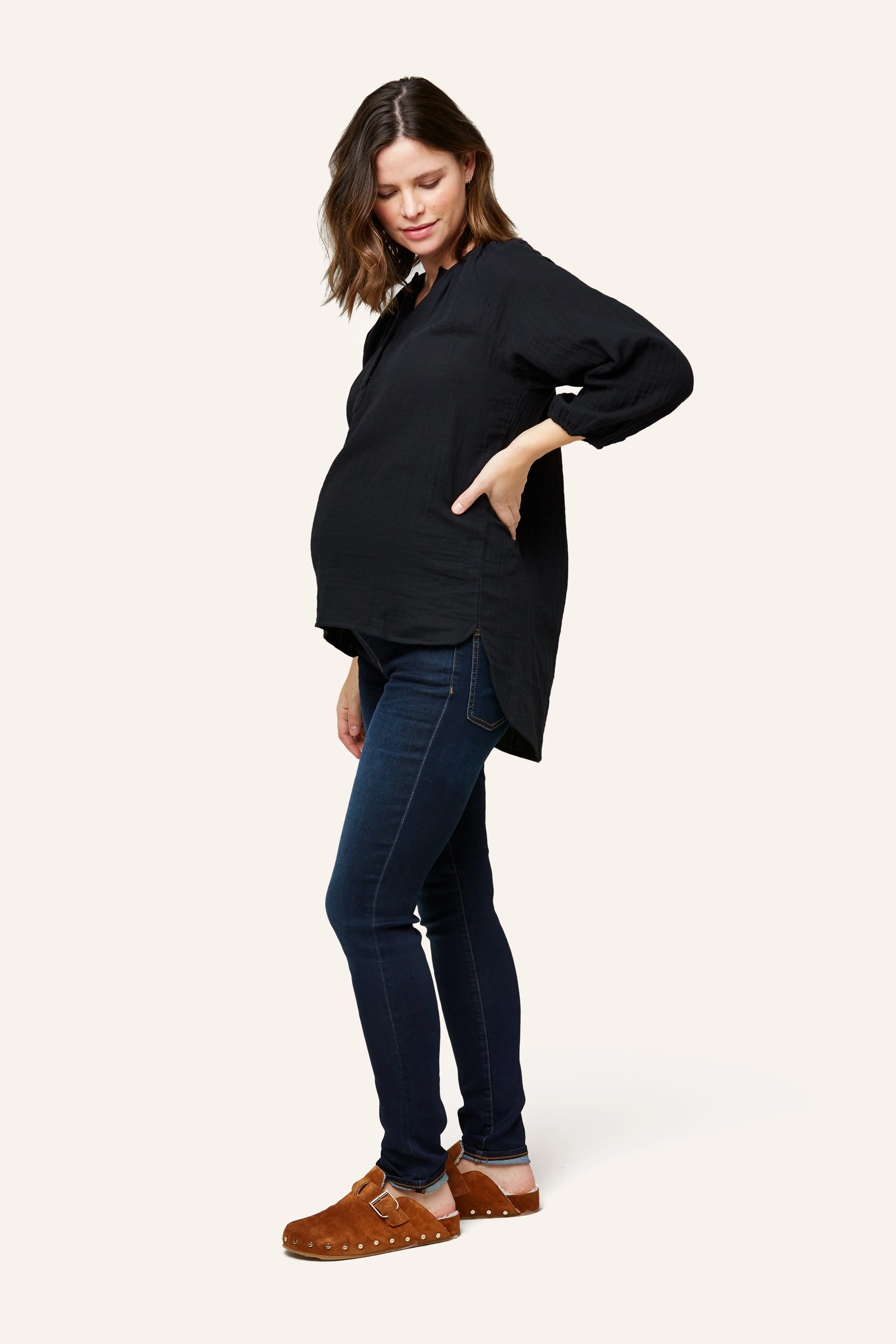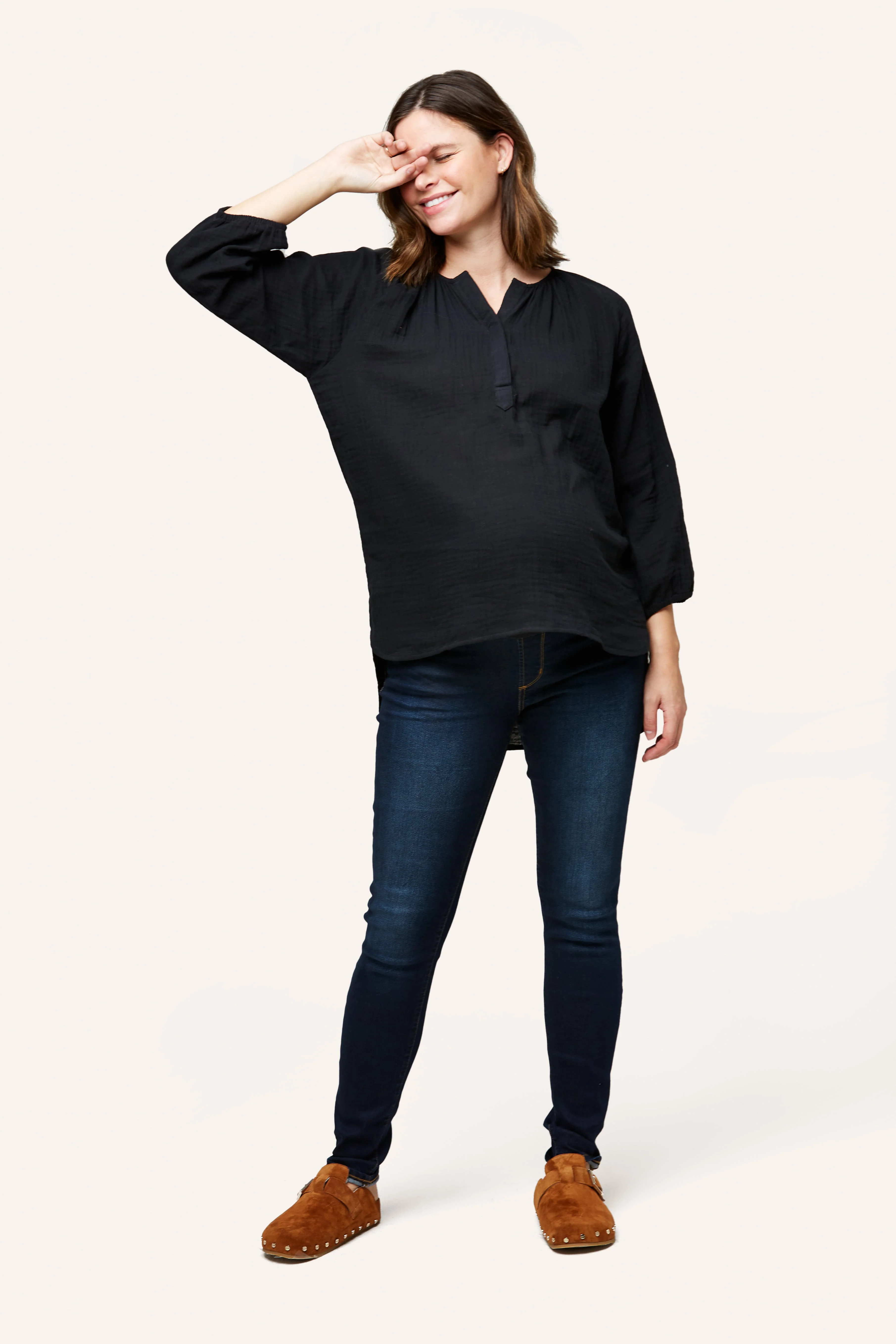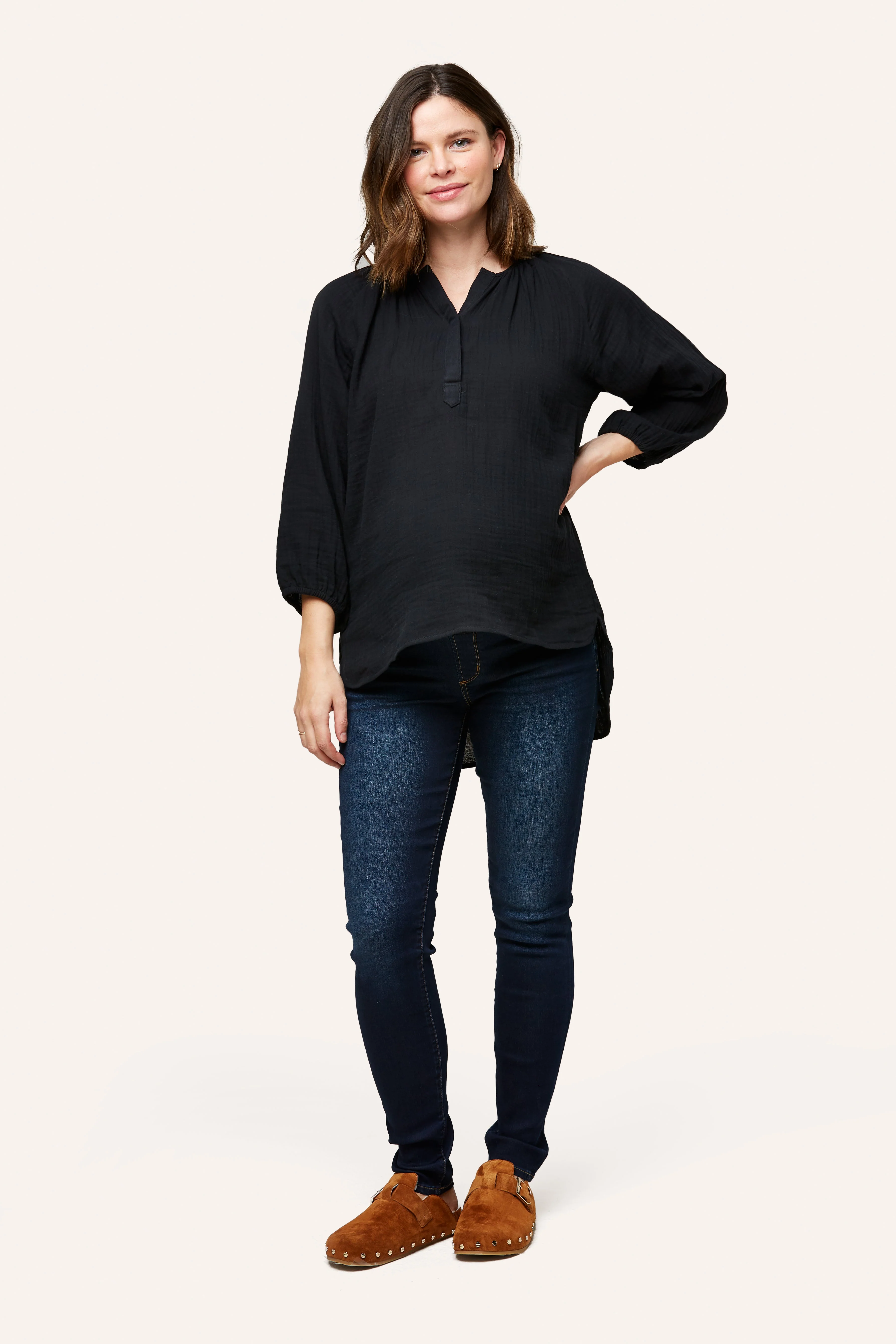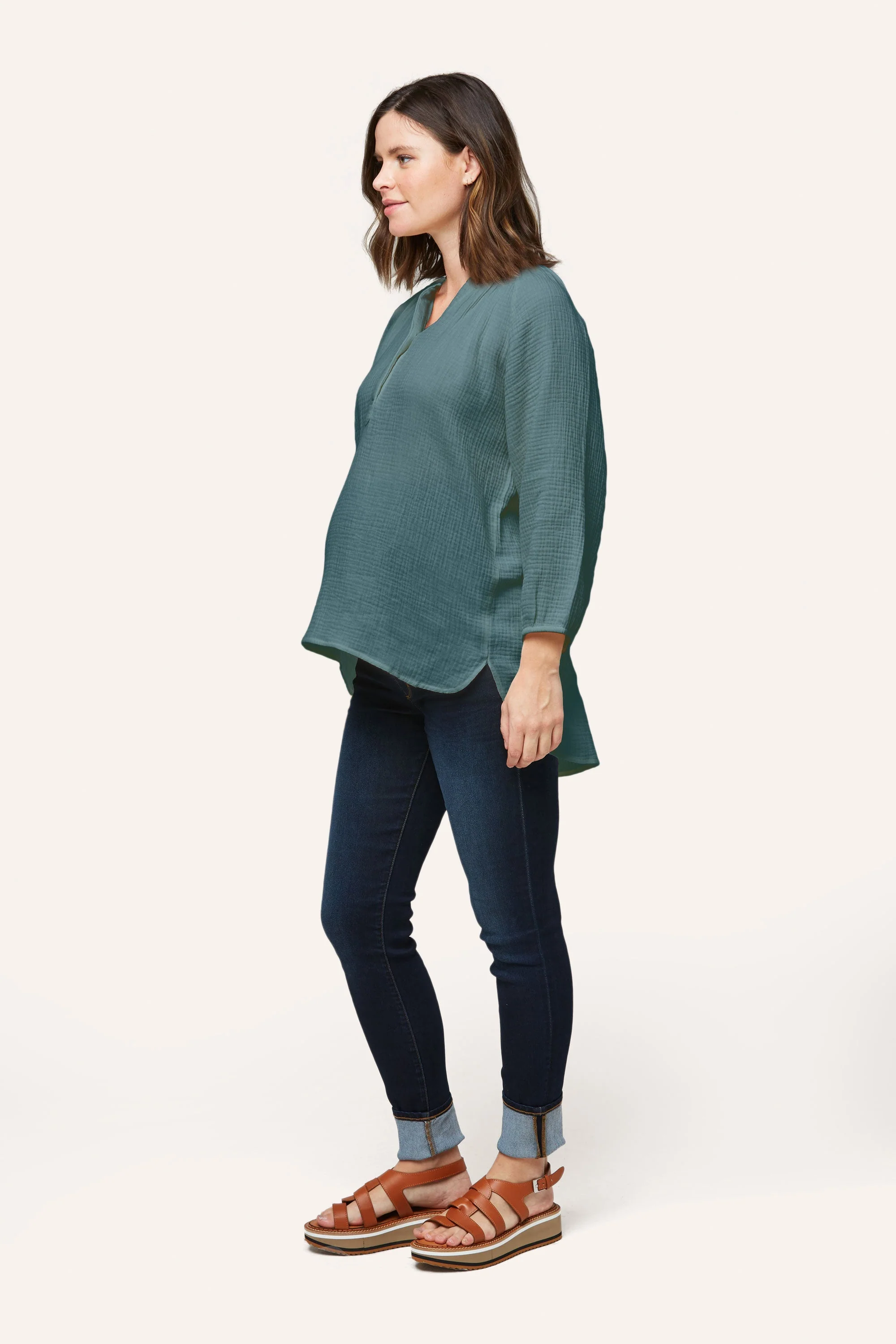 The Ava is one of our favorite easy tops for maternity + nursing. Designed in 100% cotton double layer gauze, Ava features a snap placket for easy nursing access and cute shirt tail hem. We made her a little longer for that easy style paired back to leggings, shorts or denim. Pair with our cotton gauze pants and shorts (Remy Pant or Berlin Short) for that super cute summer set.