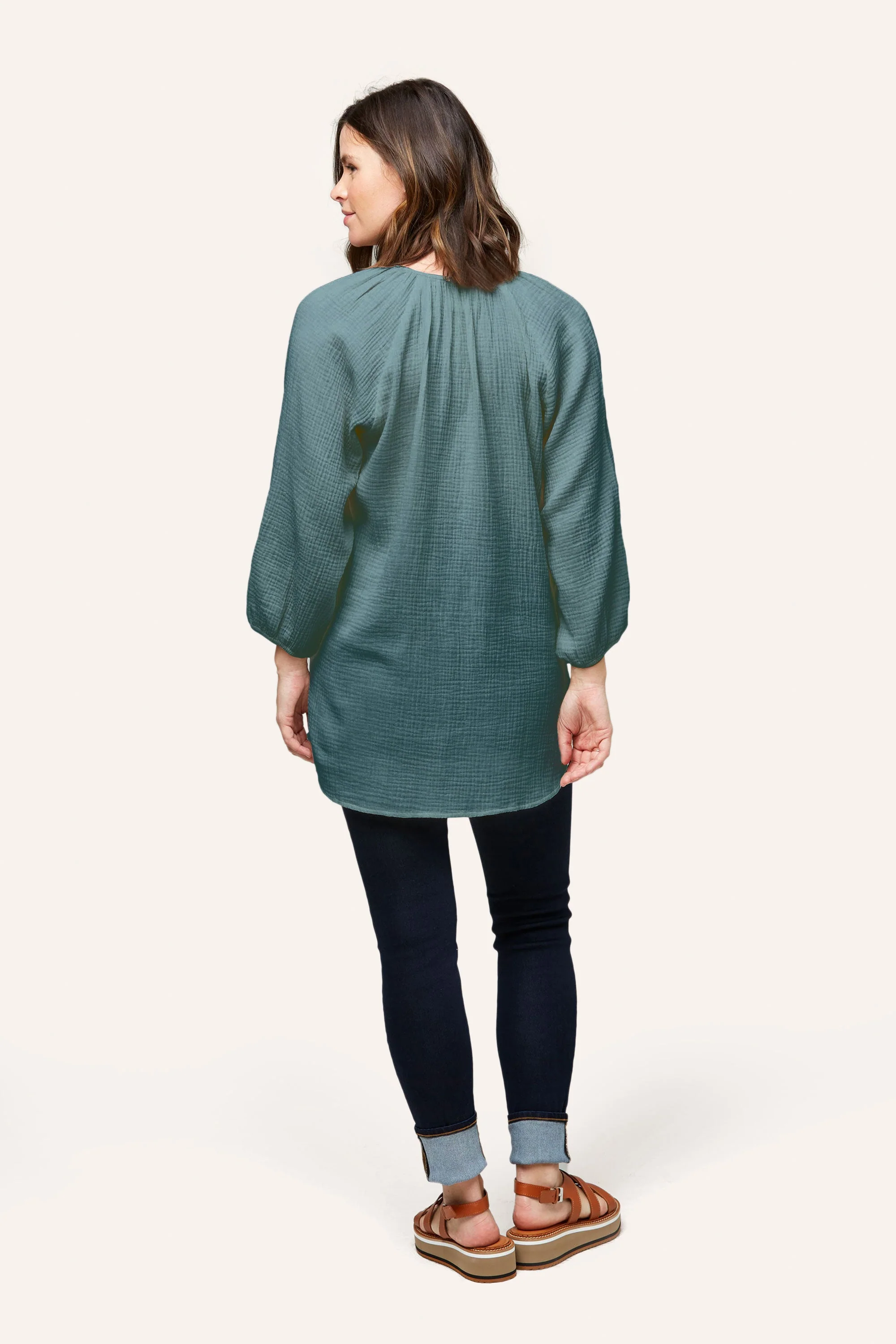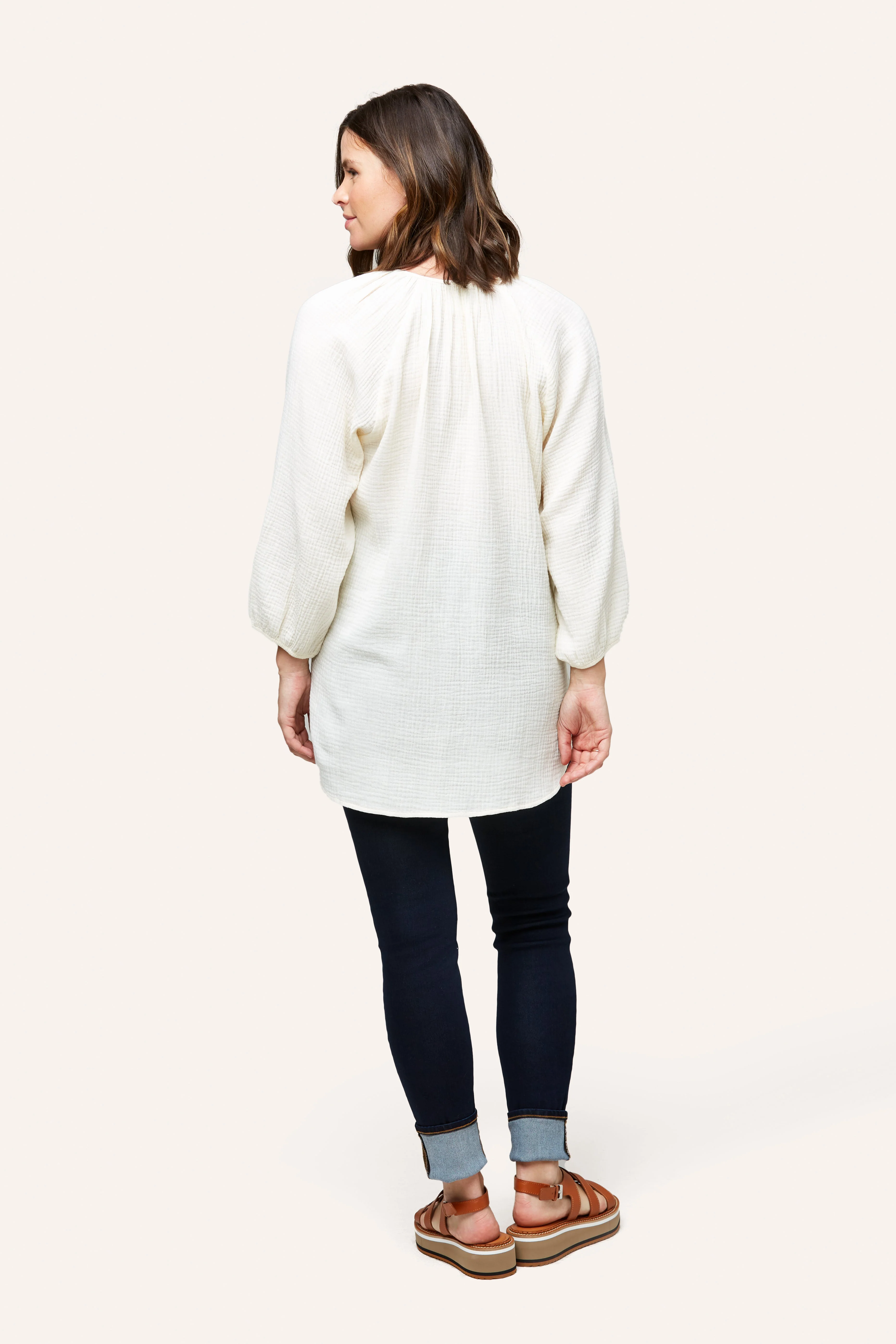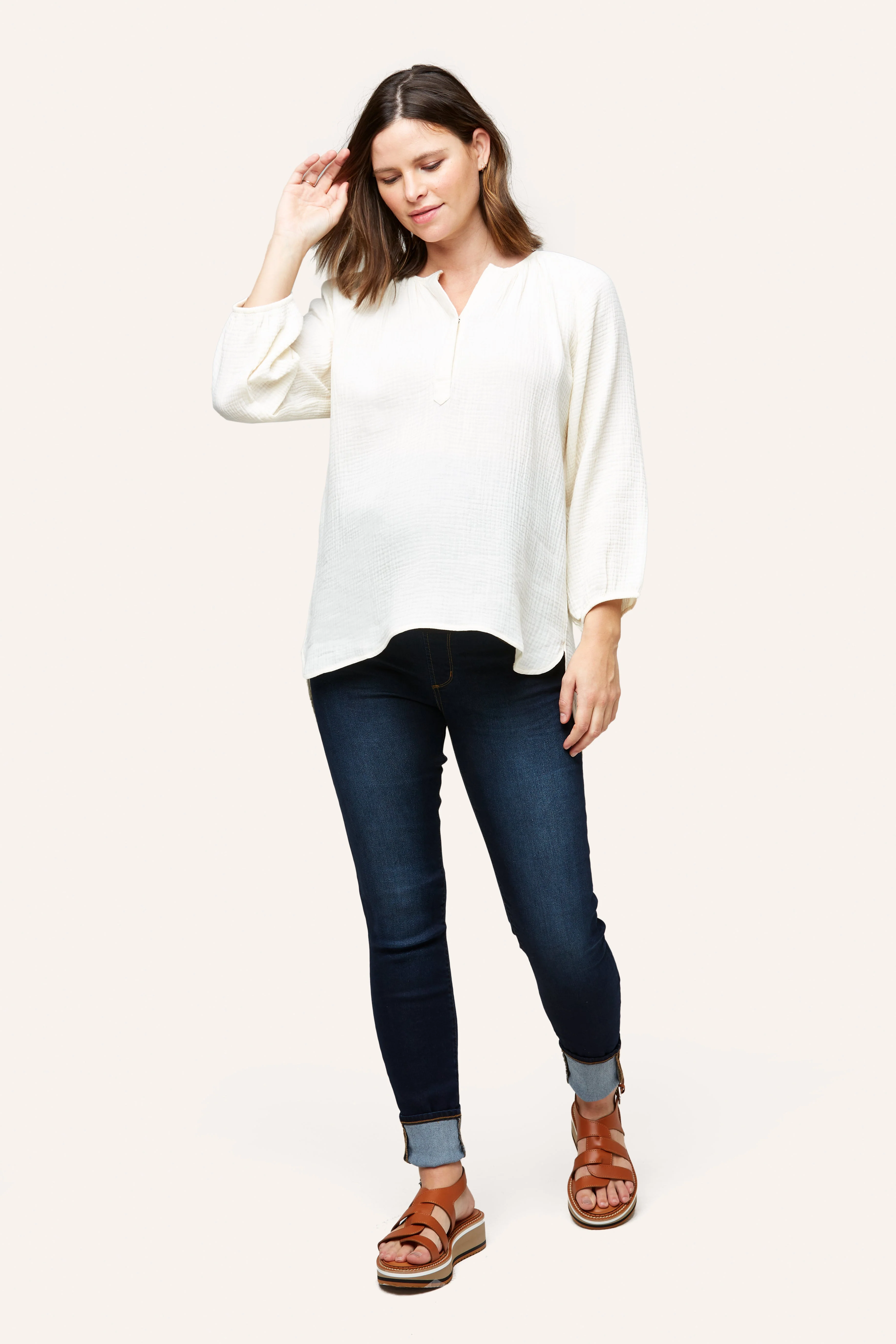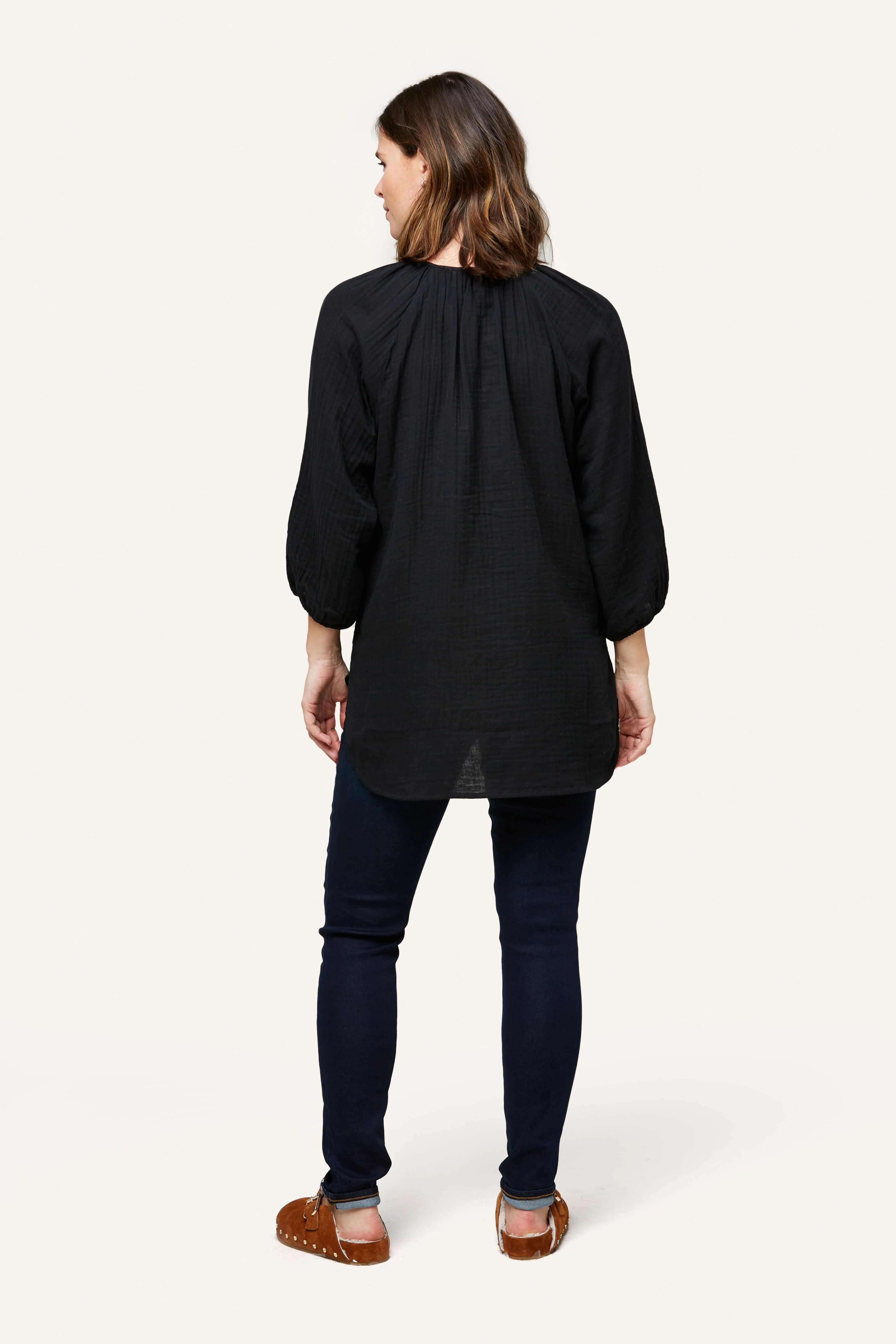 The Ava is one of our favorite easy tops for maternity + nursing. Designed in 100% cotton double layer gauze, Ava features a snap placket for easy nursing access and cute shirt tail hem. We made her a little longer for that easy style paired back to leggings, shorts or denim. Pair with our cotton gauze pants and shorts (Remy Pant or Berlin Short) for that super cute summer set.